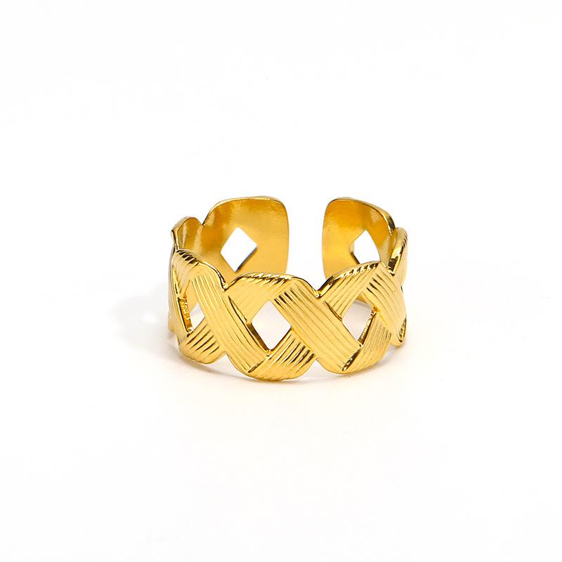 Anillo de acero de titanio con apertura de sentido de diseño de nicho europeo y americano, anillo de oro de 18 quilates para mujer, anillo geométrico personalizado al por mayor