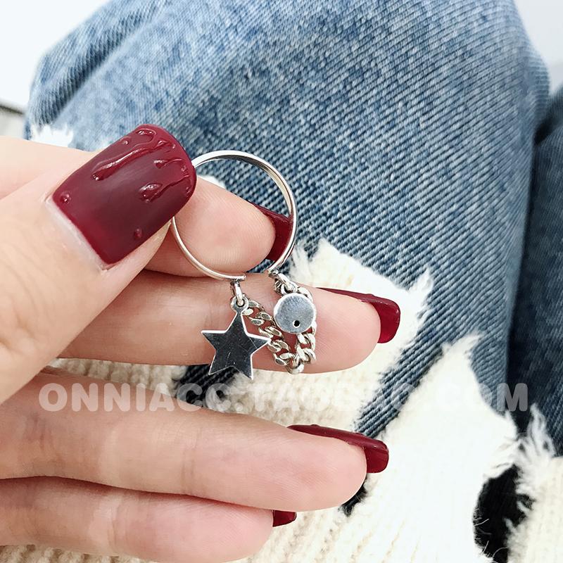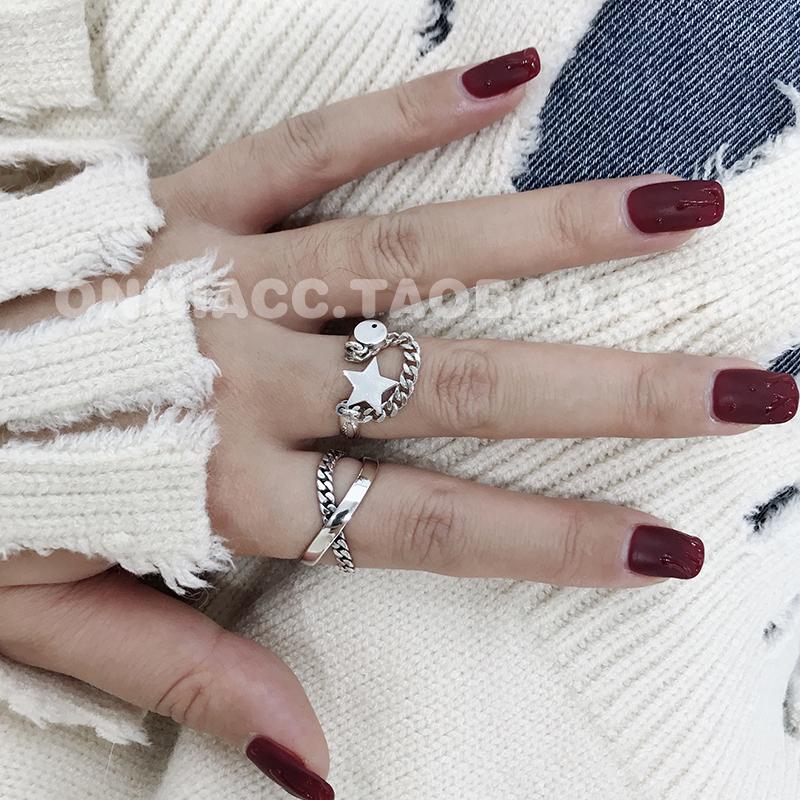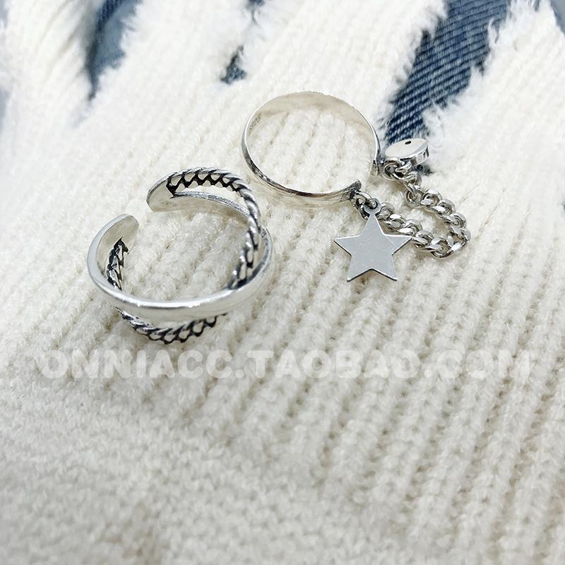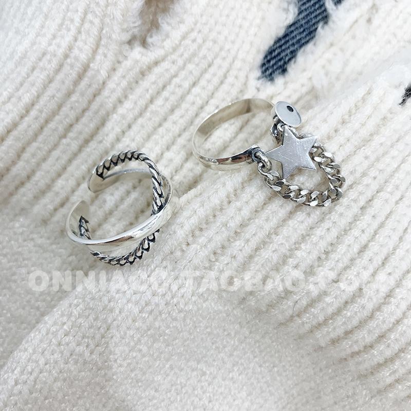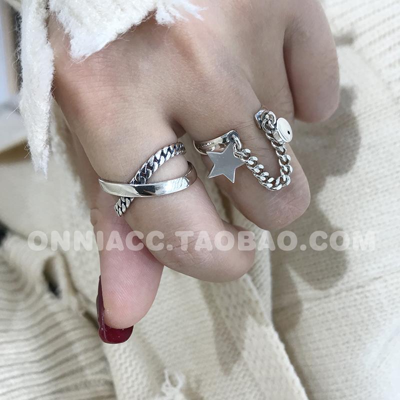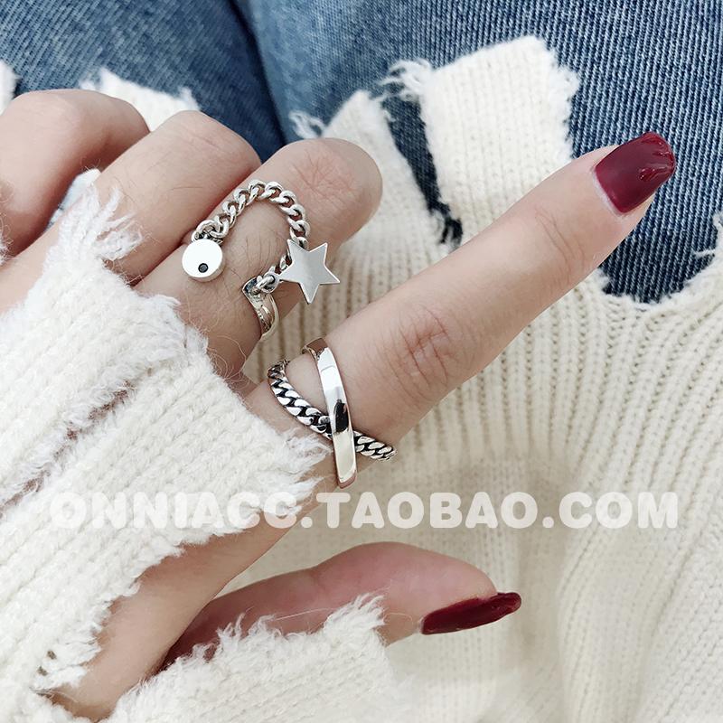 Anillo coreano Dongdaemun tejido de cadena cruzada estrella redondo marca anillo para mujer anillo de plata dedo índice plata tailandesa vintage abierto
