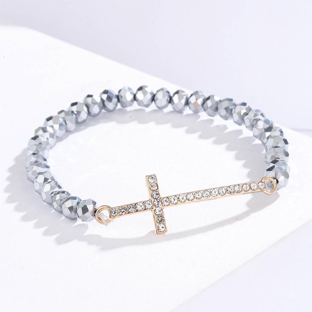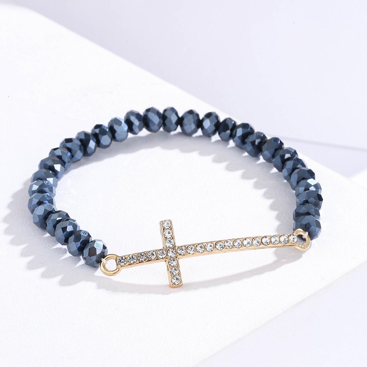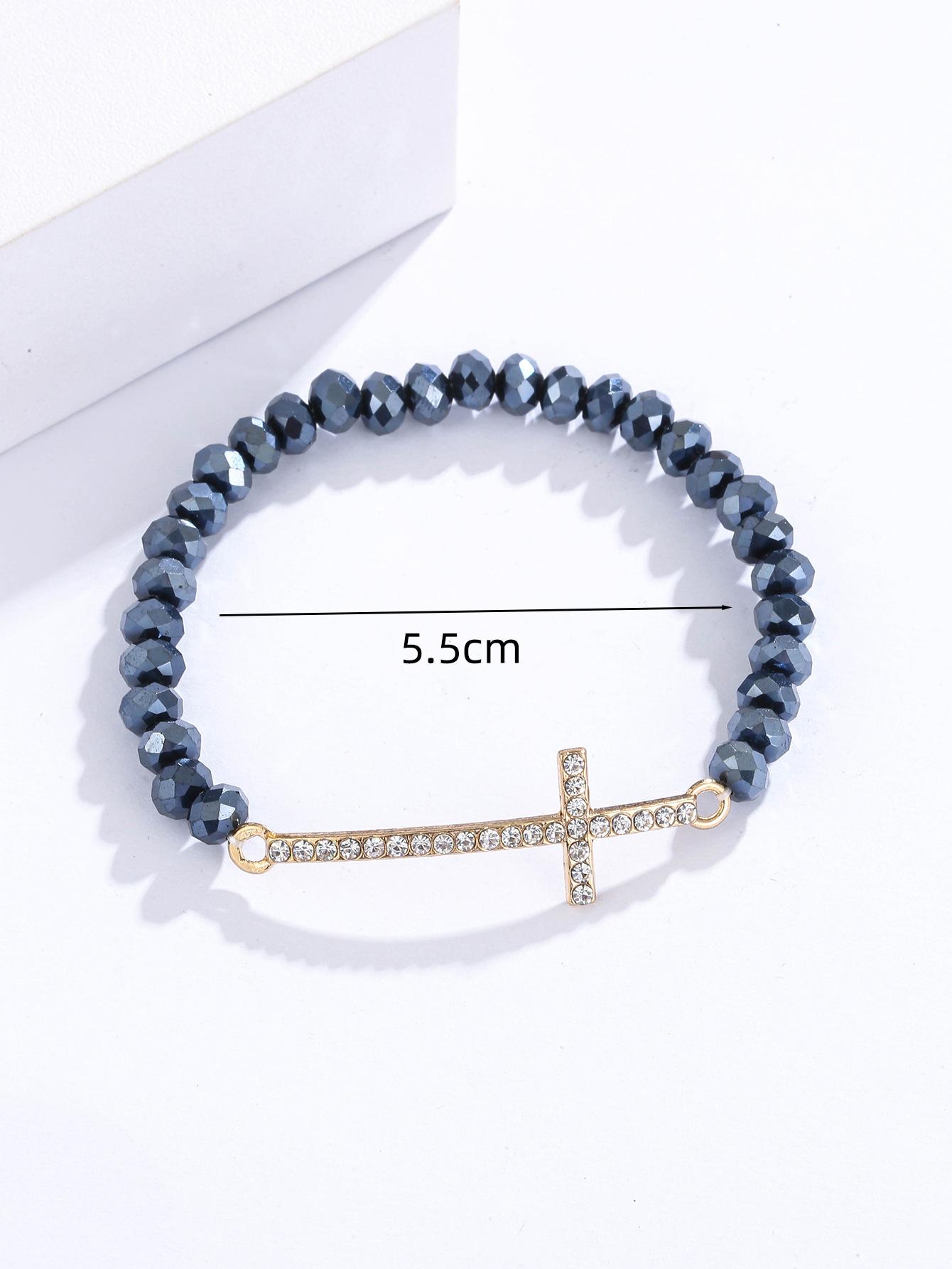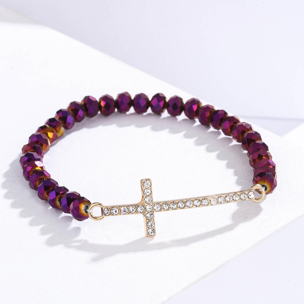 Compra Pulsera de Venta Caliente Transfronteriza, Cruz Simple con Incrustaciones de Diamantes, Pulsera de Cuentas de Cristal Colorido, Joyería Hecha a Mano Creativa y Versátil al por mayor en Joom.pro