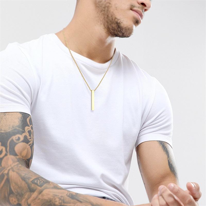 Colgante de Acero de Titanio de Moda Europea y Americana, Collar Largo Estéreo, Columna Cuadrada, Se Puede Grabar en Todos los Lados, Collar Personalizado