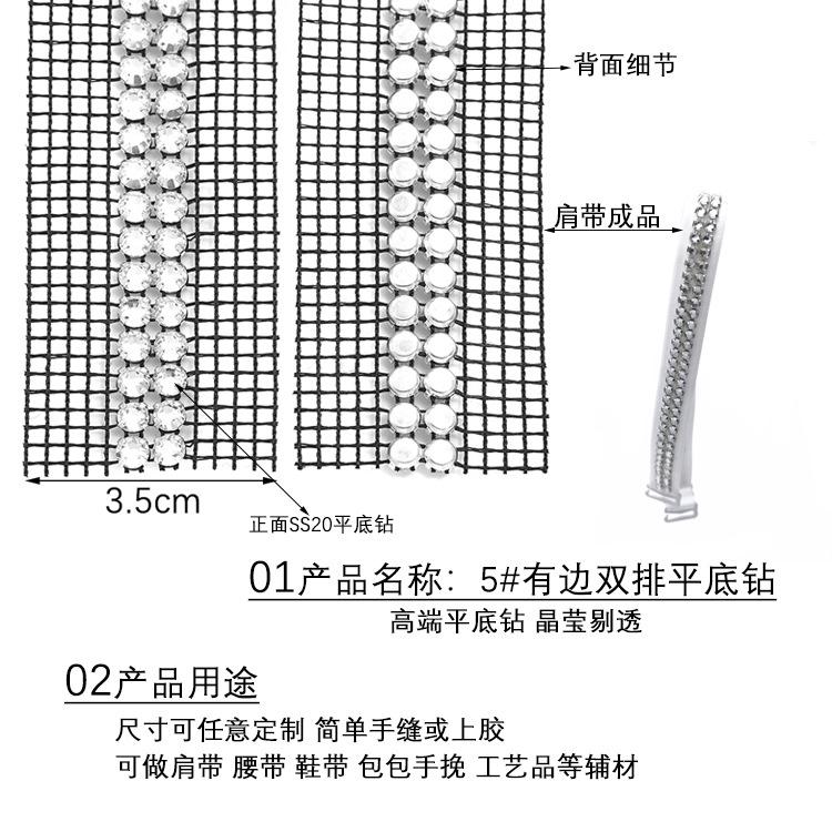 Ventas de Fábrica de Malla de Pedrería de Doble Fila de 5 mm con Fondo Plano para Materiales de Calzado, Bolsos, Accesorios de Ropa, Tirantes de Vestido de Novia, Accesorios de Joyería DIY