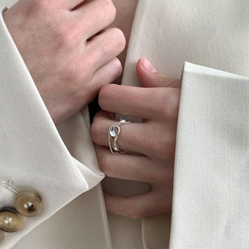 Anillo de Circonita de Onda Geométrica Moda para Mujer Simple Plata S925 Borla Coreana Anillo Abierto Hip-Hop Anillo para Dedo Moda