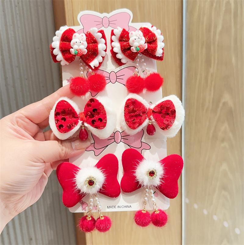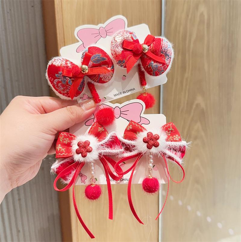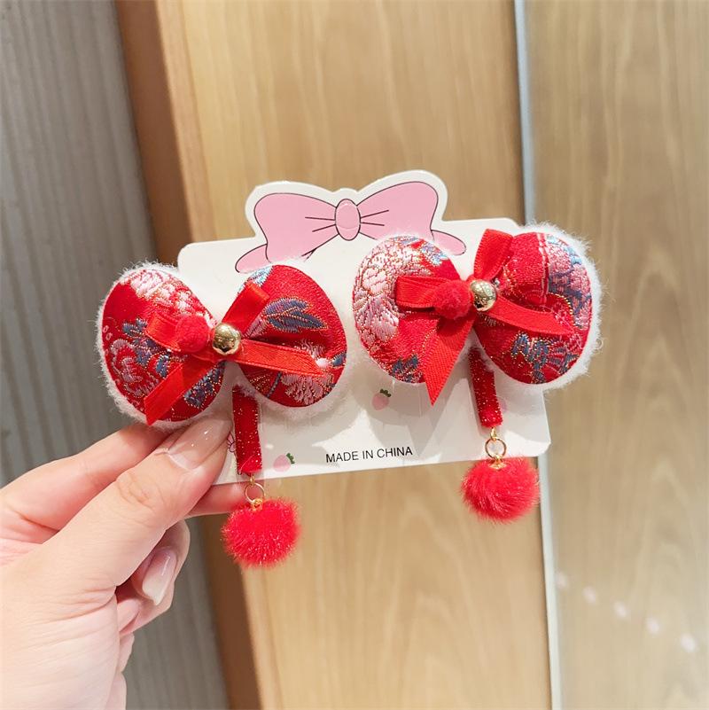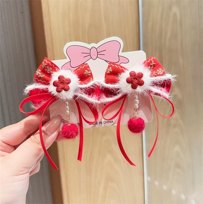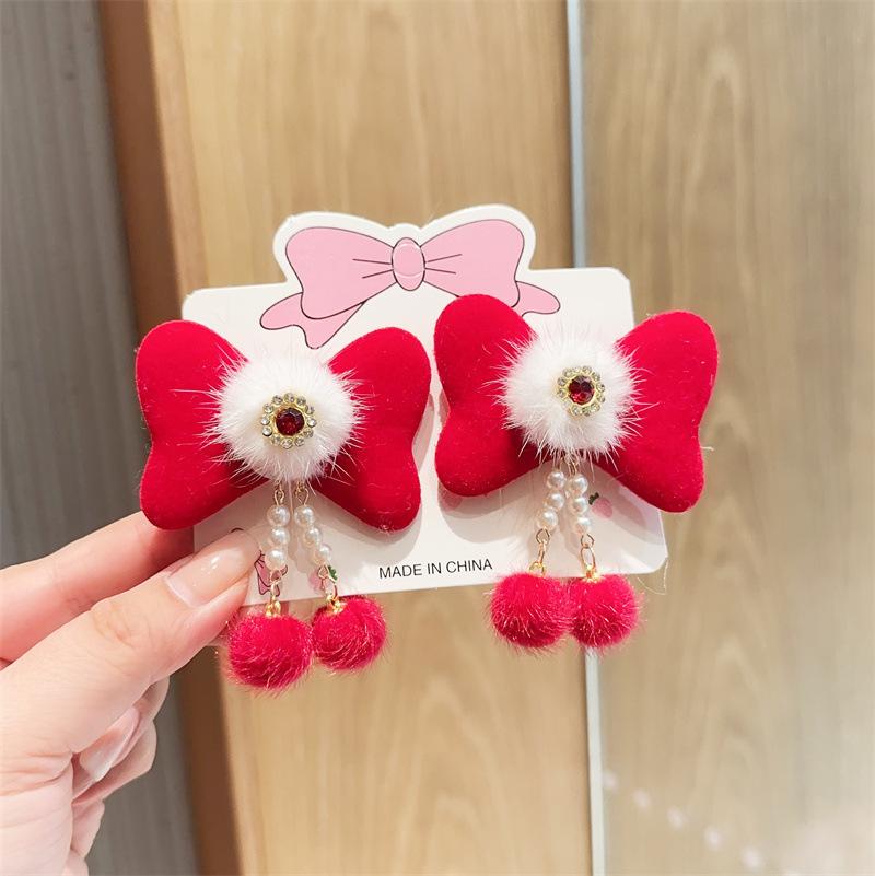 Horquilla de peluche para niña, elegante lazo rojo, pinza para flequillo lateral, tocado para bebé