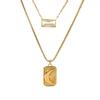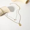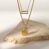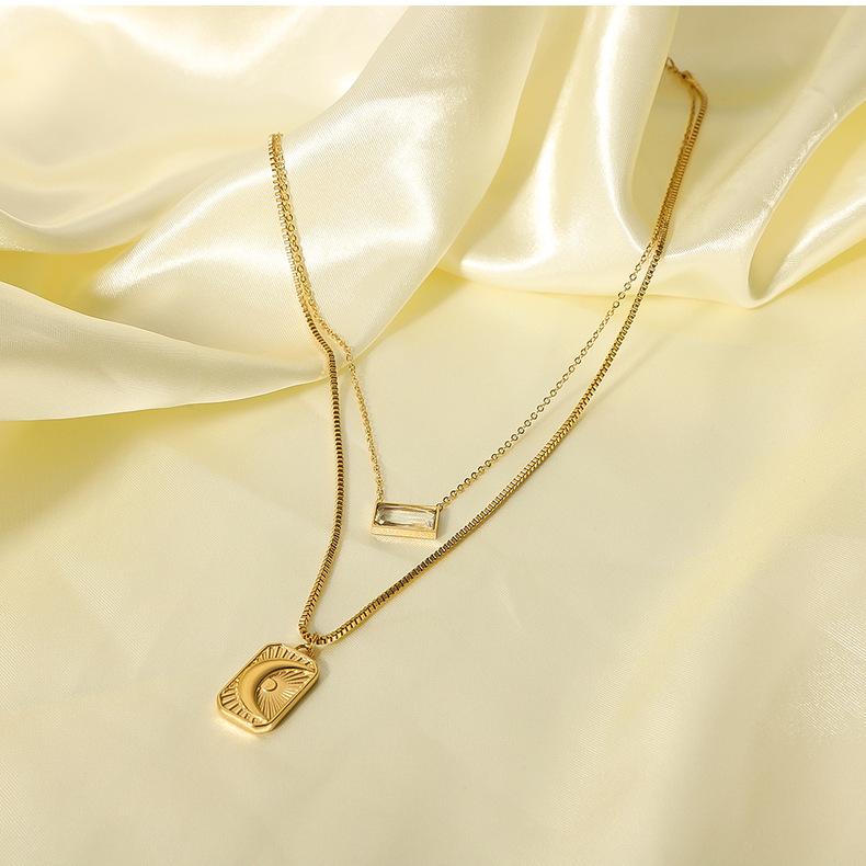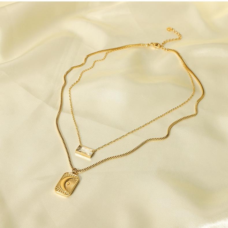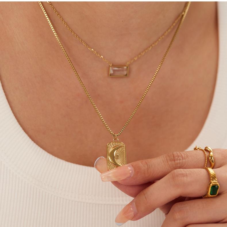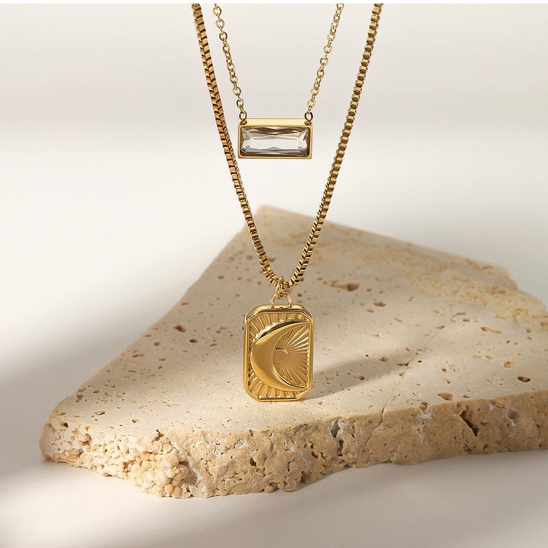 Collar con colgante de luna y sol europeo y americano transfronterizo de doble capa con circonita cuadrada de acero inoxidable, cadena para clavícula para mujer que no se desvanece