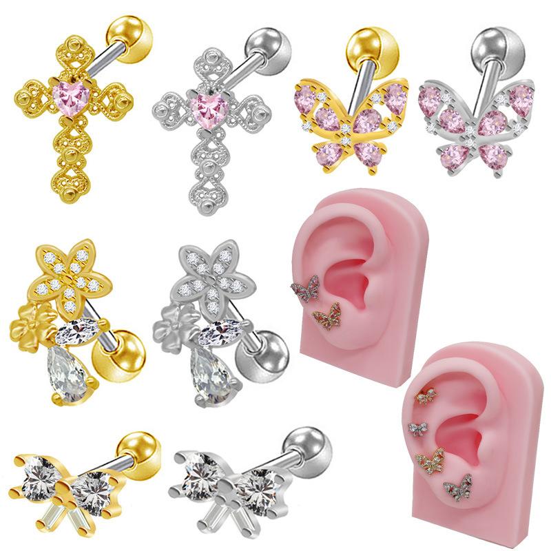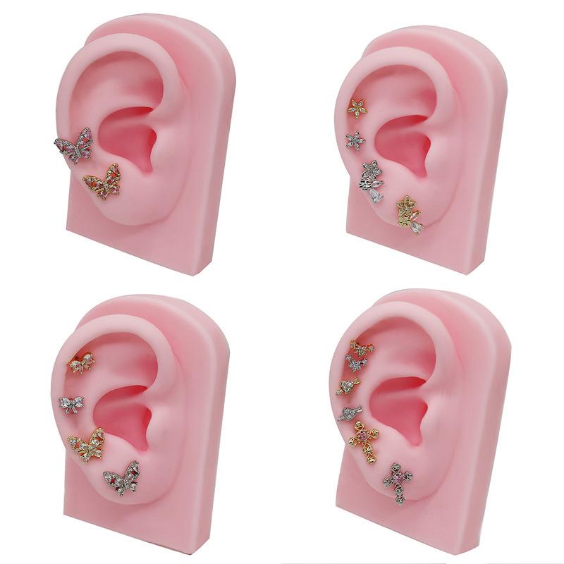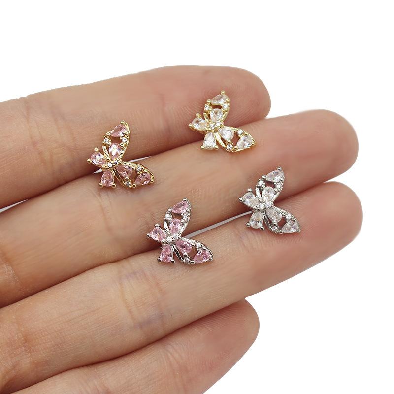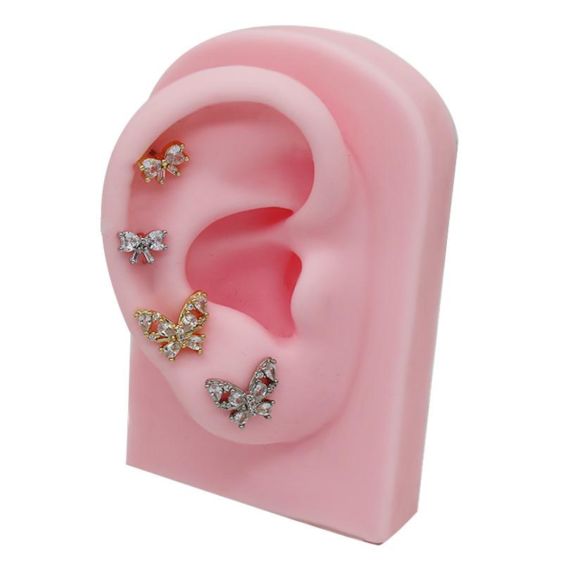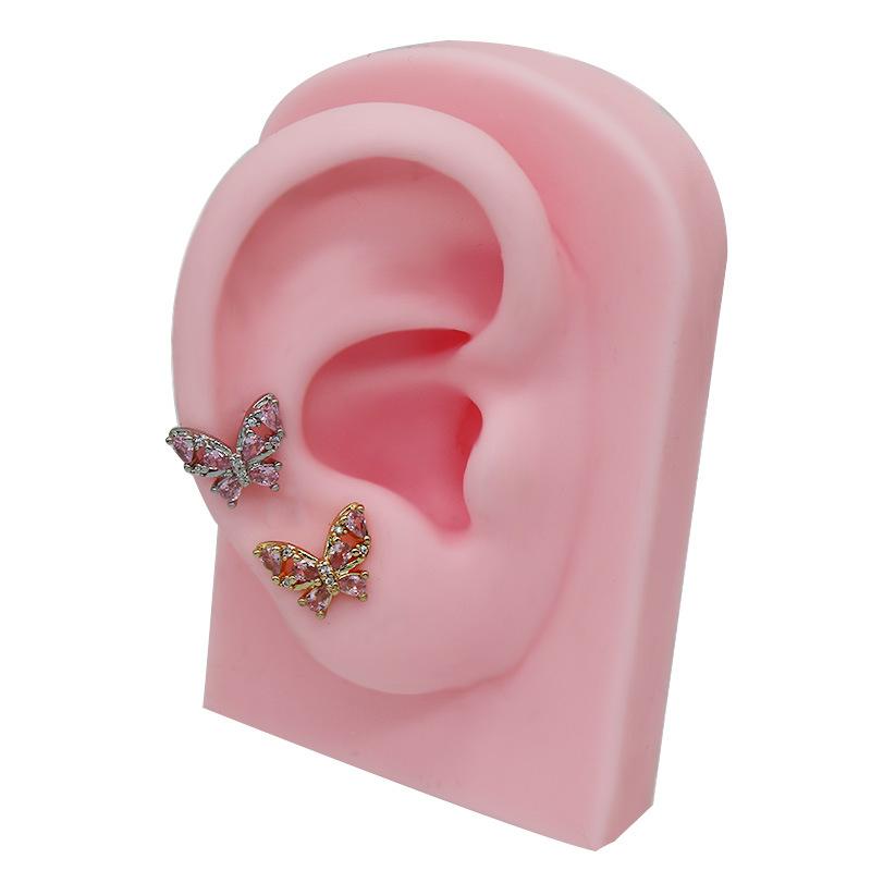 Exquisita uña de oreja cruzada transfronteriza de Gebei Europa y Estados Unidos con incrustaciones de circonitas y mariposas, joyería para perforar la oreja.