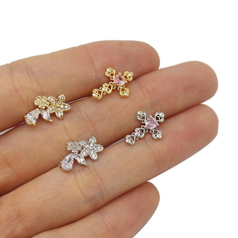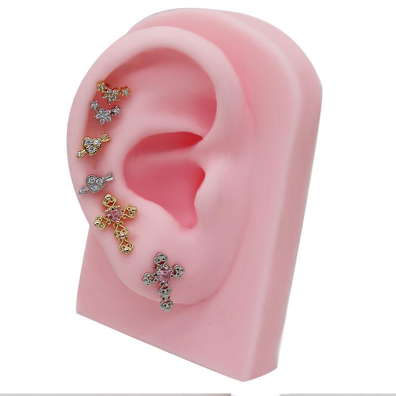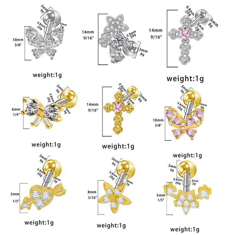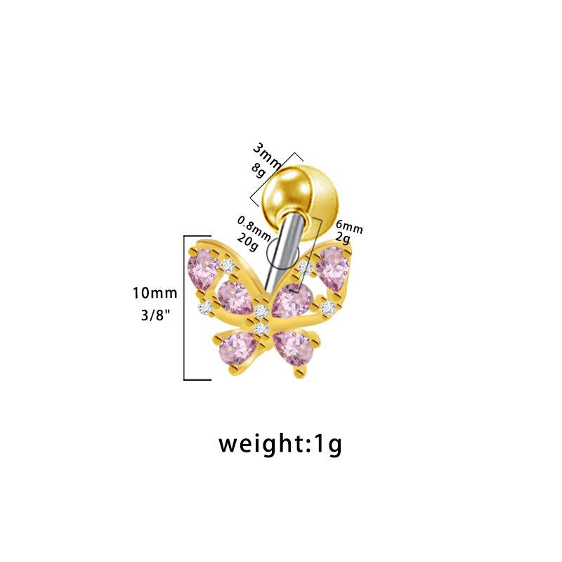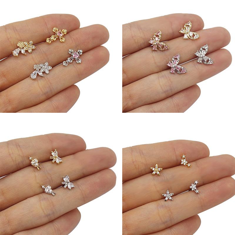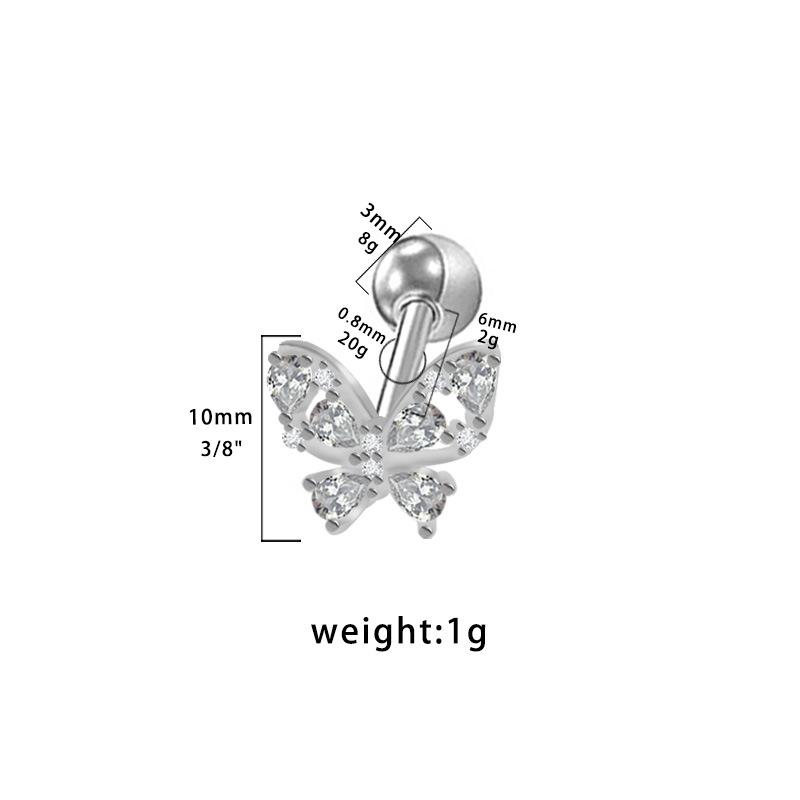 Exquisita uña de oreja cruzada transfronteriza de Gebei Europa y Estados Unidos con incrustaciones de circonitas y mariposas, joyería para perforar la oreja.