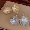 Pendientes de bola de diamante con diseño de flor de diamante de estilo francés avanzado, ligeros y lujosos, con gancho para la oreja y diseño elegante para mujer.