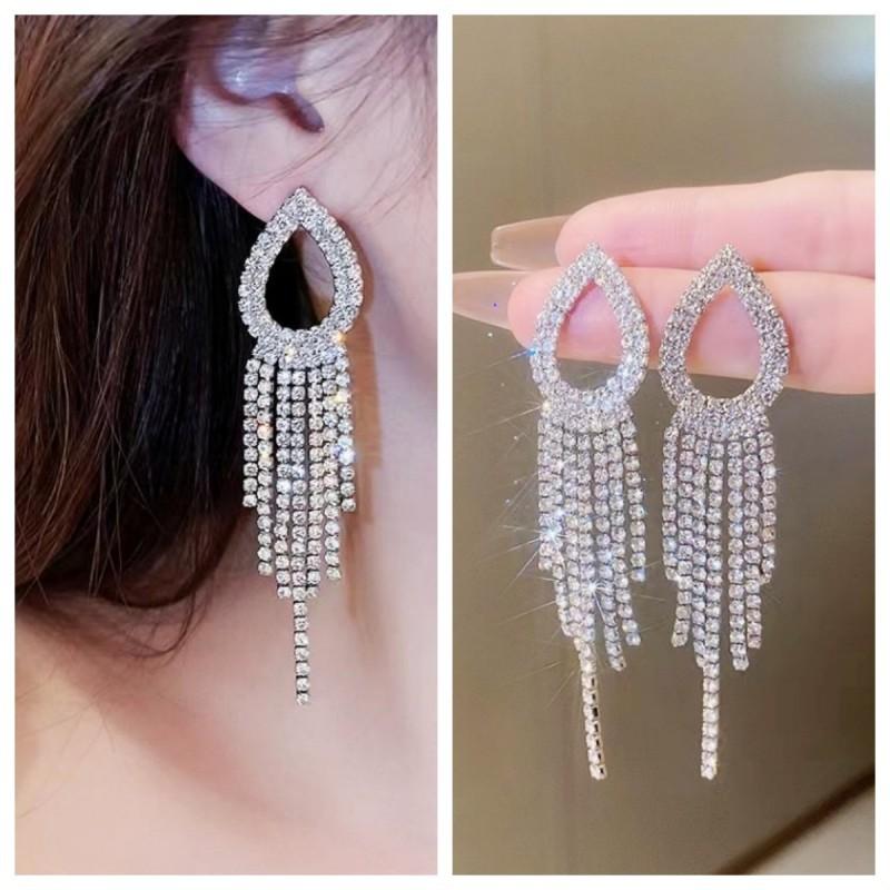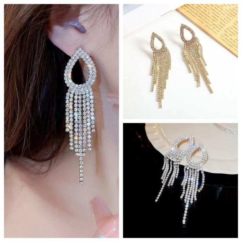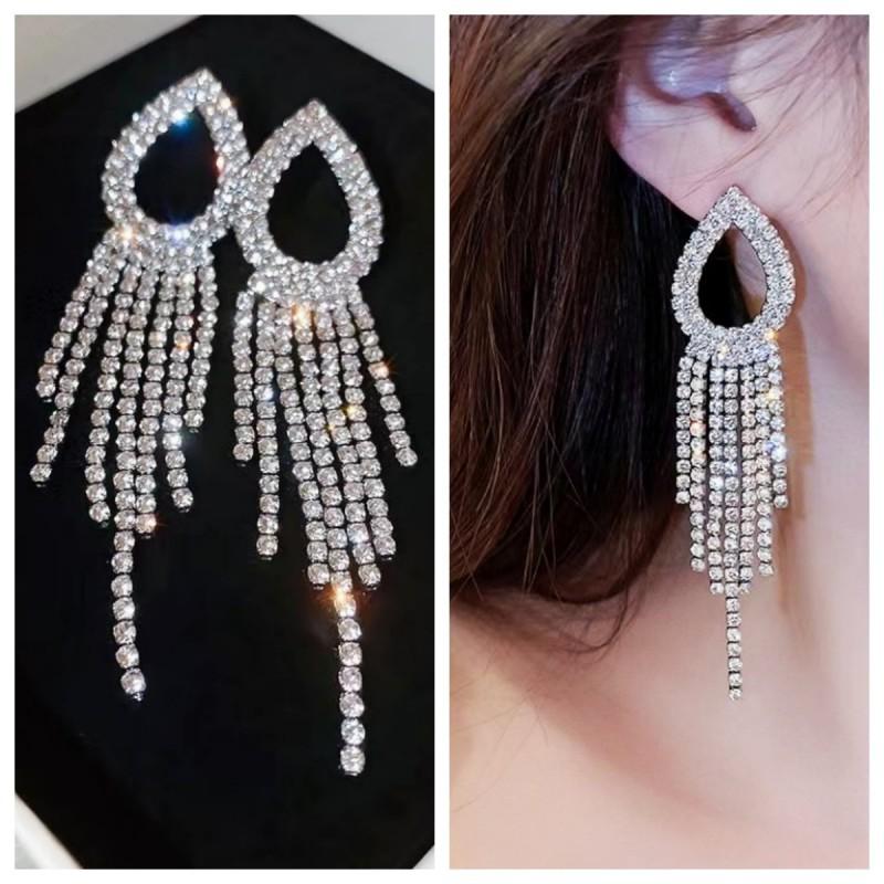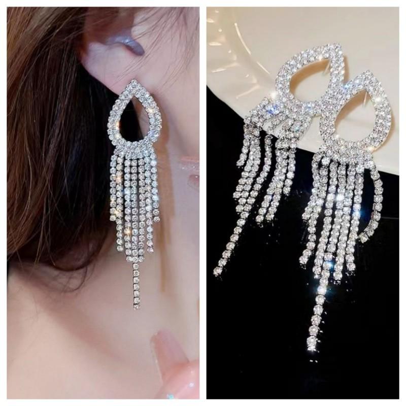 Pendientes largos con borlas y diamantes brillantes de lujo para mujer, elegantes y de alta gama, con un diseño moderno y moderno.