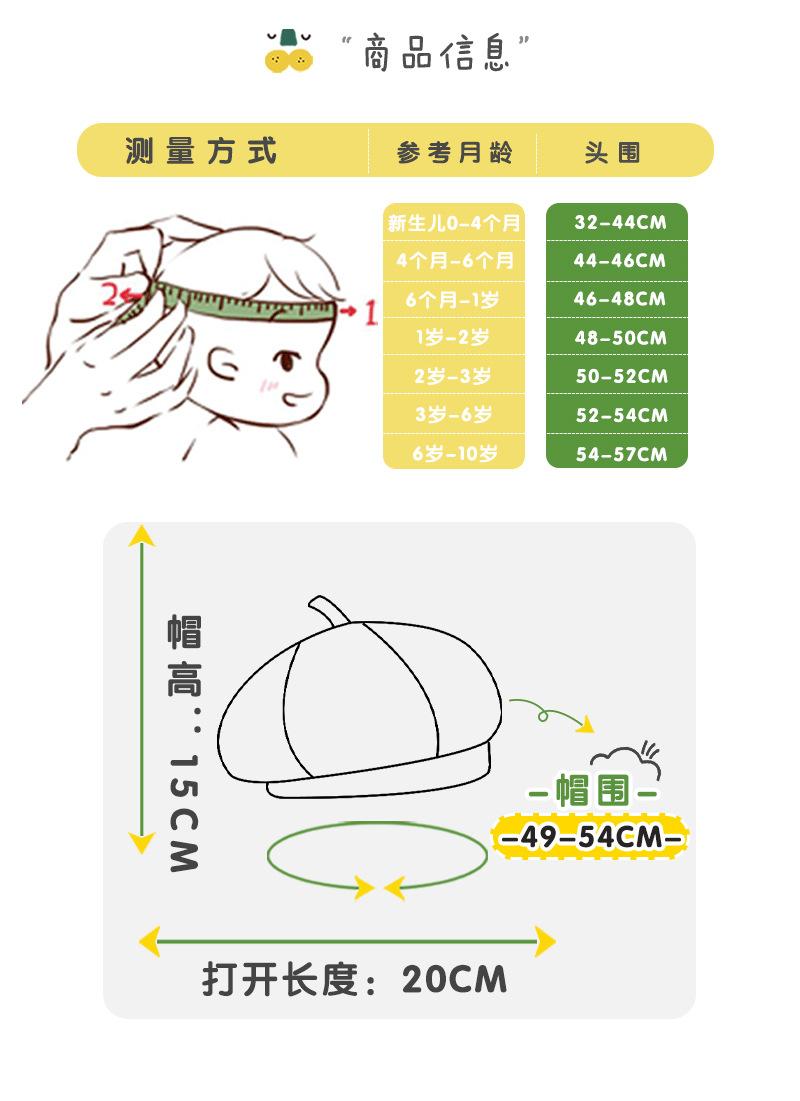 Hat circumference 48-50cm can be worn (recommended age 1-2 years old)
