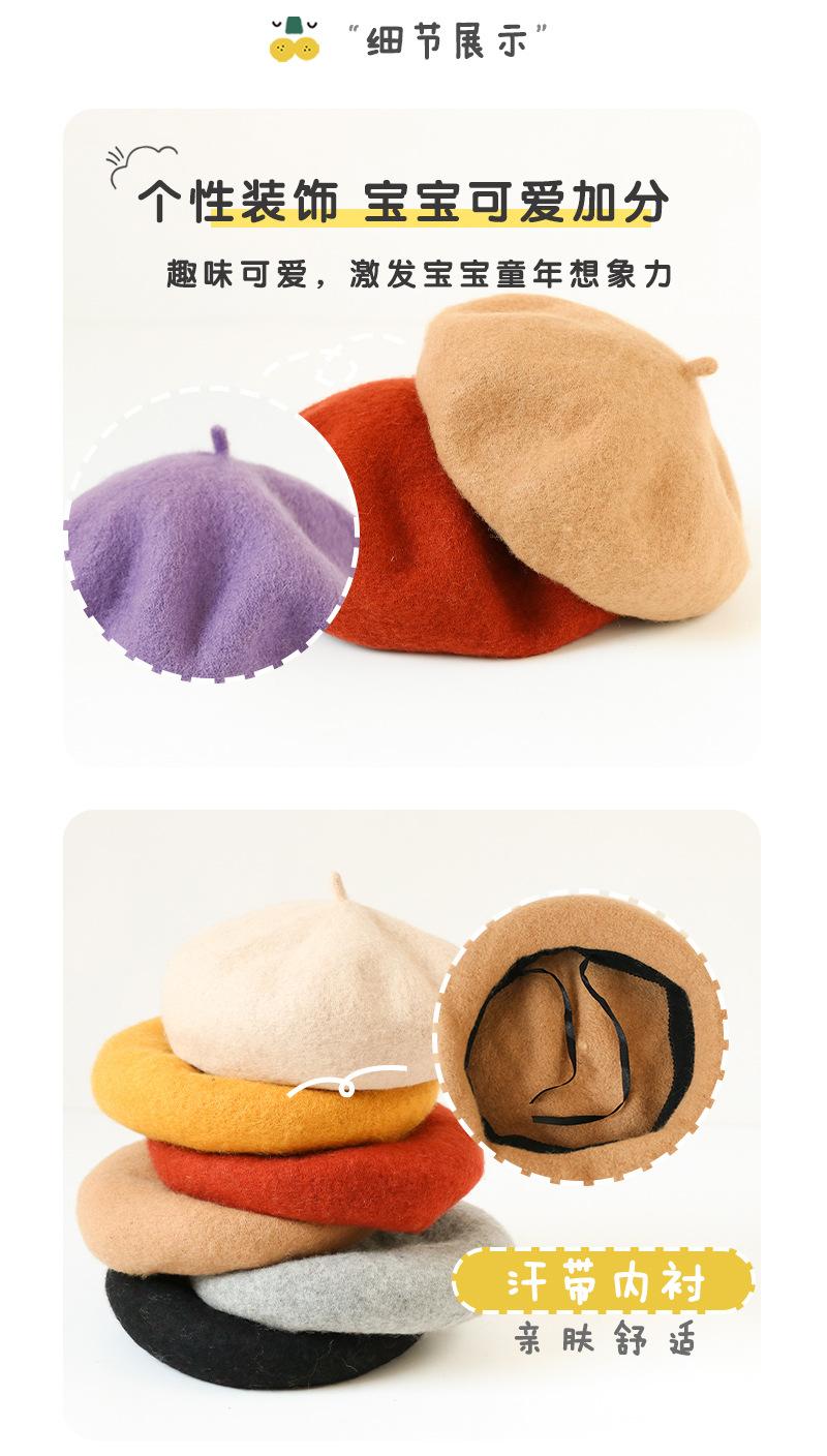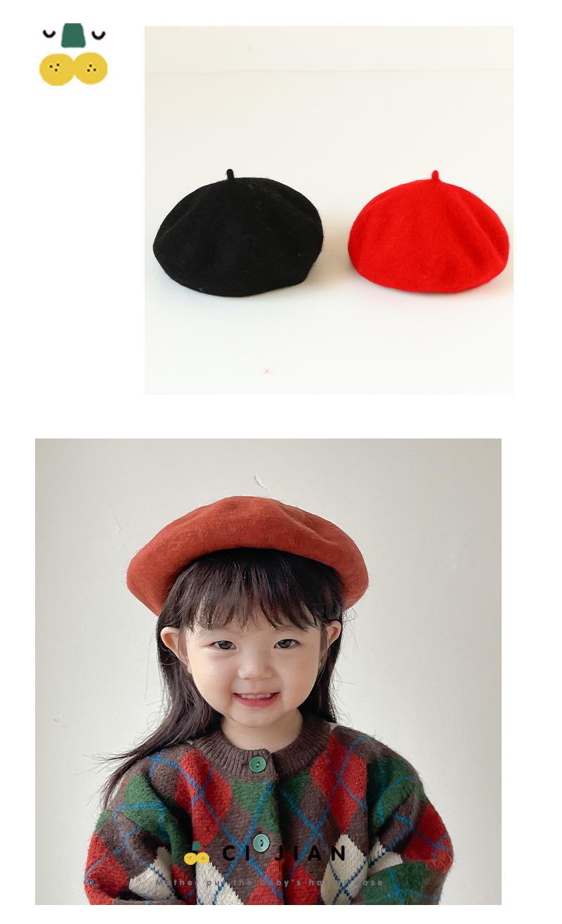 Gorro infantil de otoño e invierno, nuevo estilo occidental, boina de lana de moda para niñas, gorro de pintor de color sólido para uso diario.