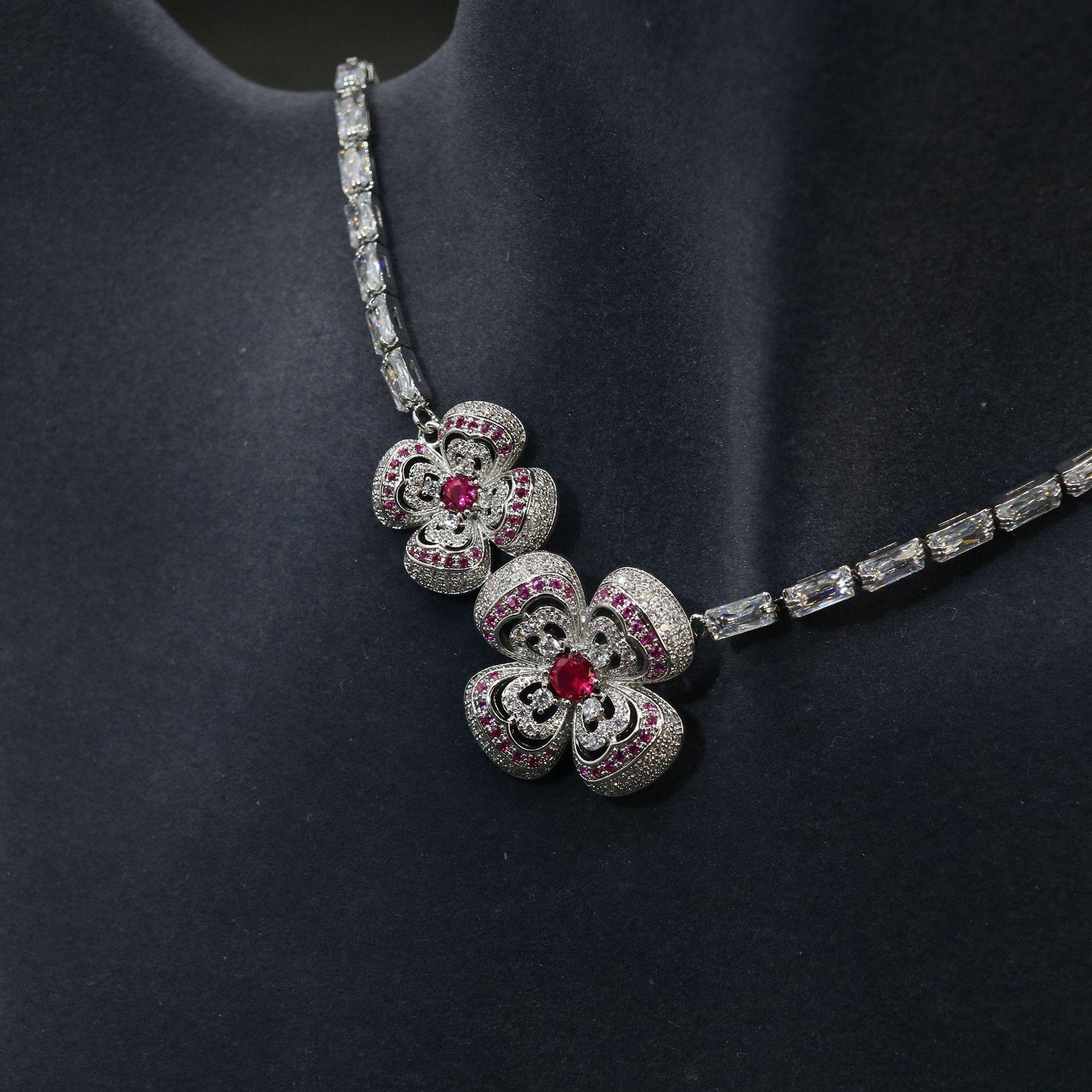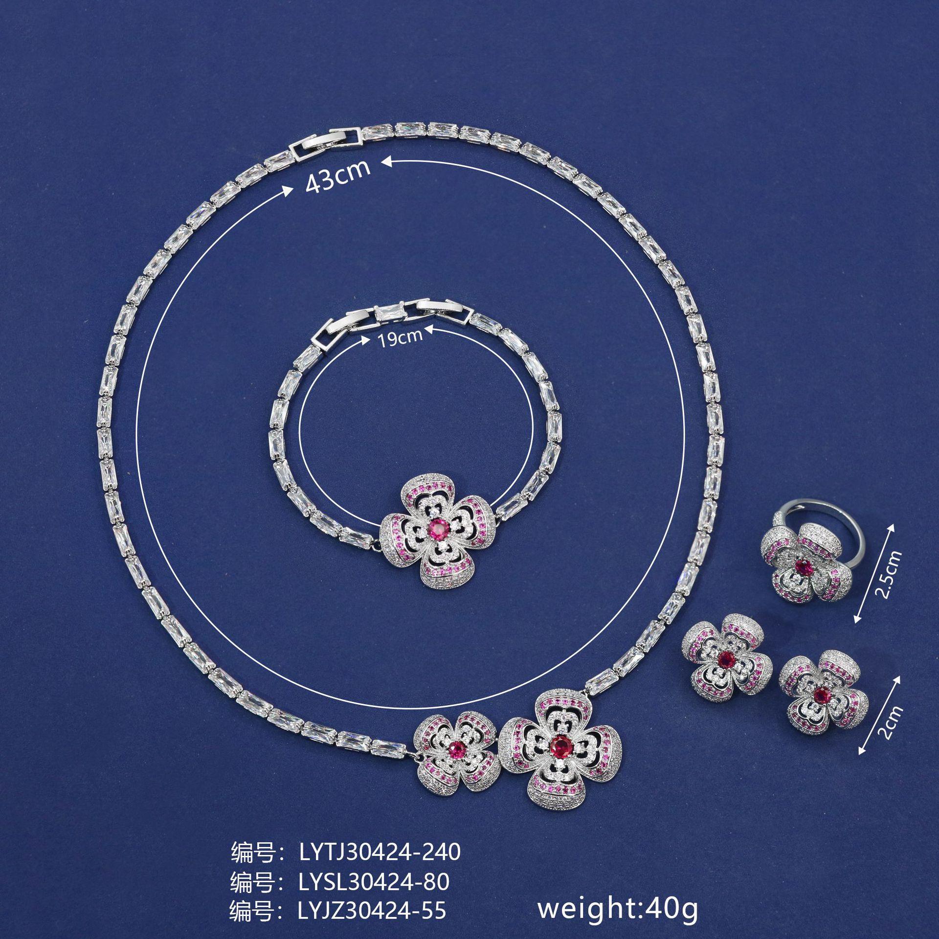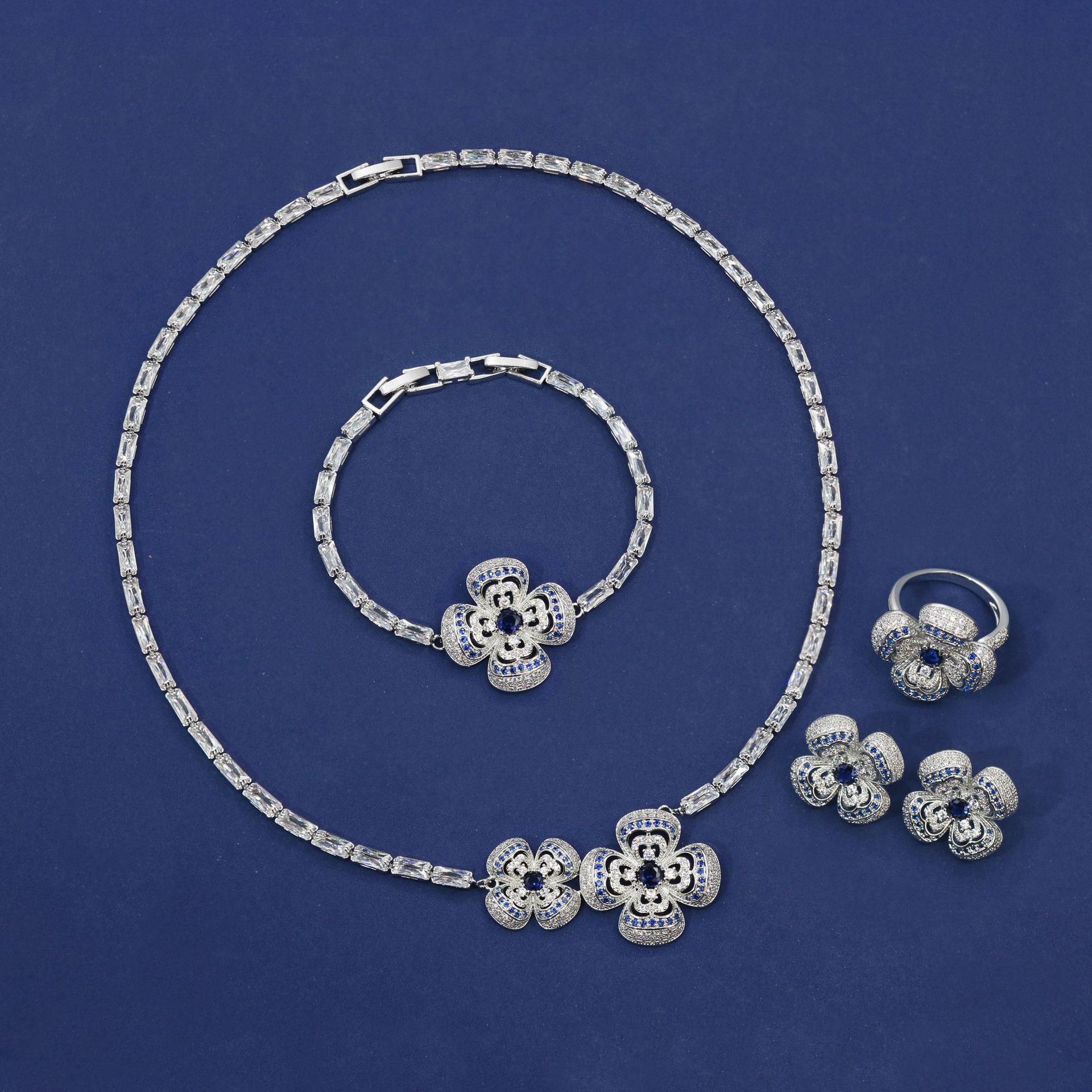 Conjunto de cuatro piezas de collar, pulsera, pendientes y anillo para mujer, estilo europeo y americano, con flores a la moda, para novias transfronterizas europeas y americanas. Traje que combina con todo.