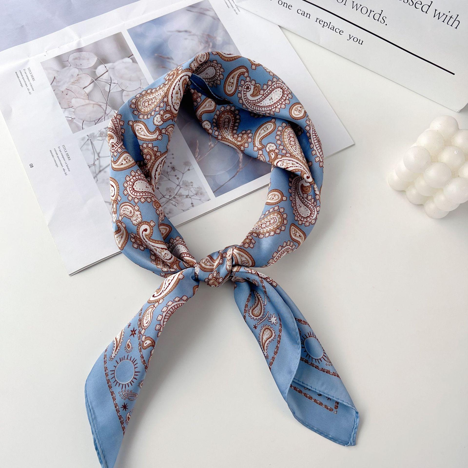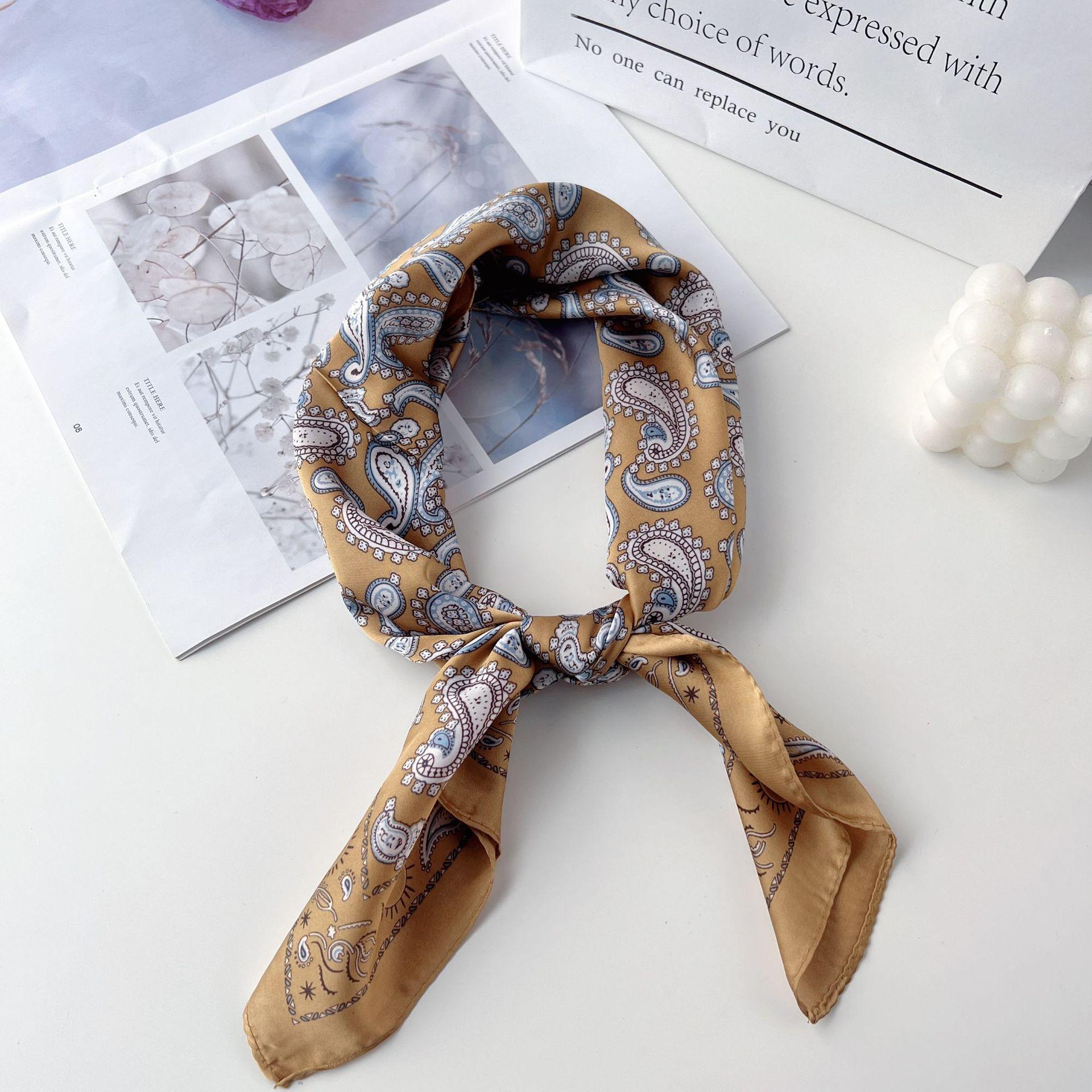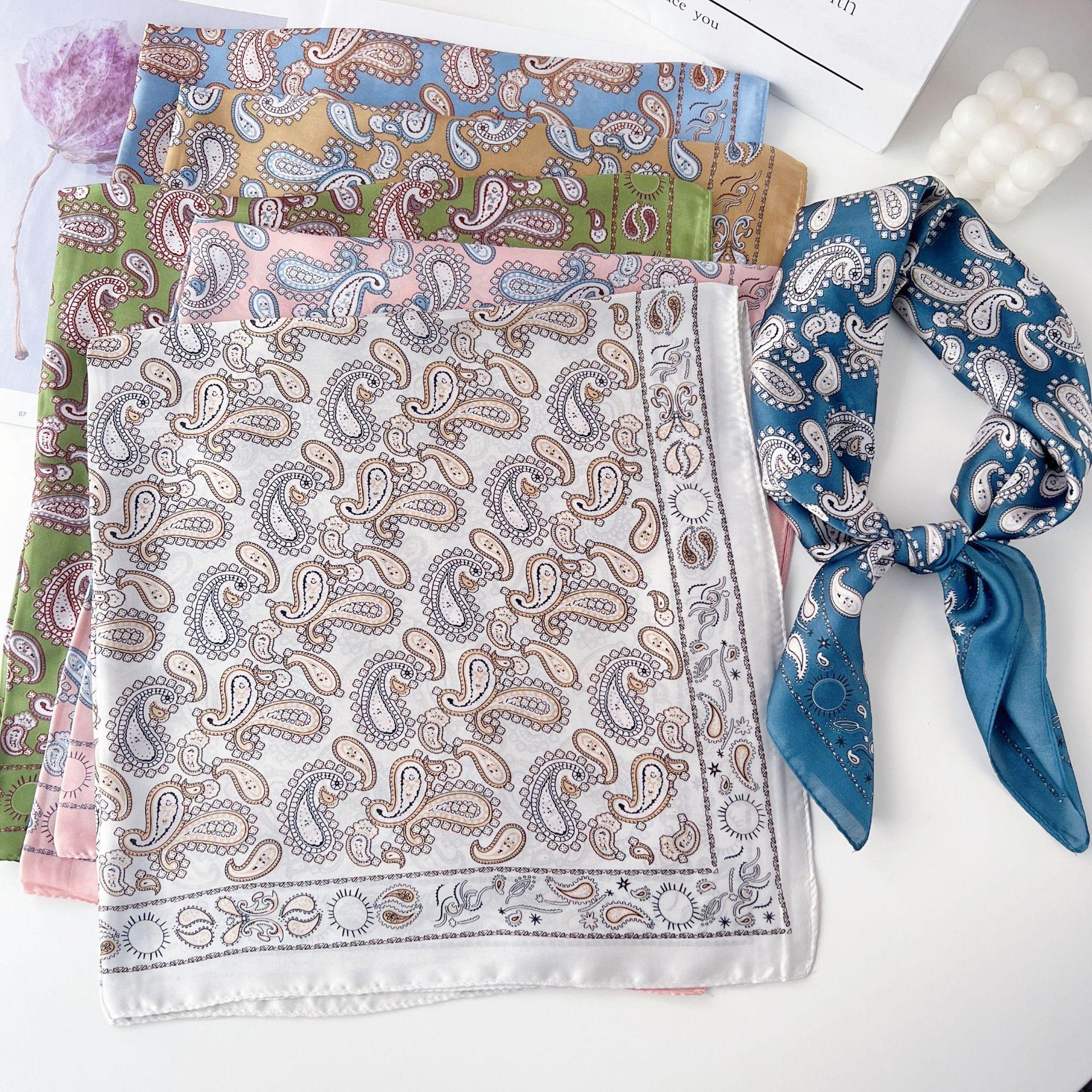Bufanda Flor de Anacardo Nuevo Estilo para Mujer Cuatro Estaciones Estilo Coreano Bufanda Cuadrada de 70 cm Ropa Estampada Tipo Seda Bufanda Versátil Pañuelo para la Cabeza