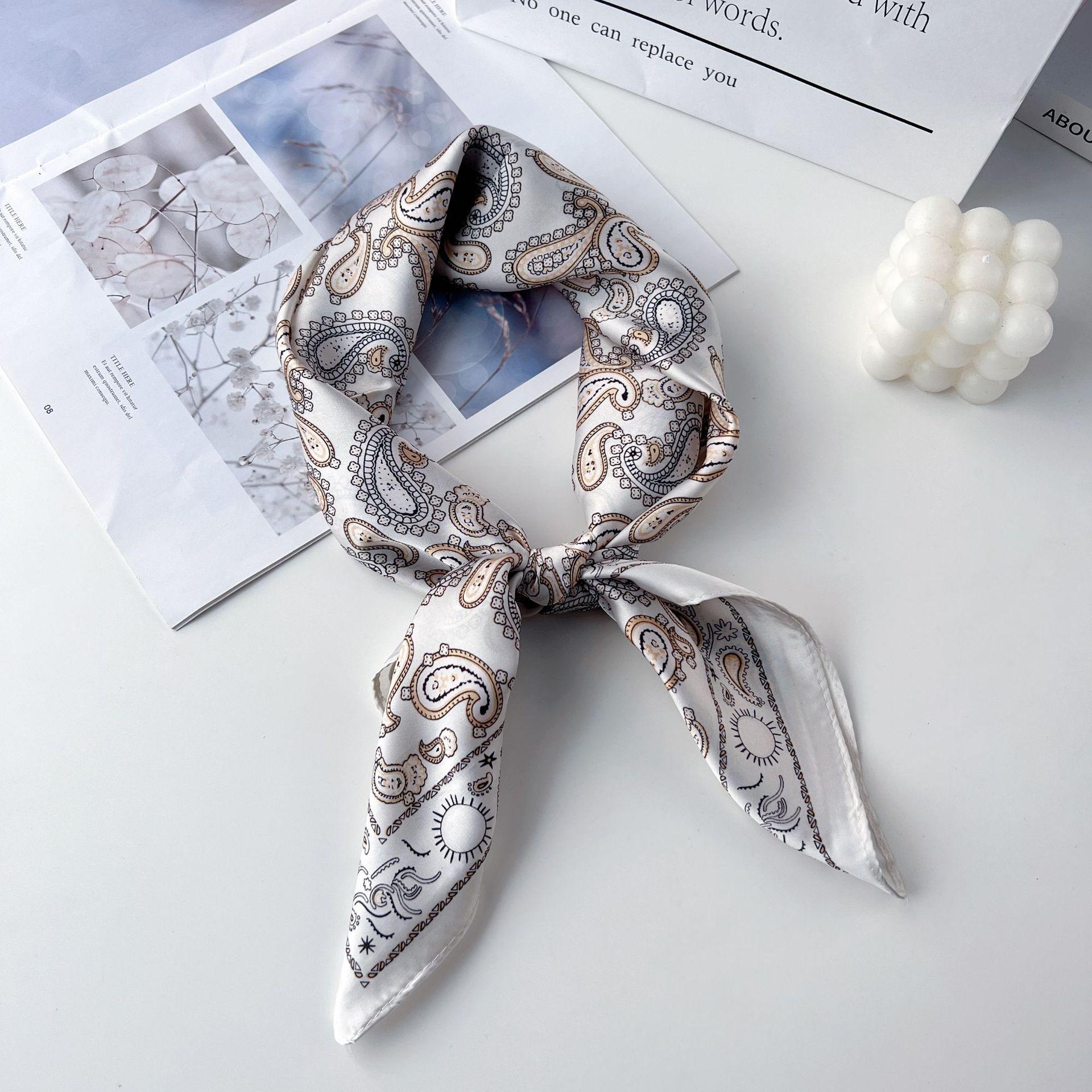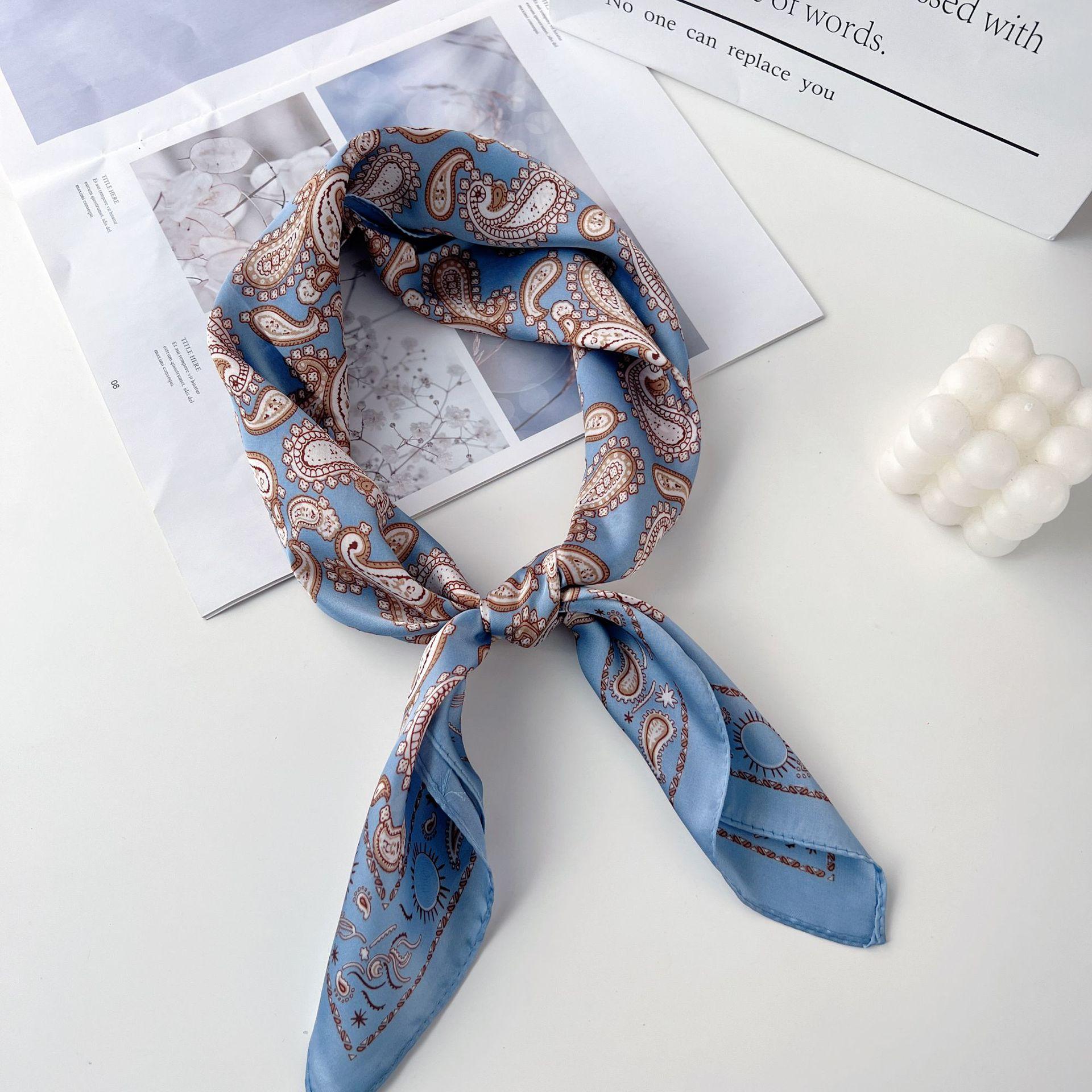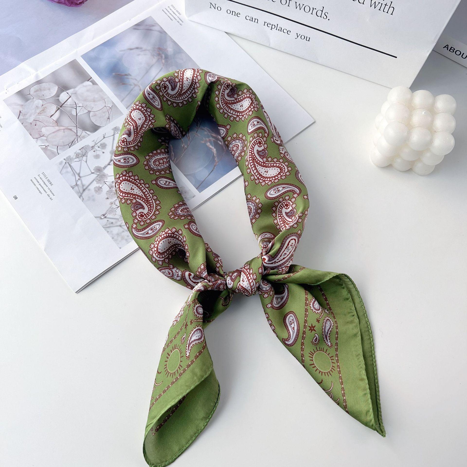 Bufanda Flor de Anacardo Nuevo Estilo para Mujer Cuatro Estaciones Estilo Coreano Bufanda Cuadrada de 70 cm Ropa Estampada Tipo Seda Bufanda Versátil Pañuelo para la Cabeza