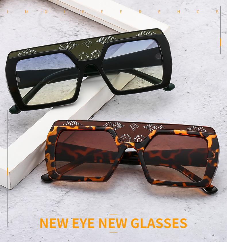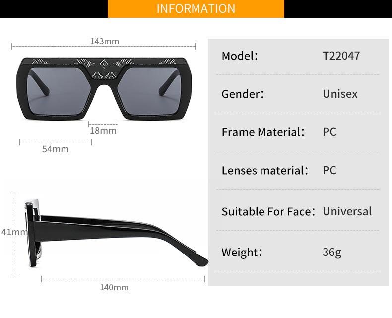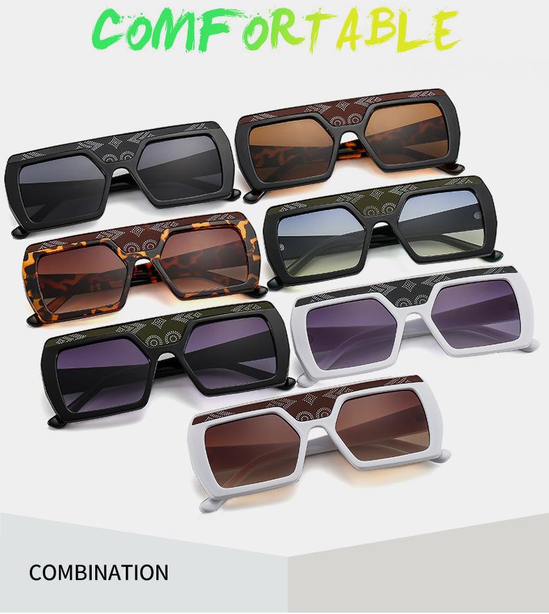 Nuevas gafas de sol cuadradas de montura grande para hombre de estilo europeo y americano, pegatinas con patrón co-craft, gafas de sol decorativas de moda T22047