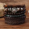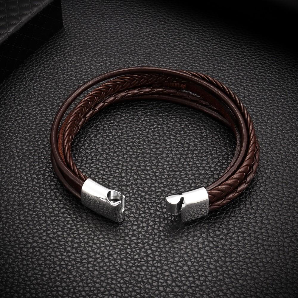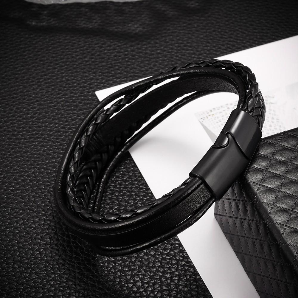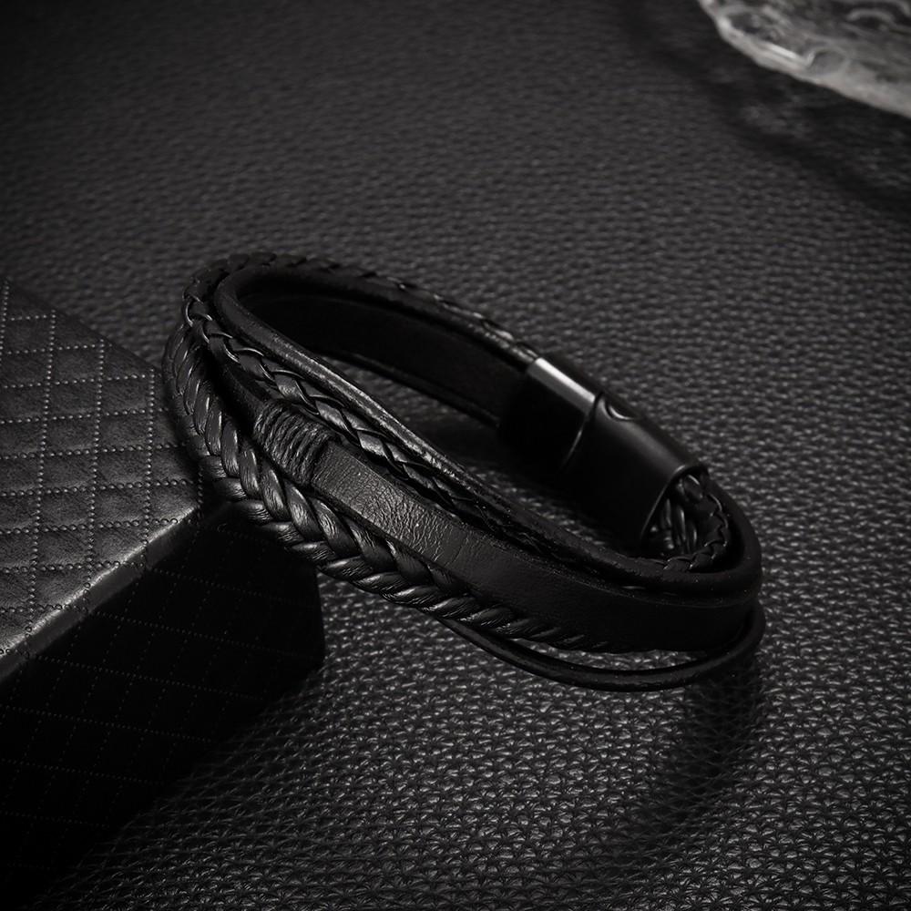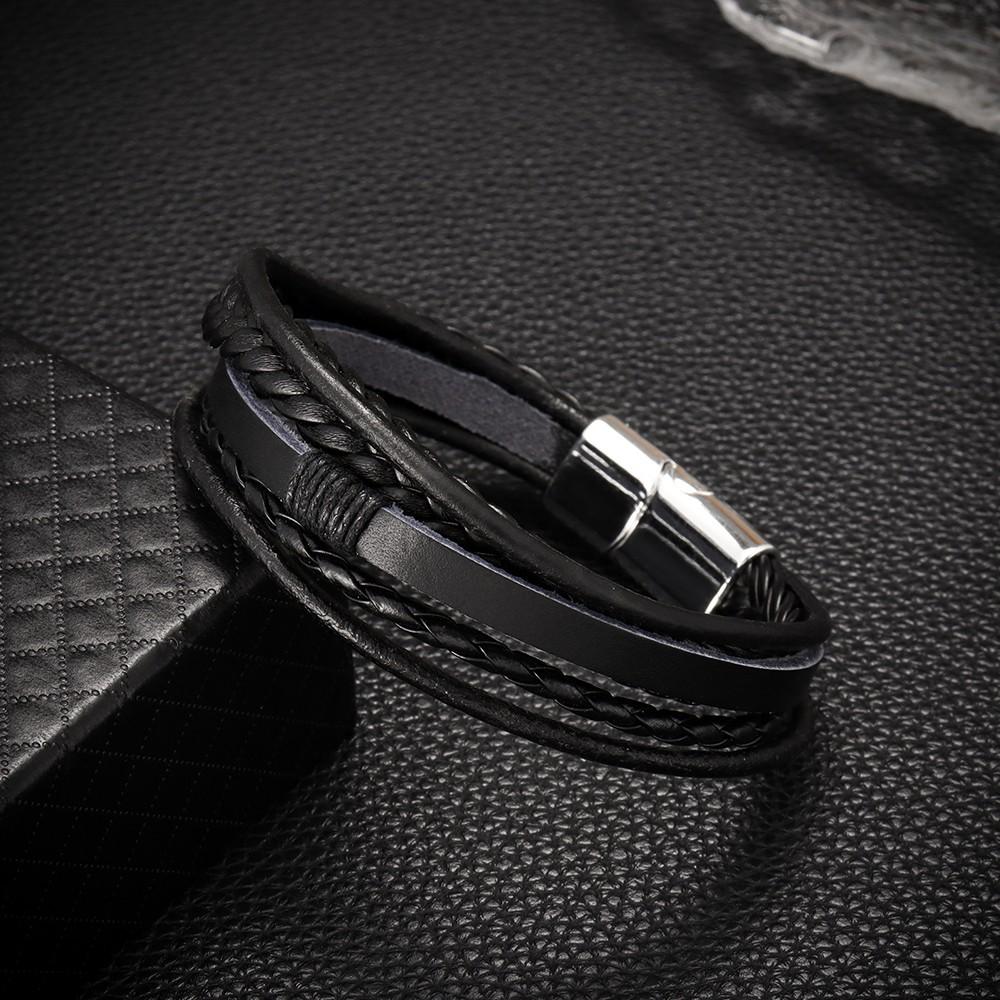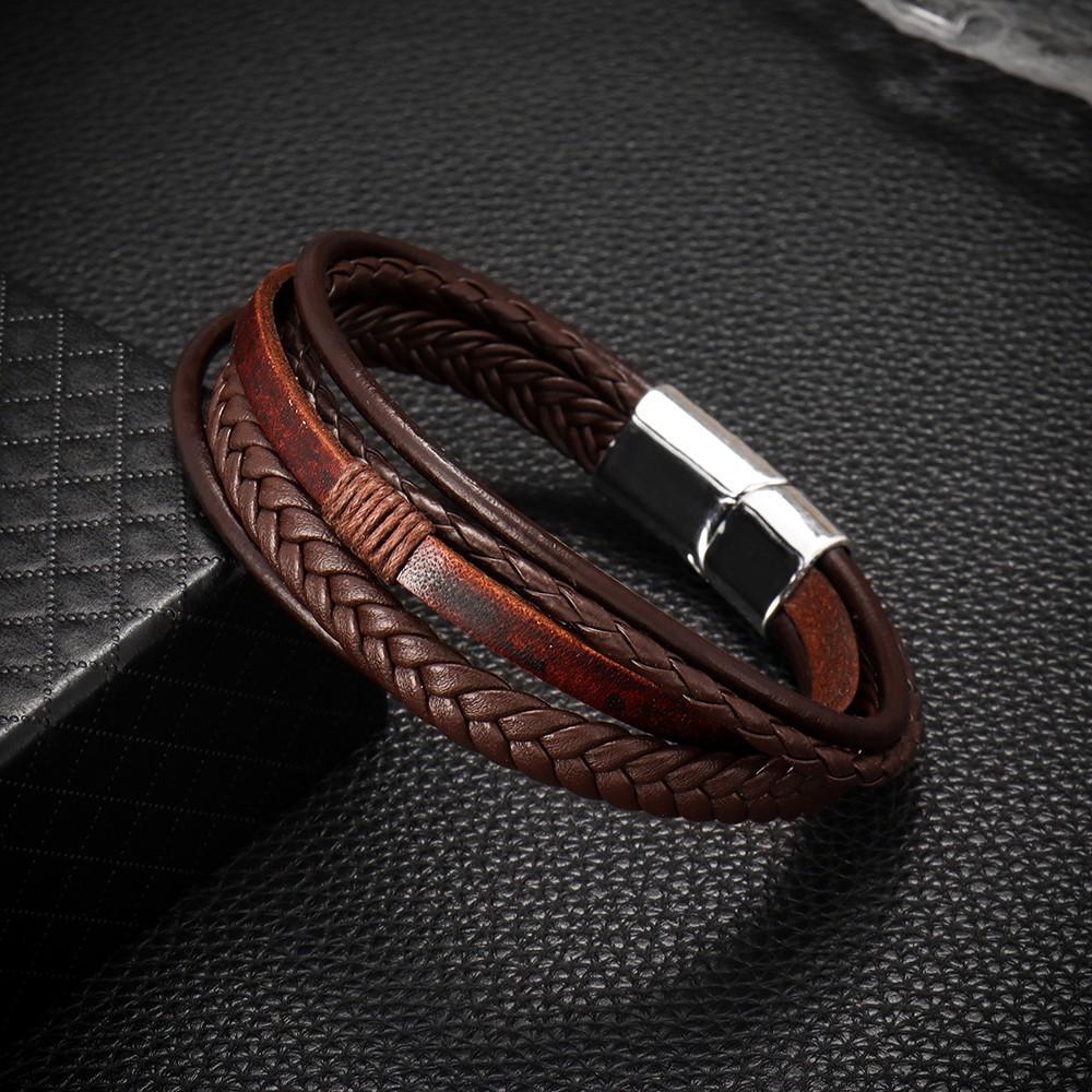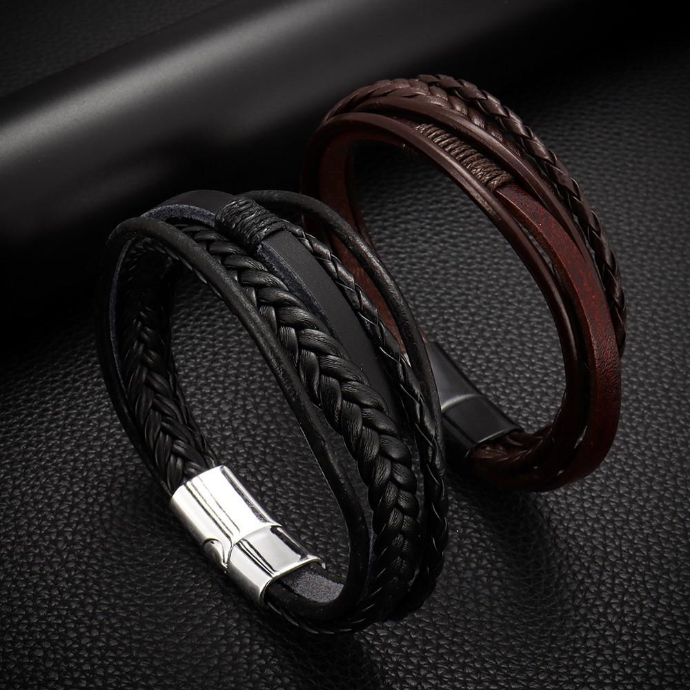 Temu oferta especial pulsera tejida de cuerda de cuero PU para hombre, pulsera de temperamento y personalidad, pulsera de aleación con hebilla magnética, joyería
