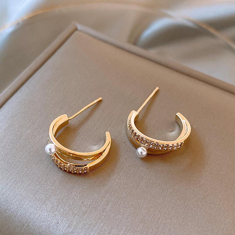 Pendientes de aro en forma de C, pendientes de perlas para mujer, nuevos pendientes de moda 2022, diseño de nicho, pendientes de viento frío