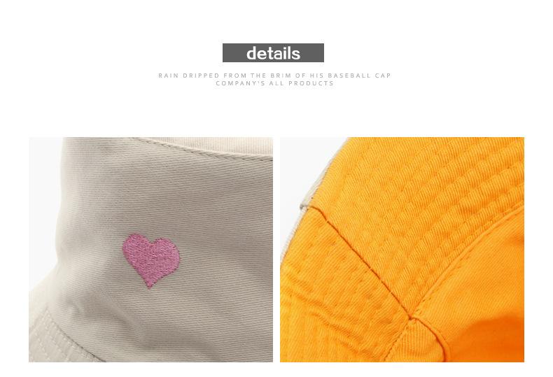 Sombrero de pescador bordado de doble cara con amor, estilo coreano, estilo japonés, para parejas, protección solar, para deportes al aire libre y ocio