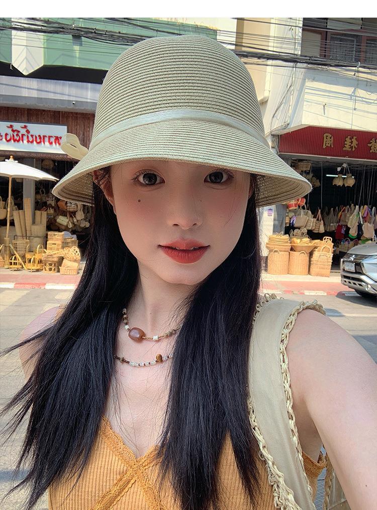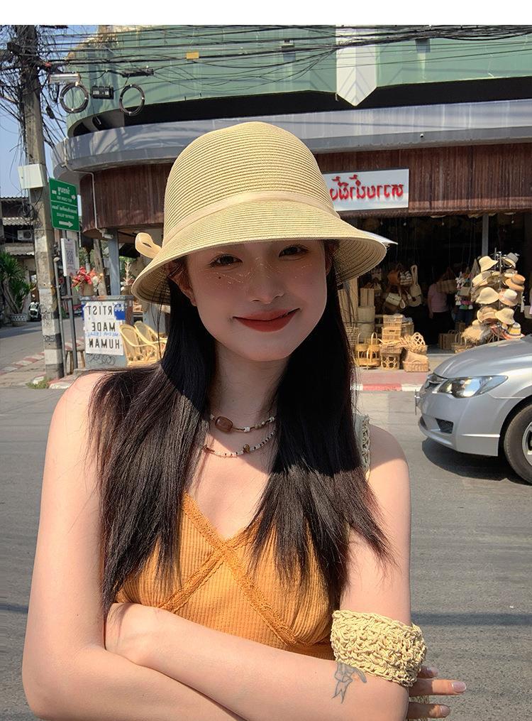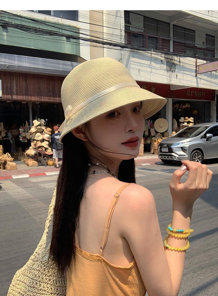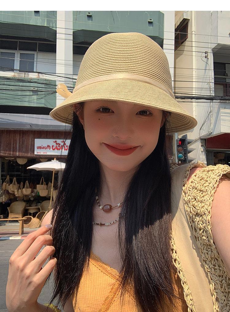 Sombrero de Paja Pequeño con Visera Descubridora de Rostro de Nuevo Estilo 2024 Sombrero de Paja de Estilo Hepburn con Lazo para Mujer para Moda Casual al Aire Libre