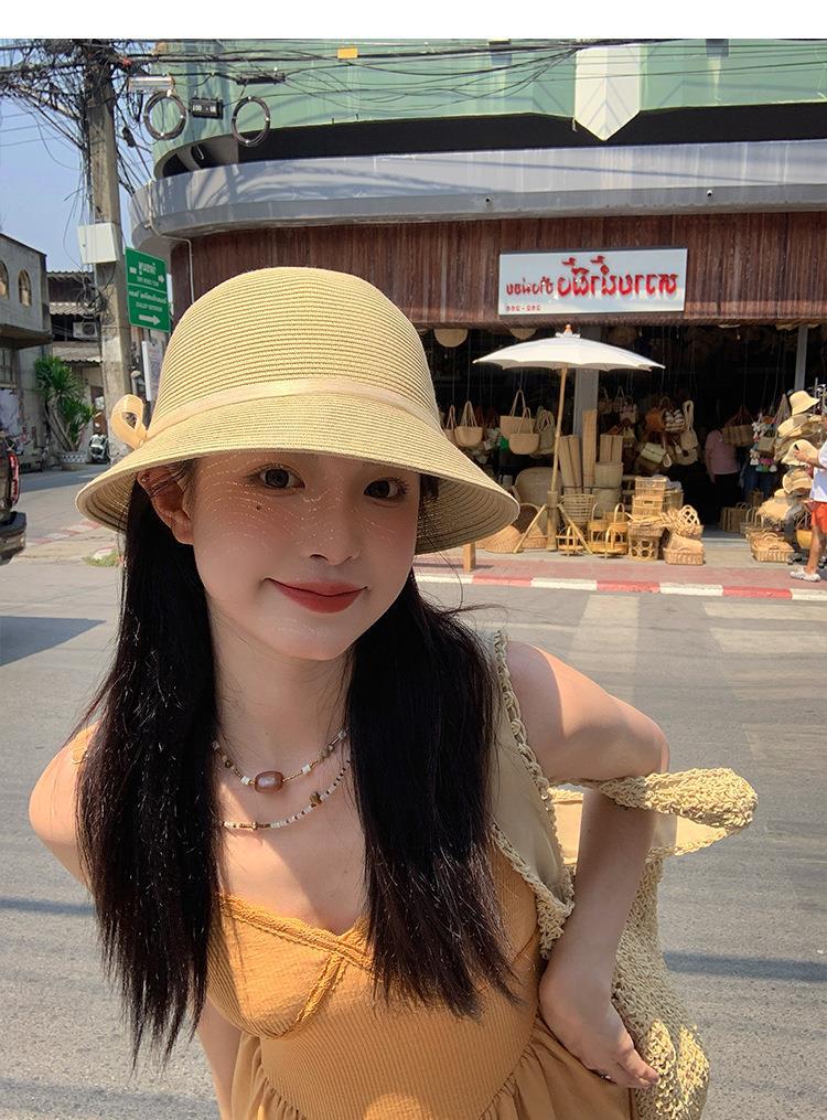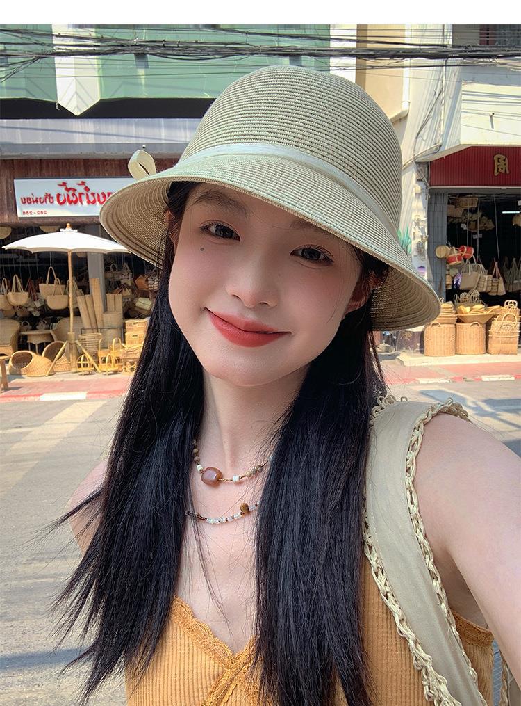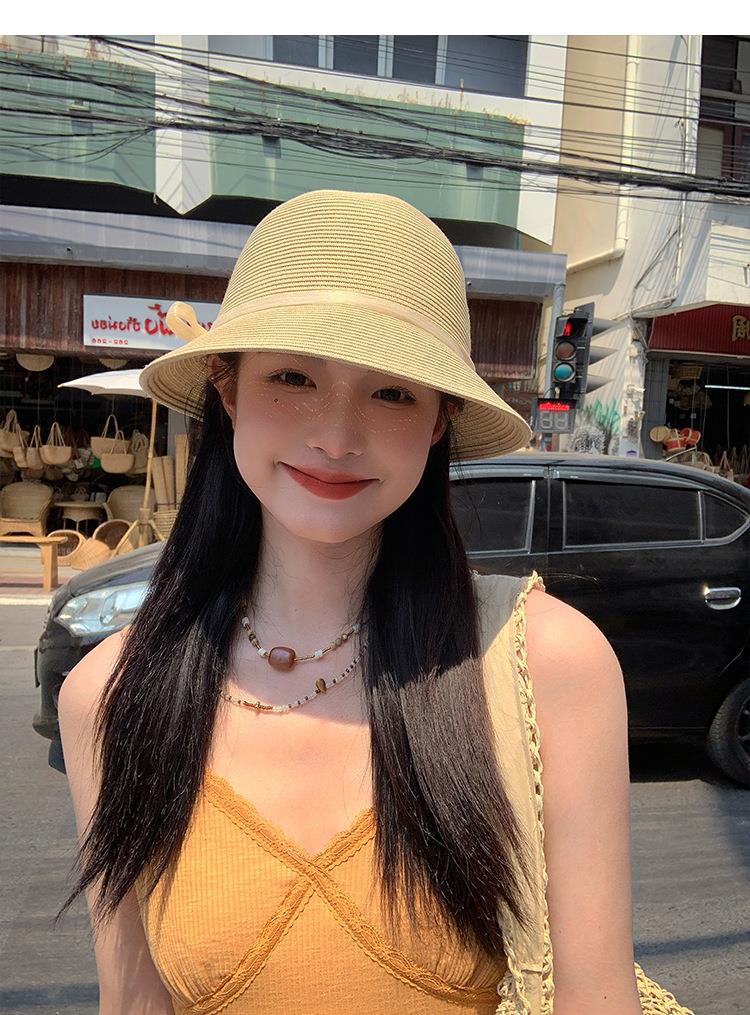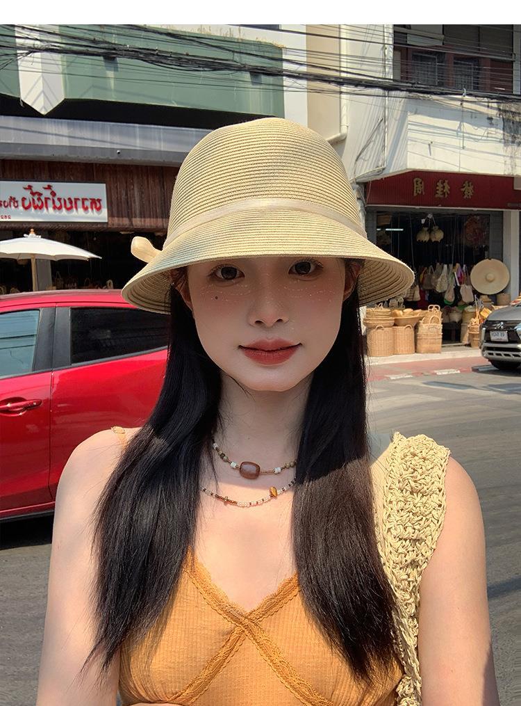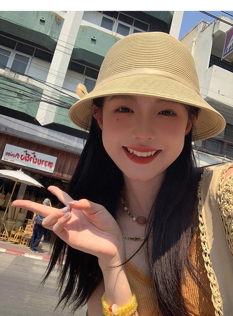 Sombrero de Paja Pequeño con Visera Descubridora de Rostro de Nuevo Estilo 2024 Sombrero de Paja de Estilo Hepburn con Lazo para Mujer para Moda Casual al Aire Libre