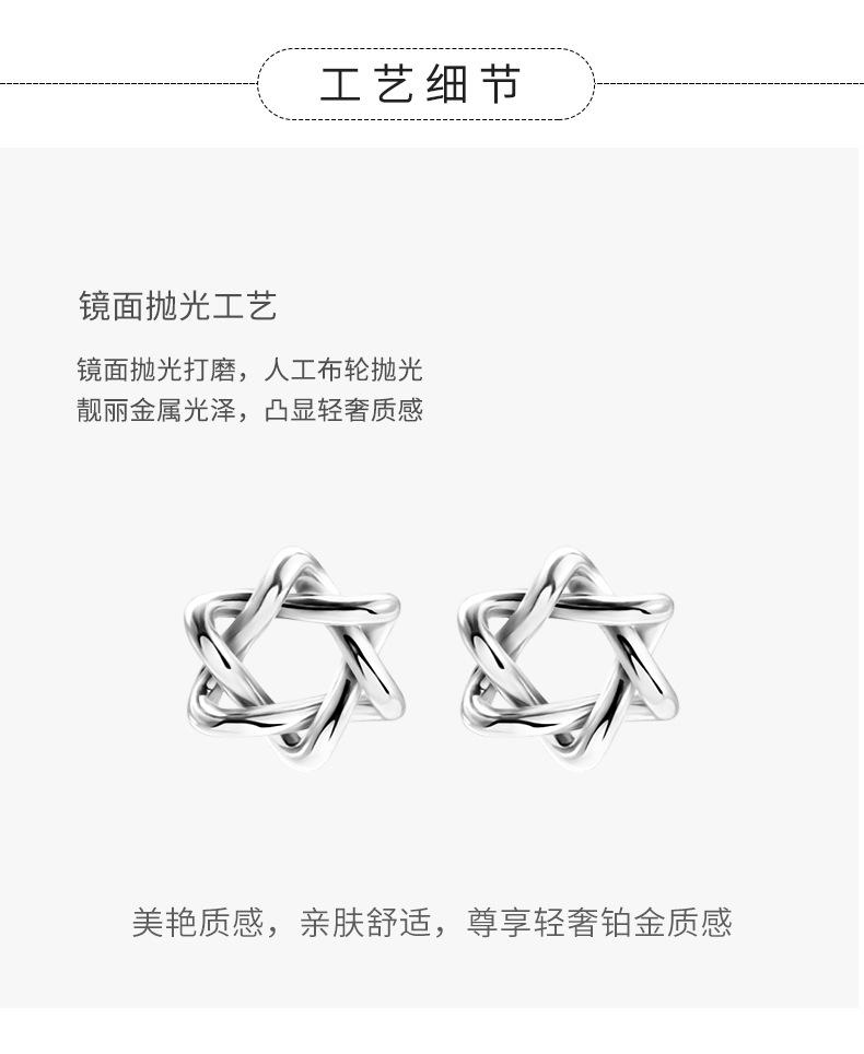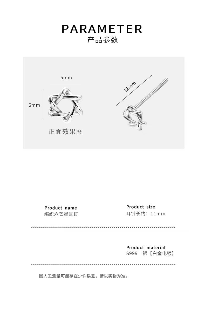 Aretes de Estrella de Seis Puntas Tejidos de Plata Pura S999 para Mujer, Aretes de Hilo de Plata Esterlina Nicho para Estudiante con Perforación de Oreja, Aguja de Plata Estilo Coreano