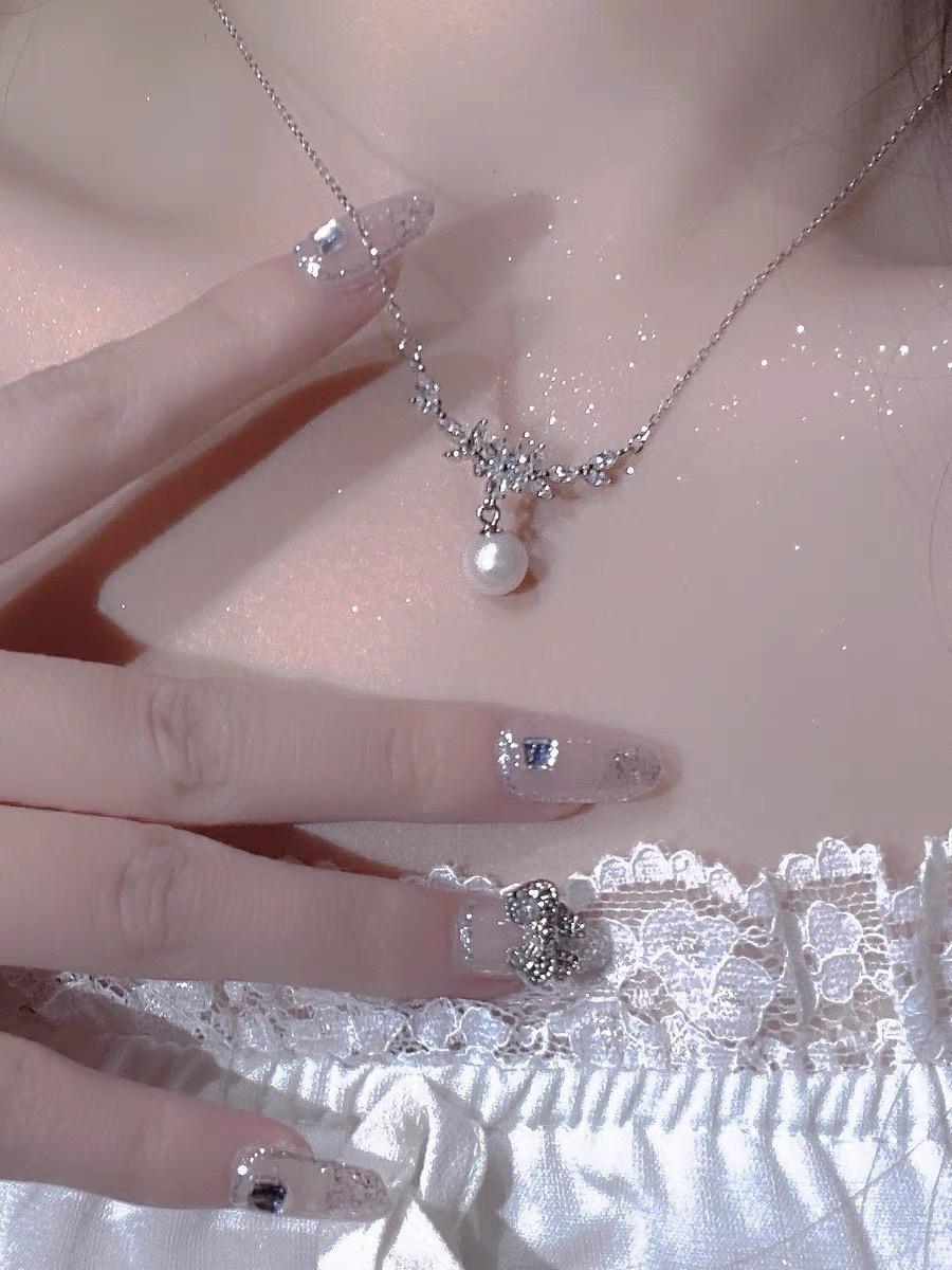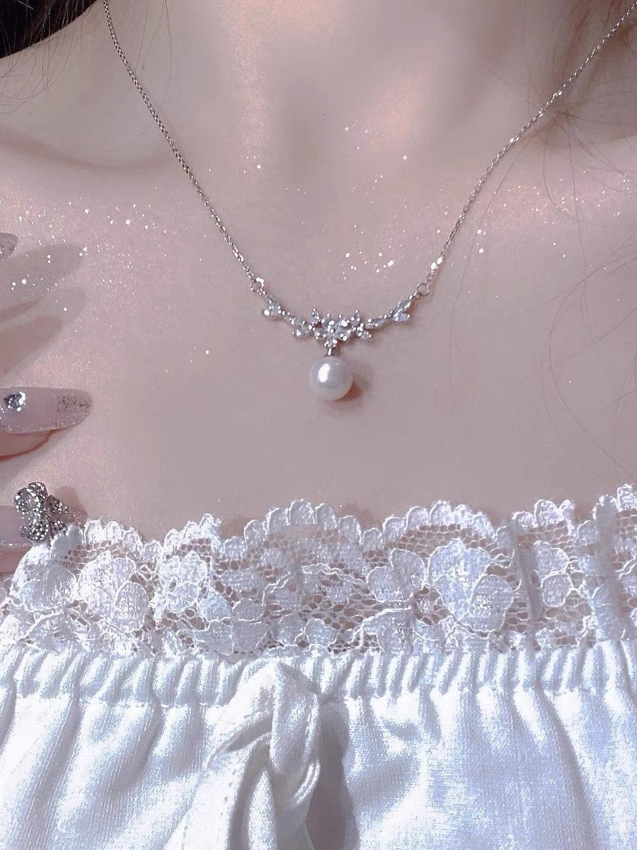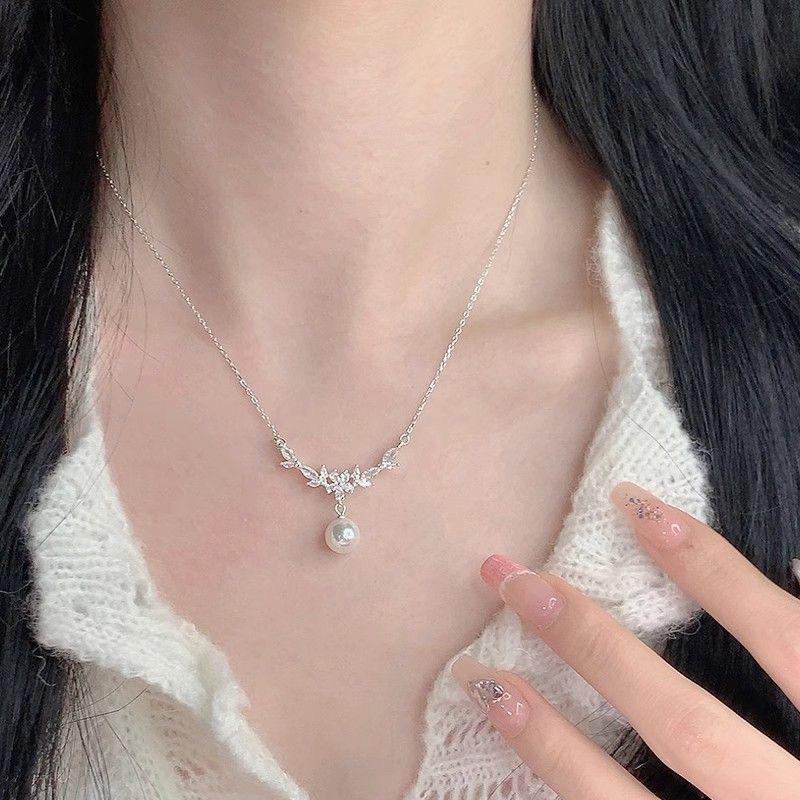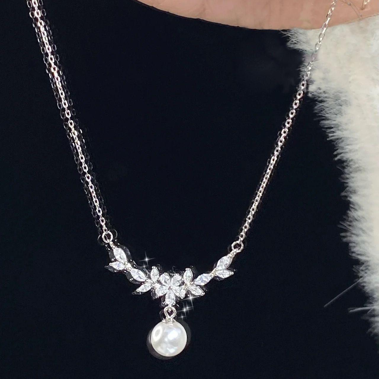 Collar de perlas de cerezo con circonitas superbrillantes para mujer, cadena de clavícula con diseño de nicho de lujo, elegante y combinable, de alta gama.