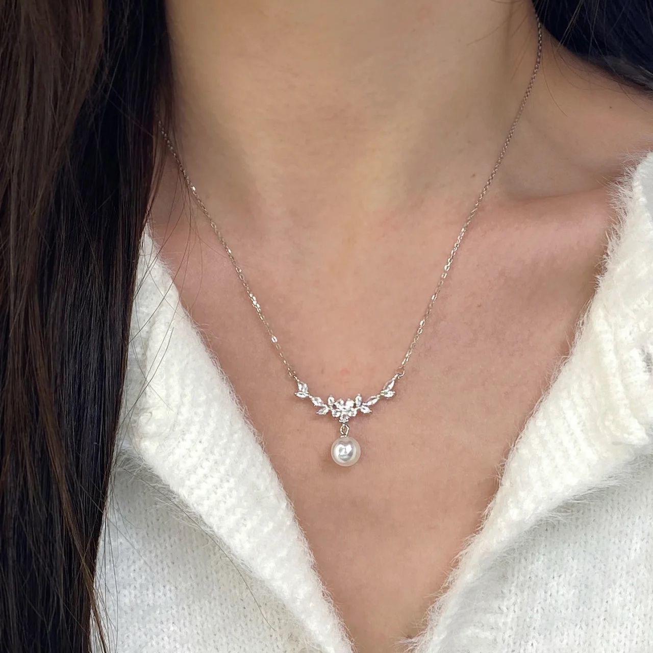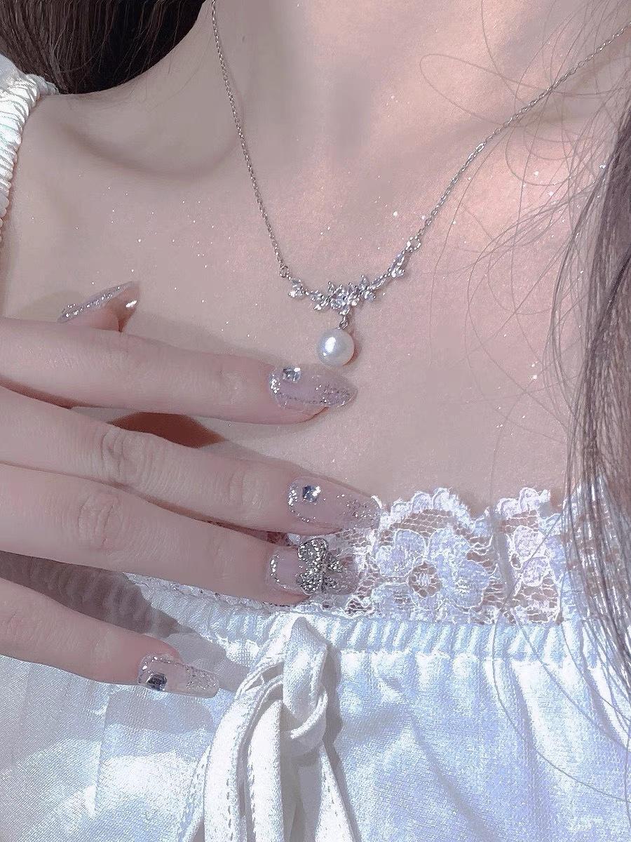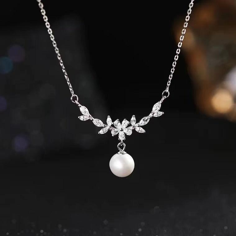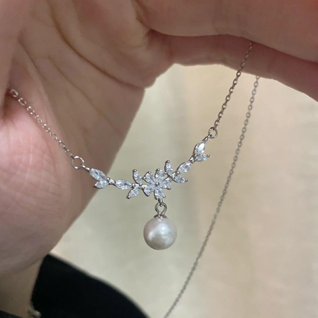 Collar de perlas de cerezo con circonitas superbrillantes para mujer, cadena de clavícula con diseño de nicho de lujo, elegante y combinable, de alta gama.