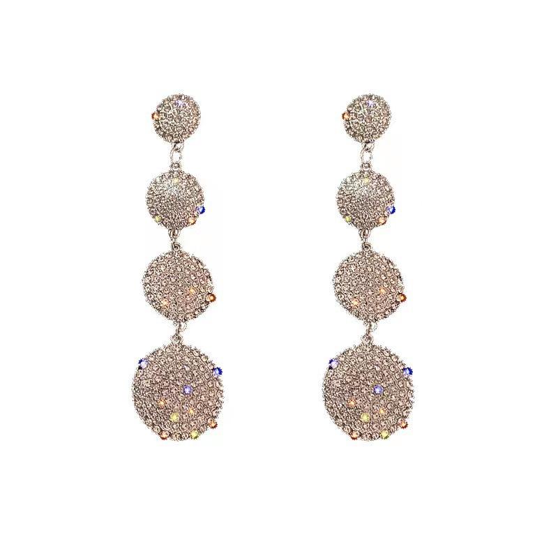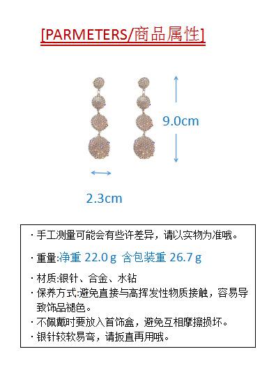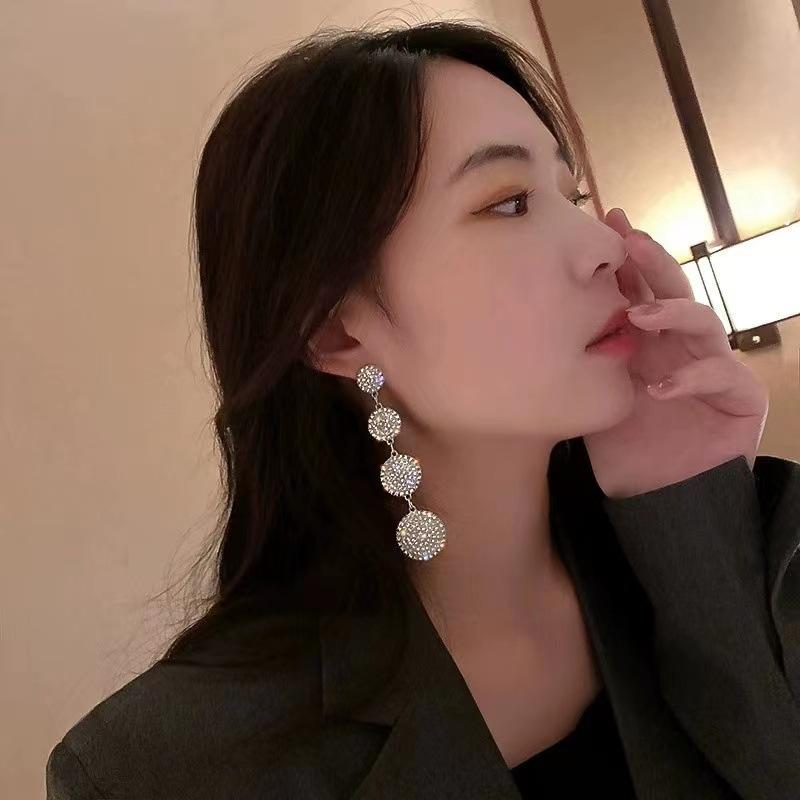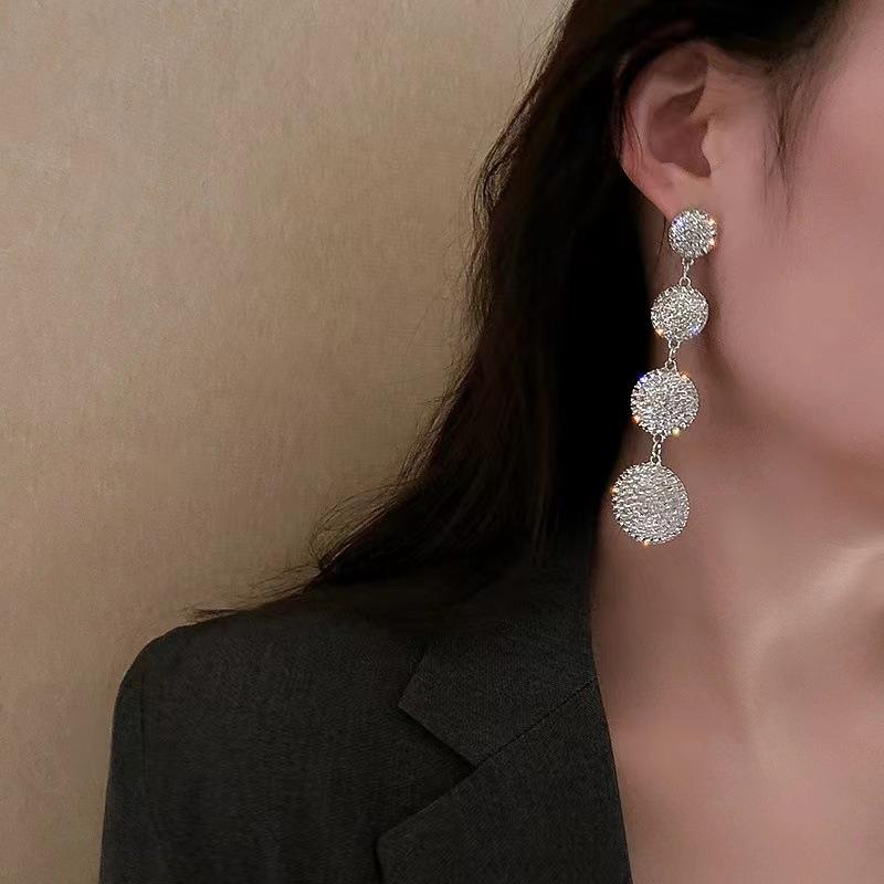 Pendientes largos con forma de círculo geométrico de diamantes y aguja de plata s925, pendientes sencillos y exagerados de estilo europeo y americano, con diseño de moda para mujer.
