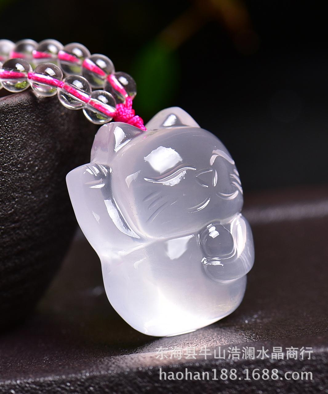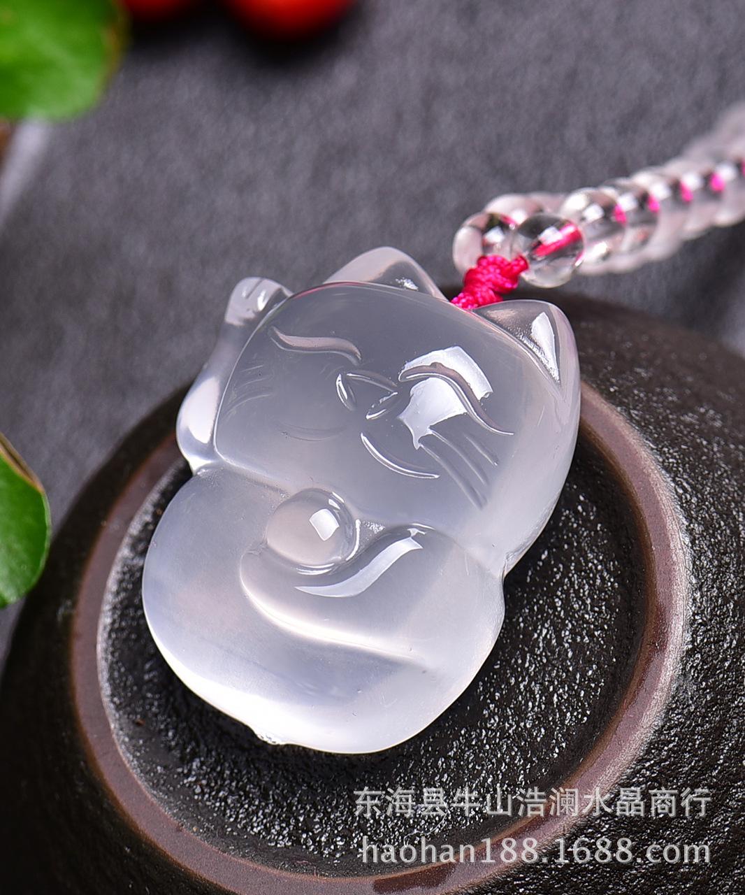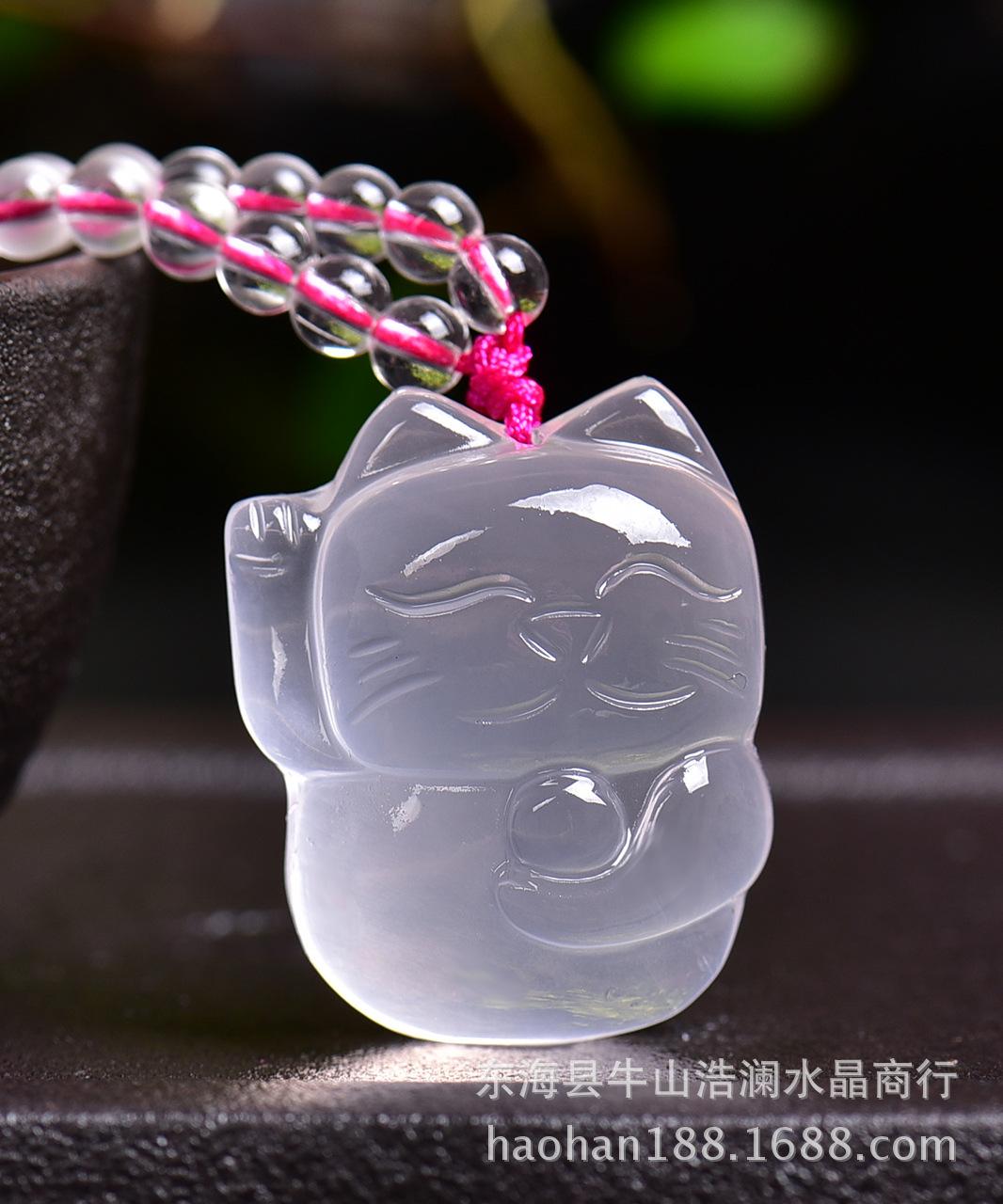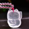 Collar con colgante de gato de la suerte de cristal blanco leche y polvo de hielo de cristal Haolan, cadena para suéter