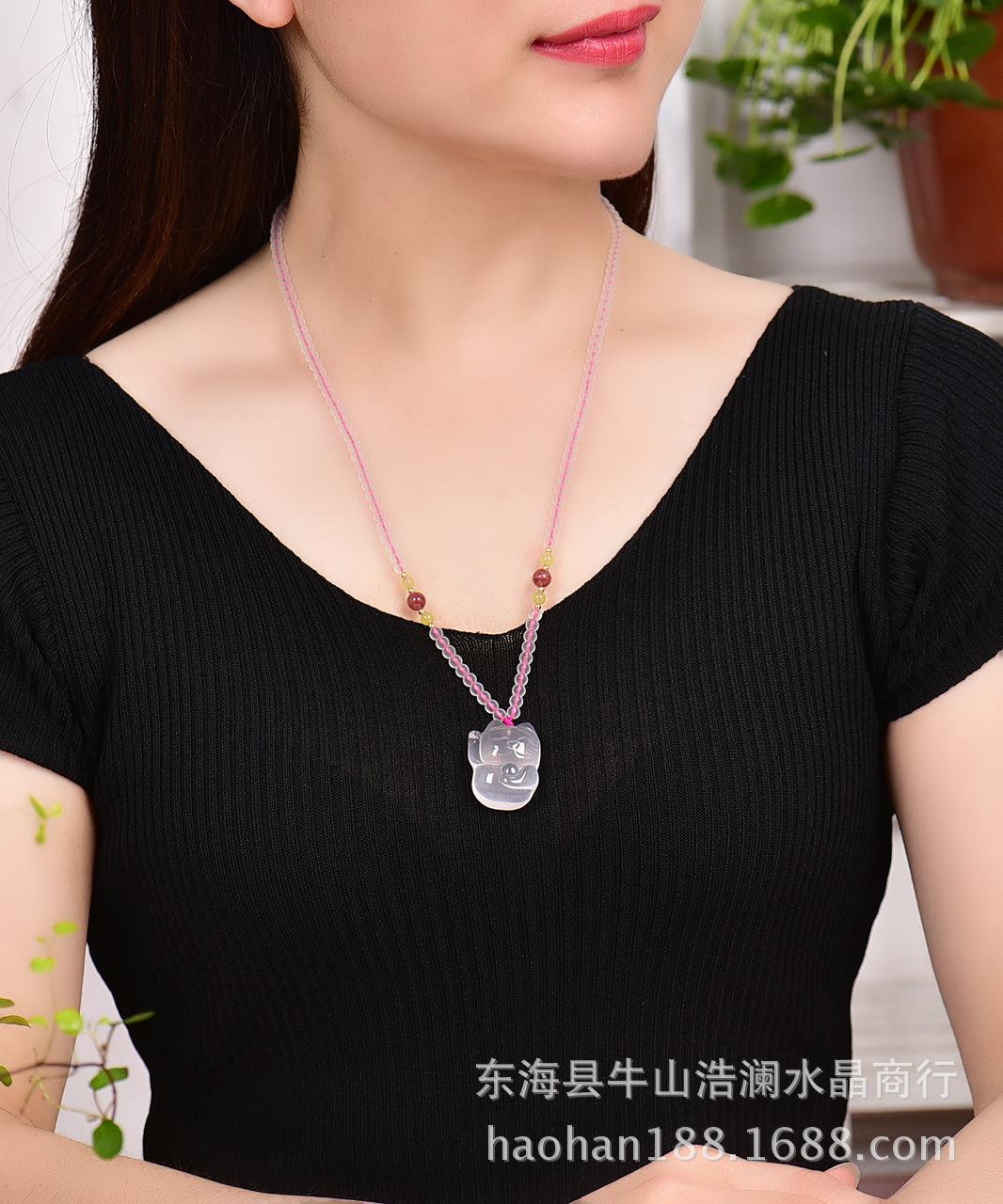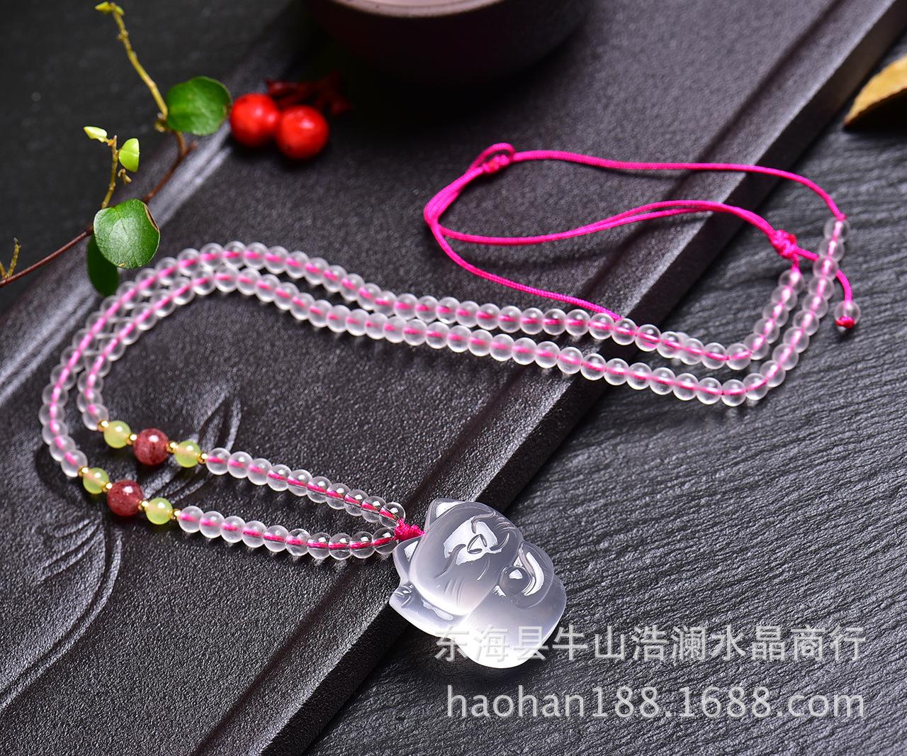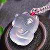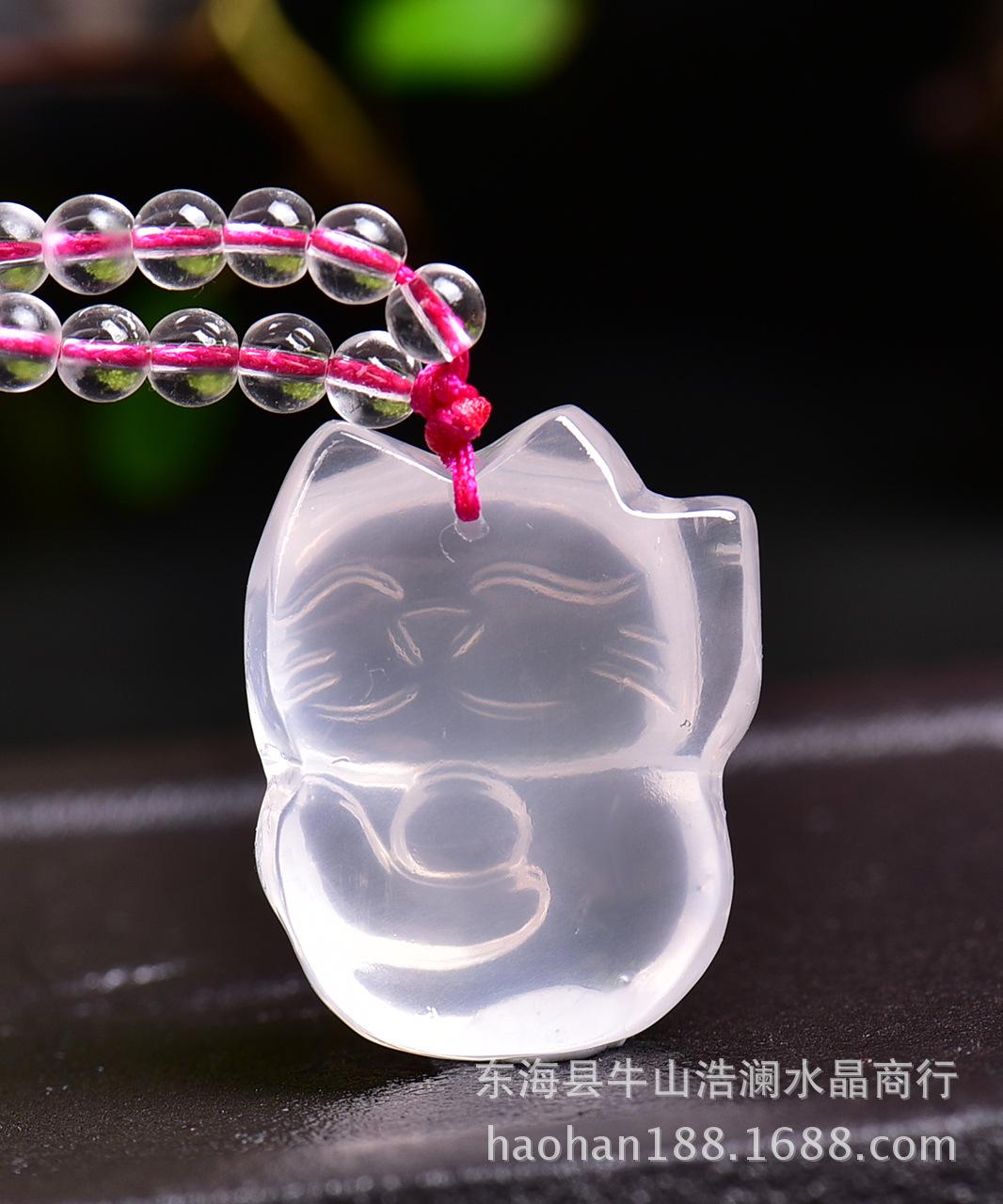 Collar con colgante de gato de la suerte de cristal blanco leche y polvo de hielo de cristal Haolan, cadena para suéter