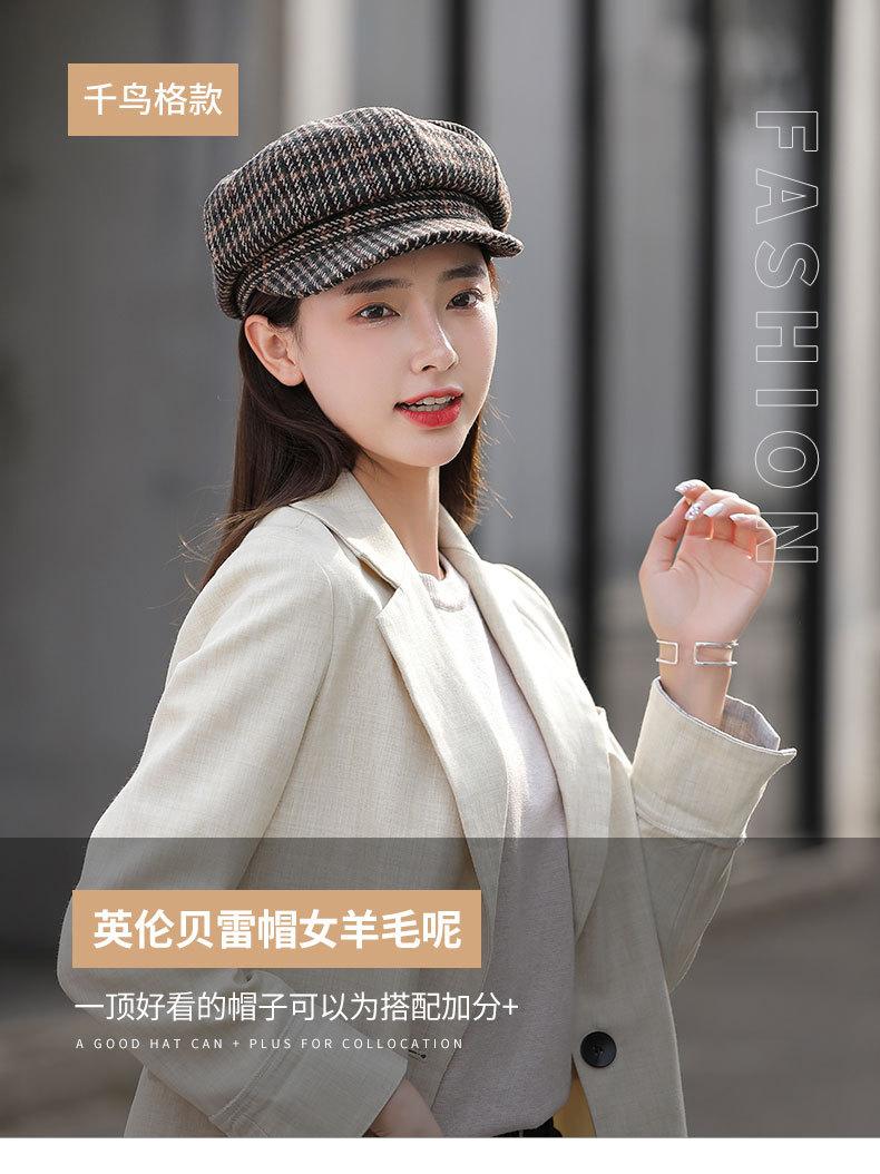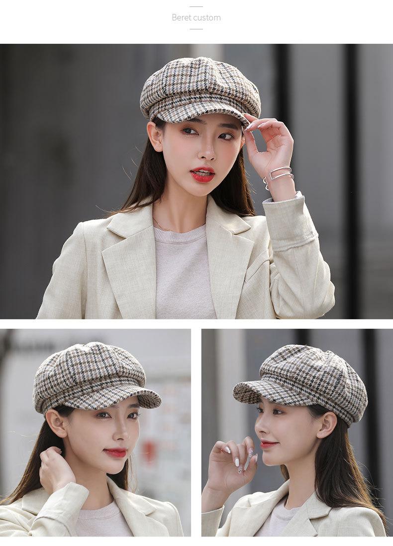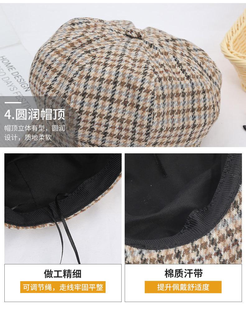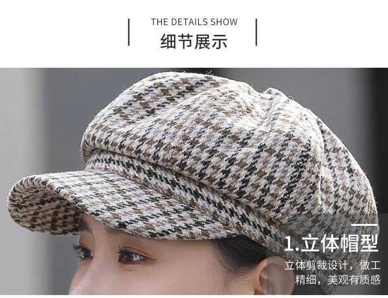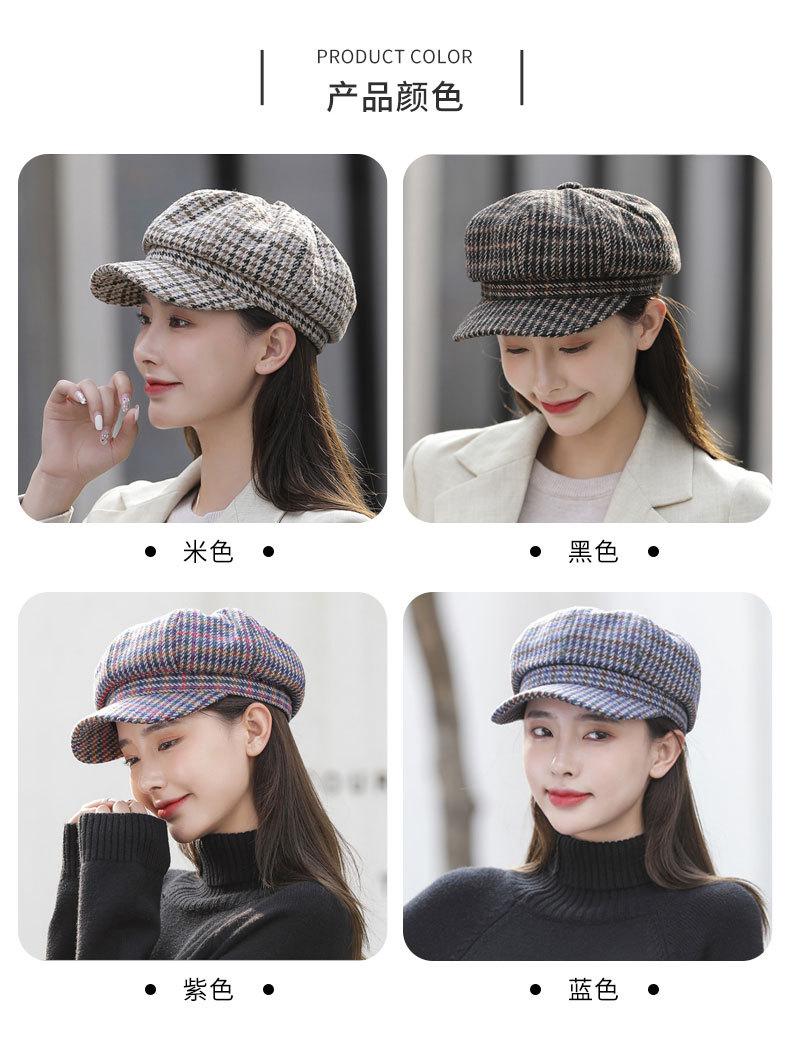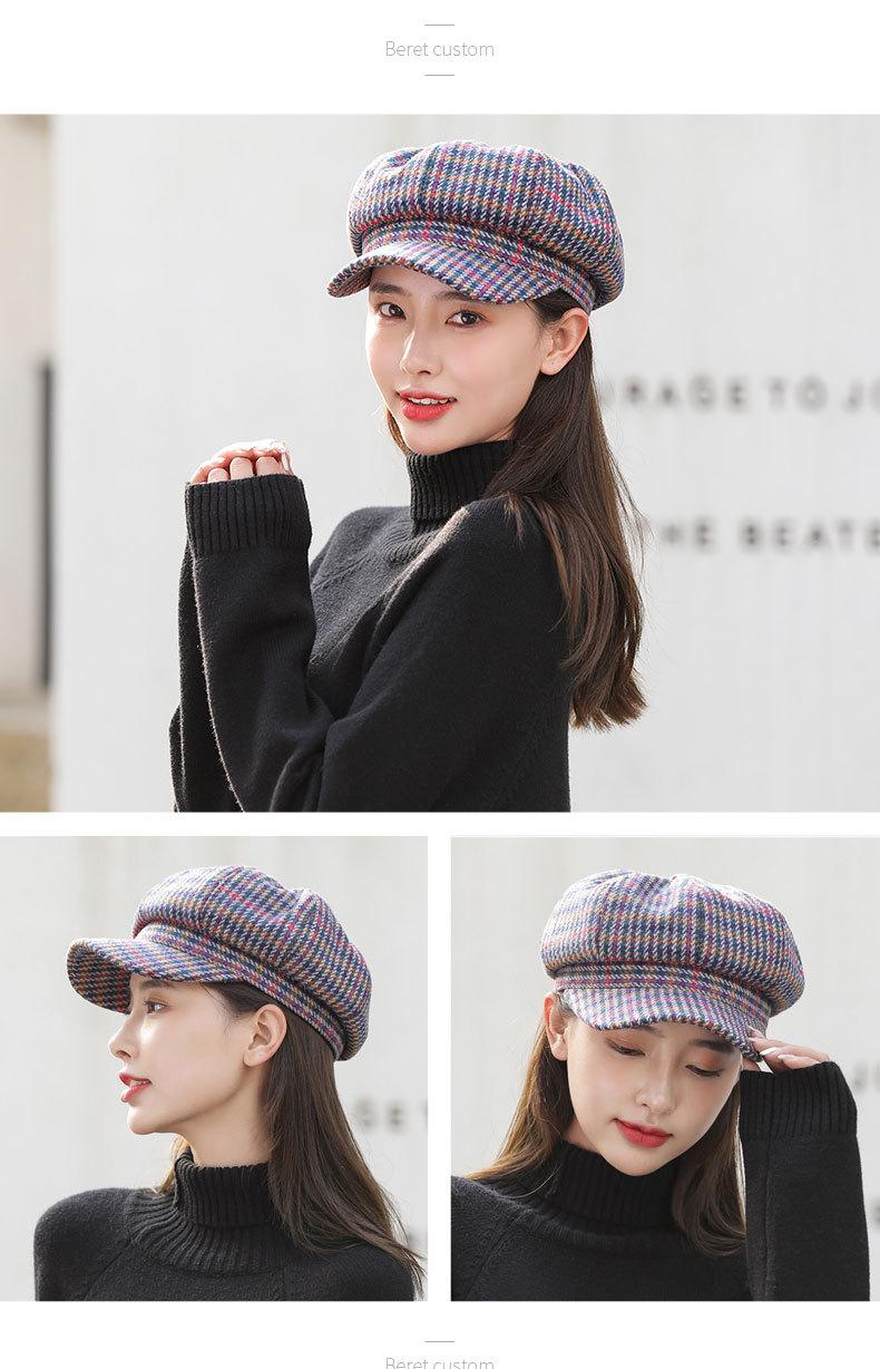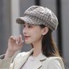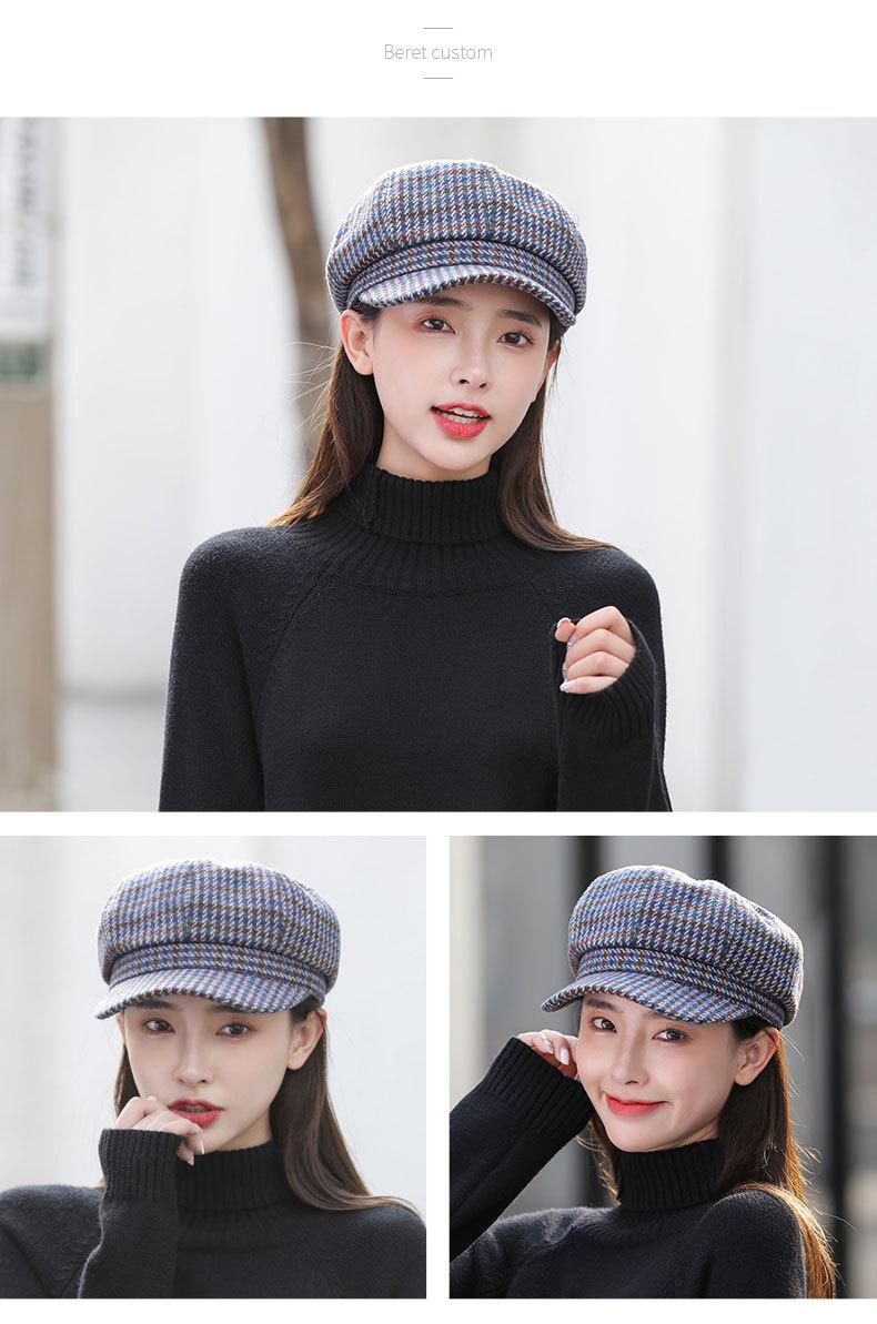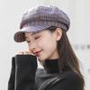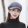 Boina de lana para mujer, estilo coreano, japonés, con estampado de pata de gallo, cálida, estilo cibernético, estilo octogonal, color azul marino británico, para otoño e invierno.