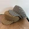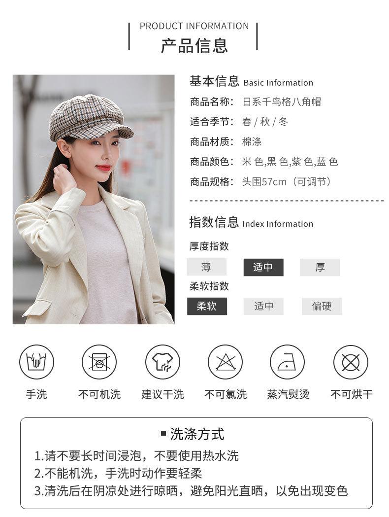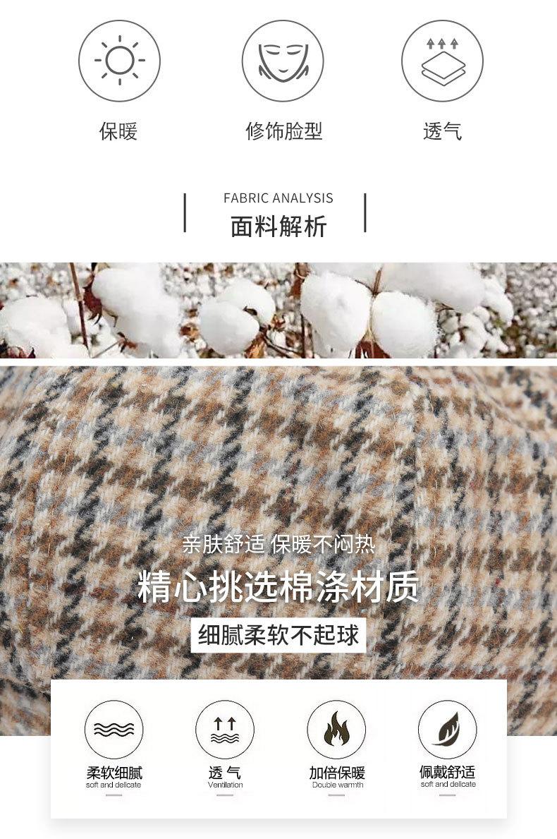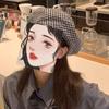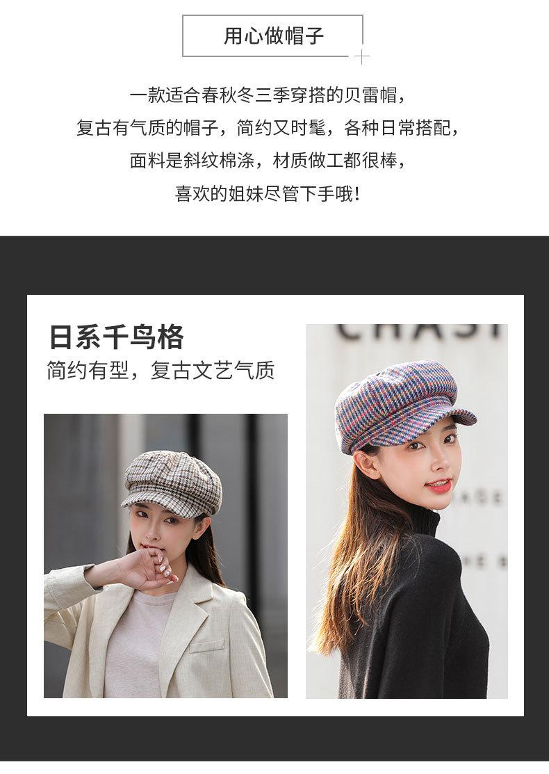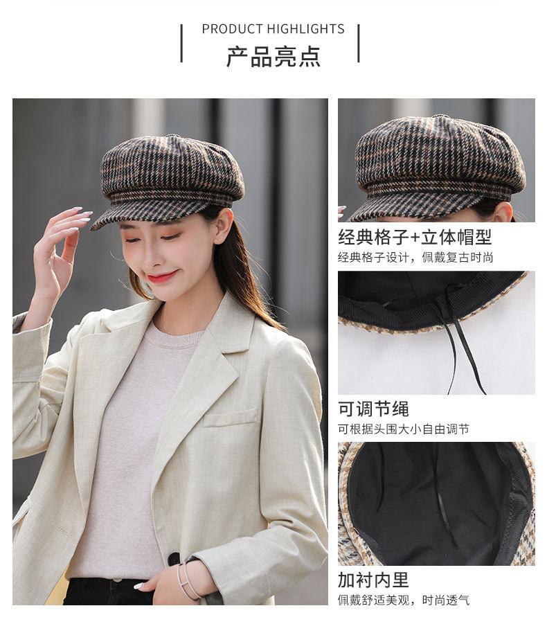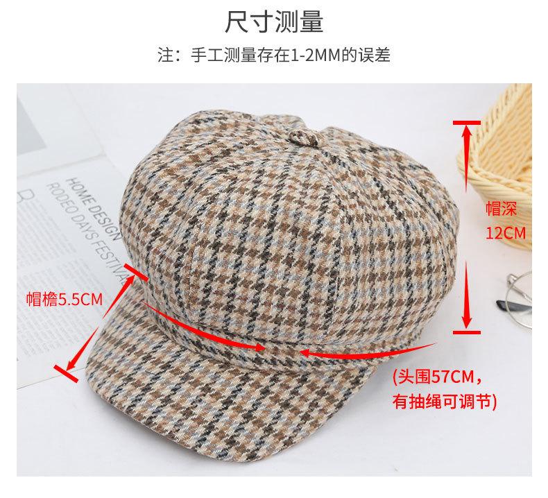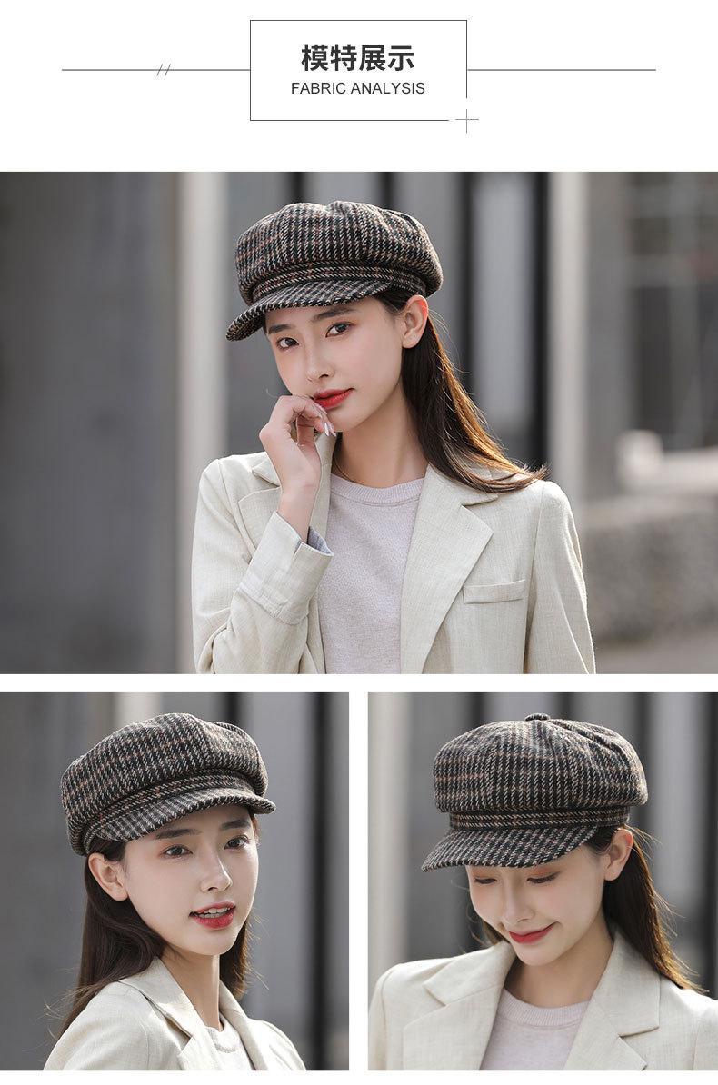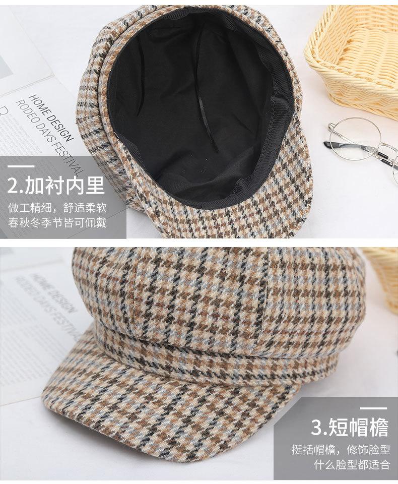 Boina de lana para mujer, estilo coreano, japonés, con estampado de pata de gallo, cálida, estilo cibernético, estilo octogonal, color azul marino británico, para otoño e invierno.
