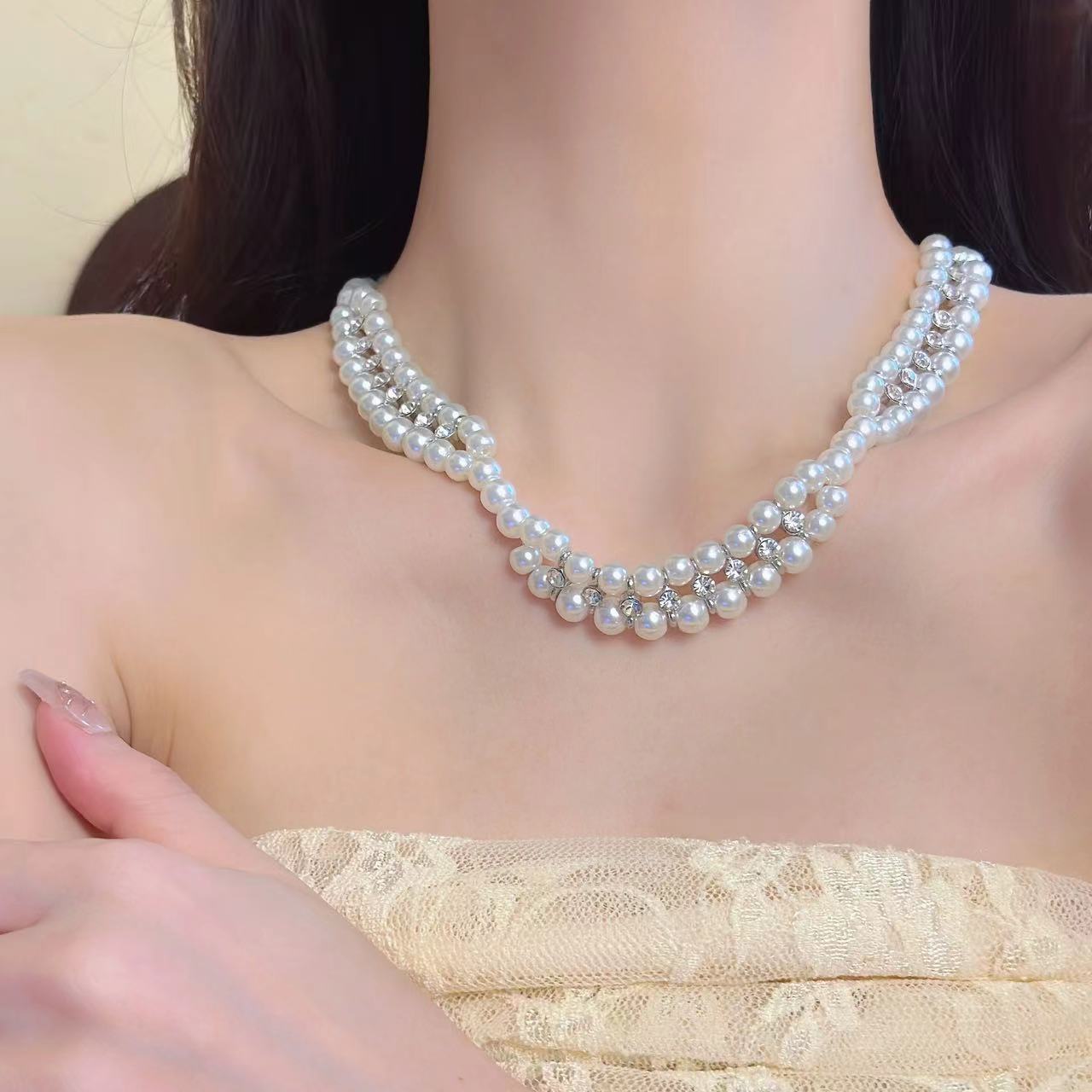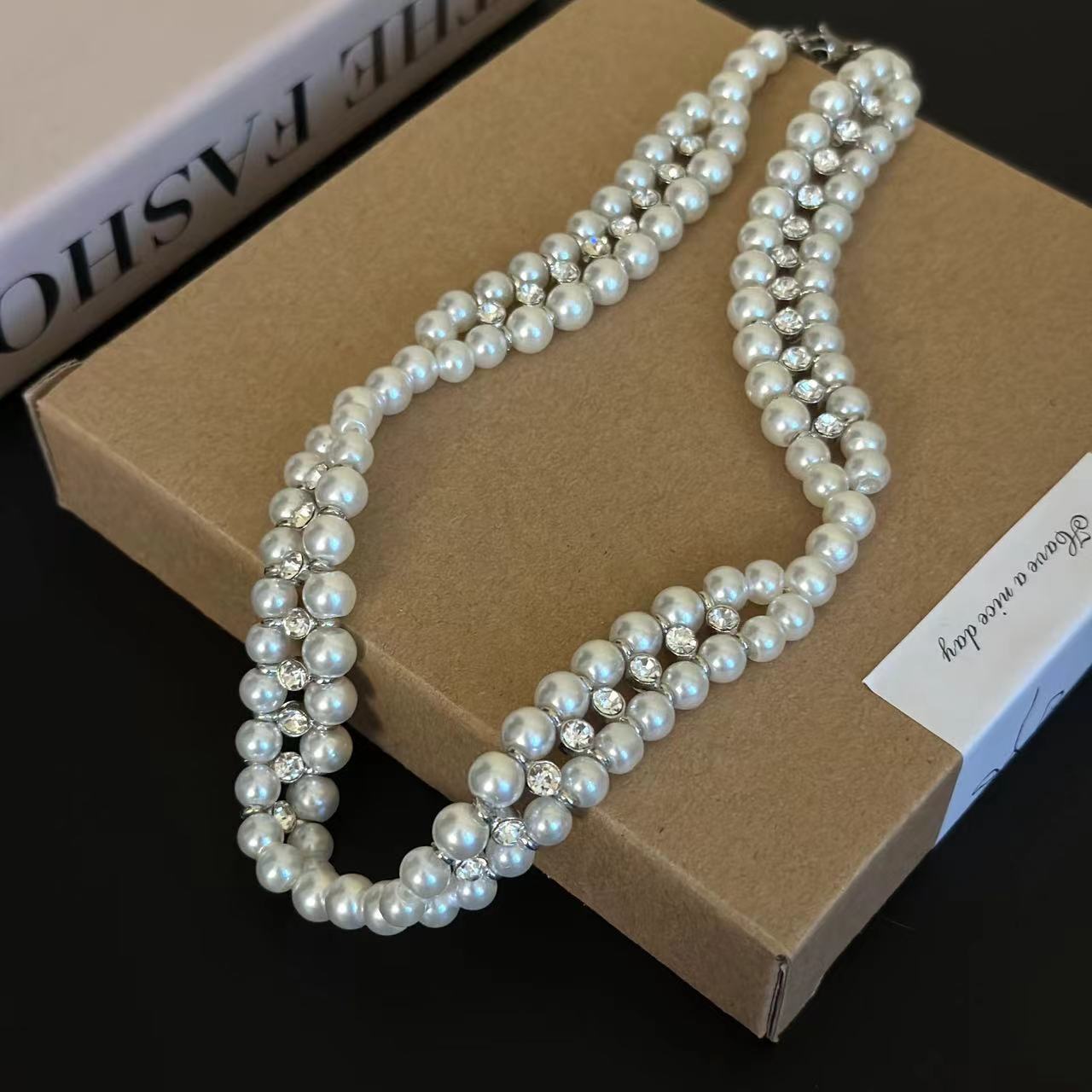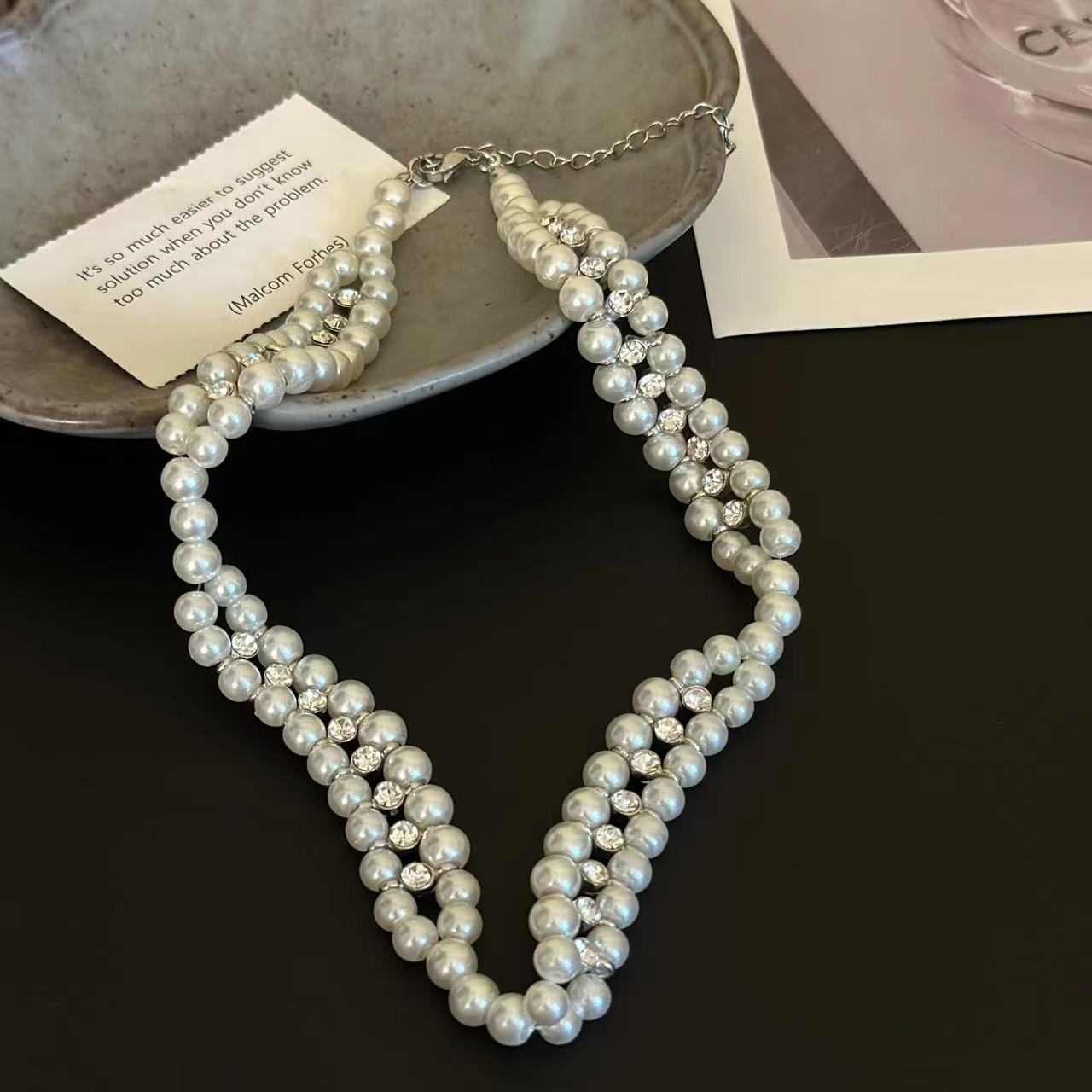 Collar de Perlas Geométrico Simple Francés Multicapa Diseño Nicho Retro Lujo Ligero Elegante Moda Cadena Clavícula Combinable