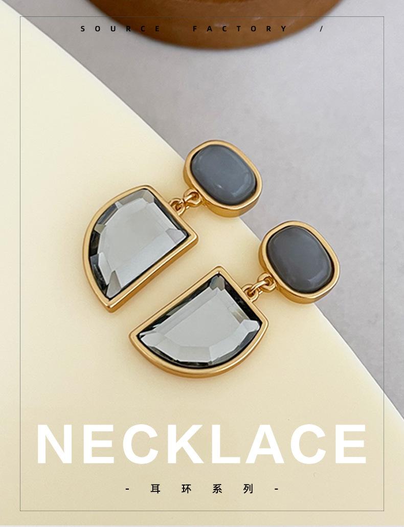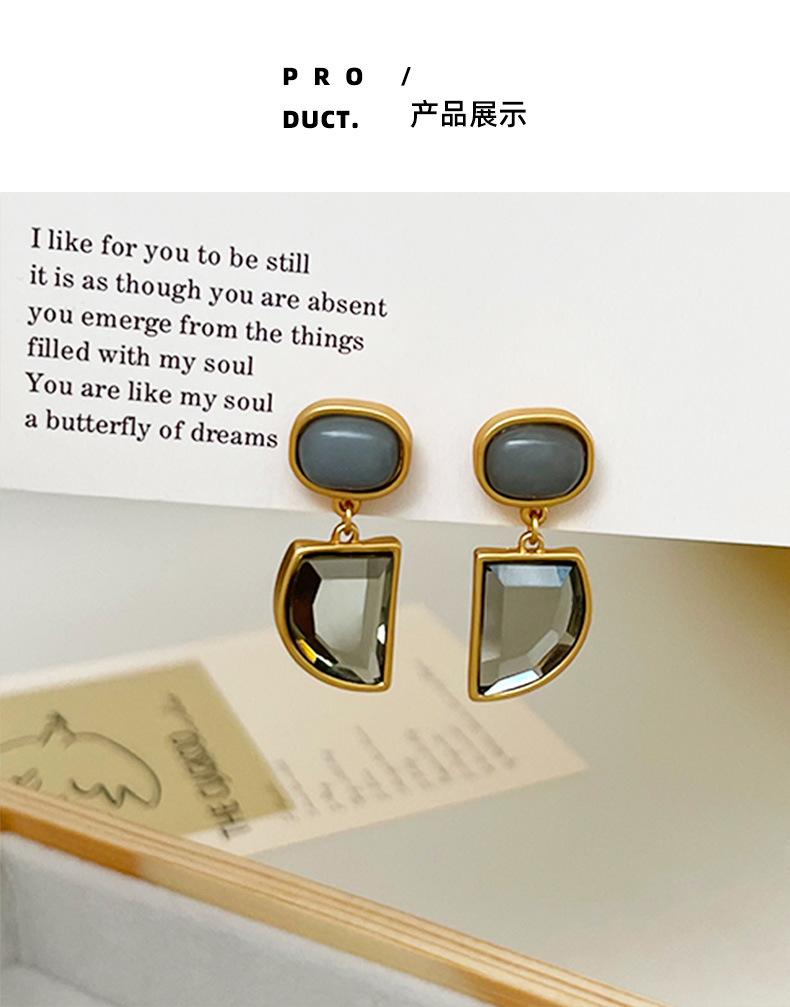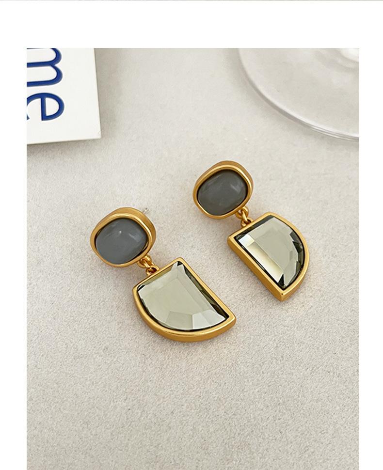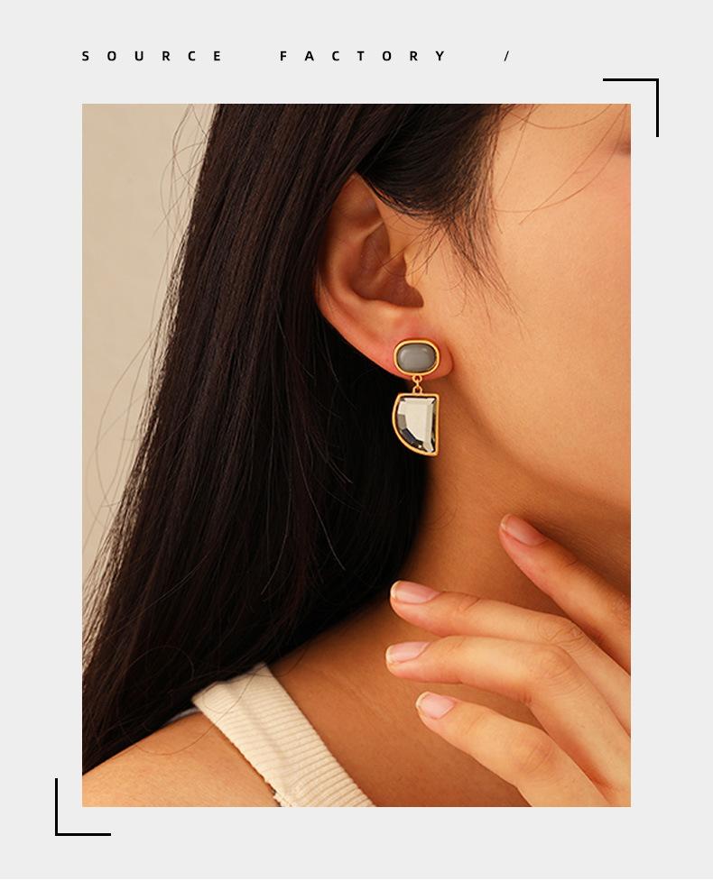 Pendientes geométricos de piedra natural estilo retro francés para mujer, de nicho, de alta calidad, ligeros, de lujo, con personalidad de temperamento de mediados de siglo.