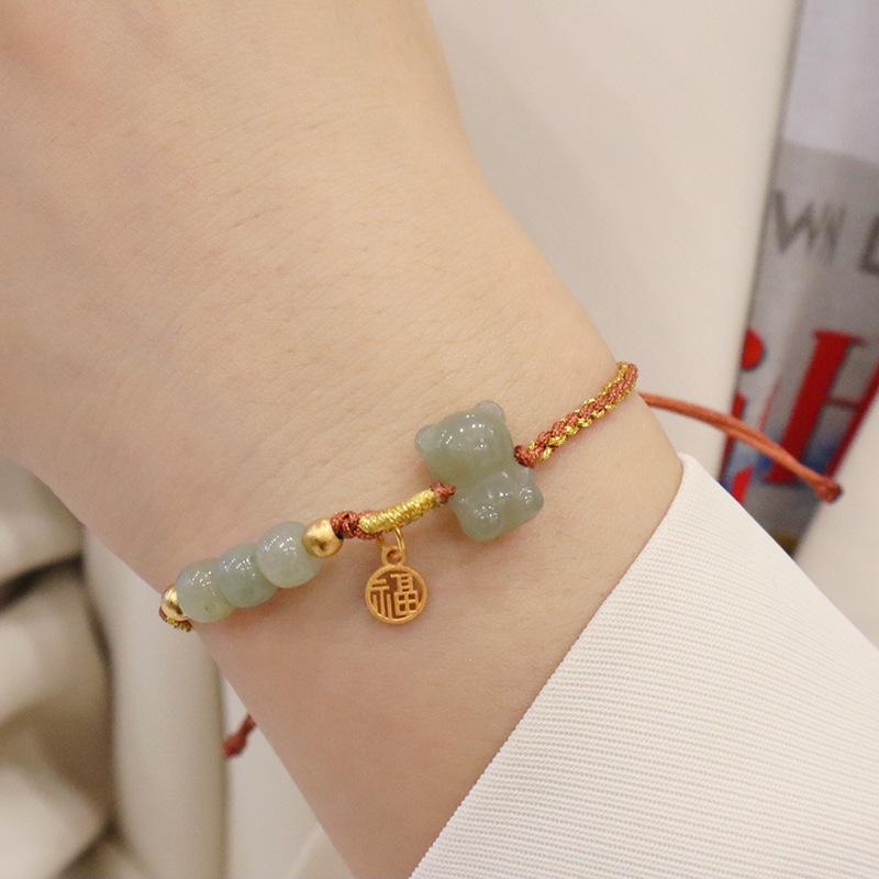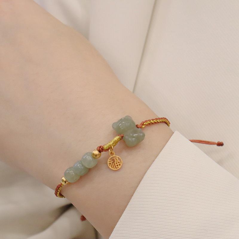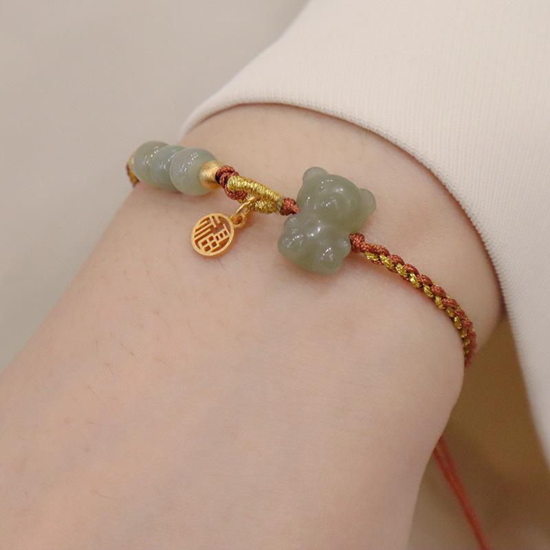 Hand-woven natural Hetian jade bear bracelet