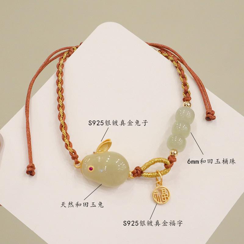 Hand-woven natural Hetian jade silver rabbit bracelet