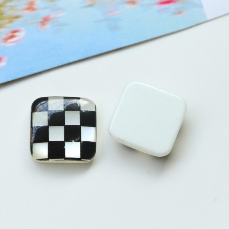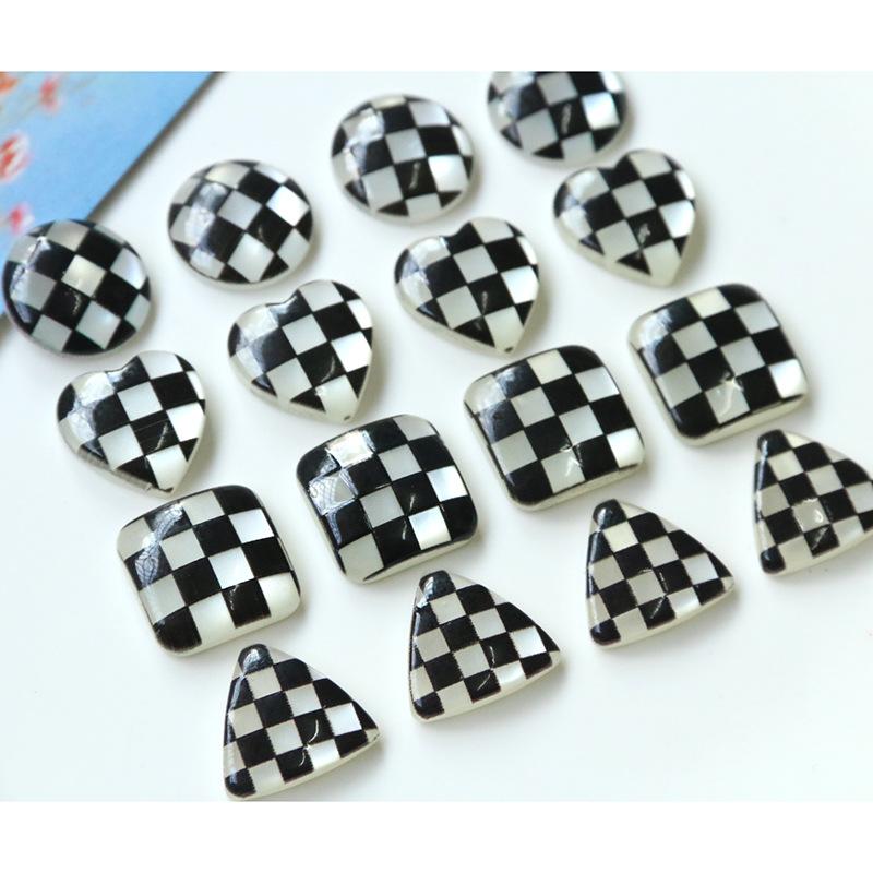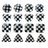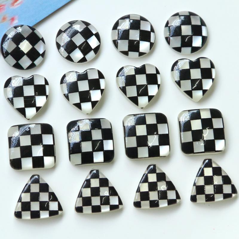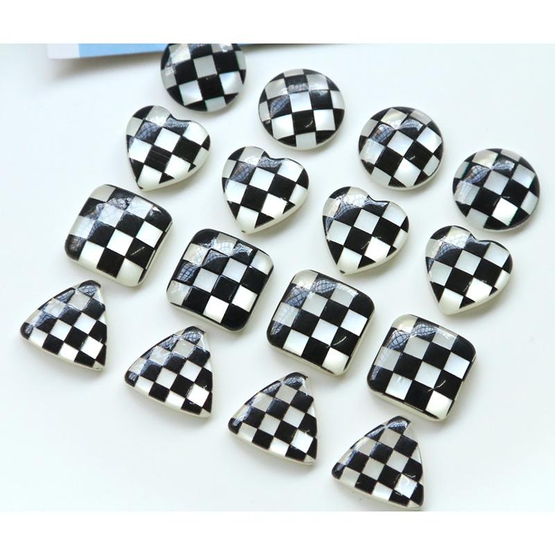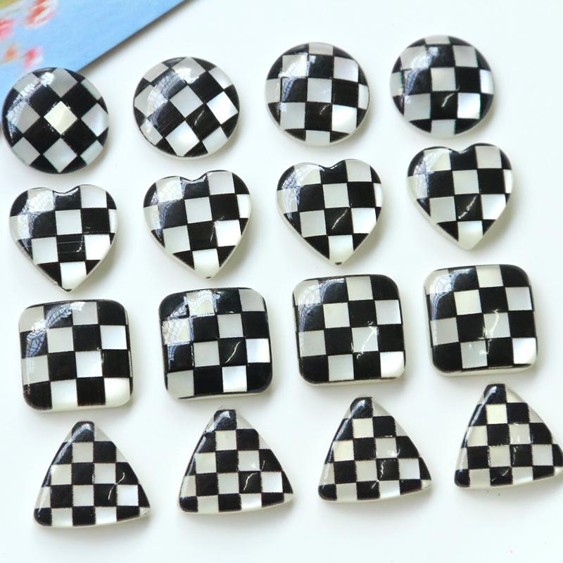 Parche de resina con diseño de tablero de ajedrez en blanco y negro, con diseño geométrico redondo y cuadrado, imitación de ojo de gato, accesorios para pendientes, pinzas para el pelo, funda para teléfono móvil