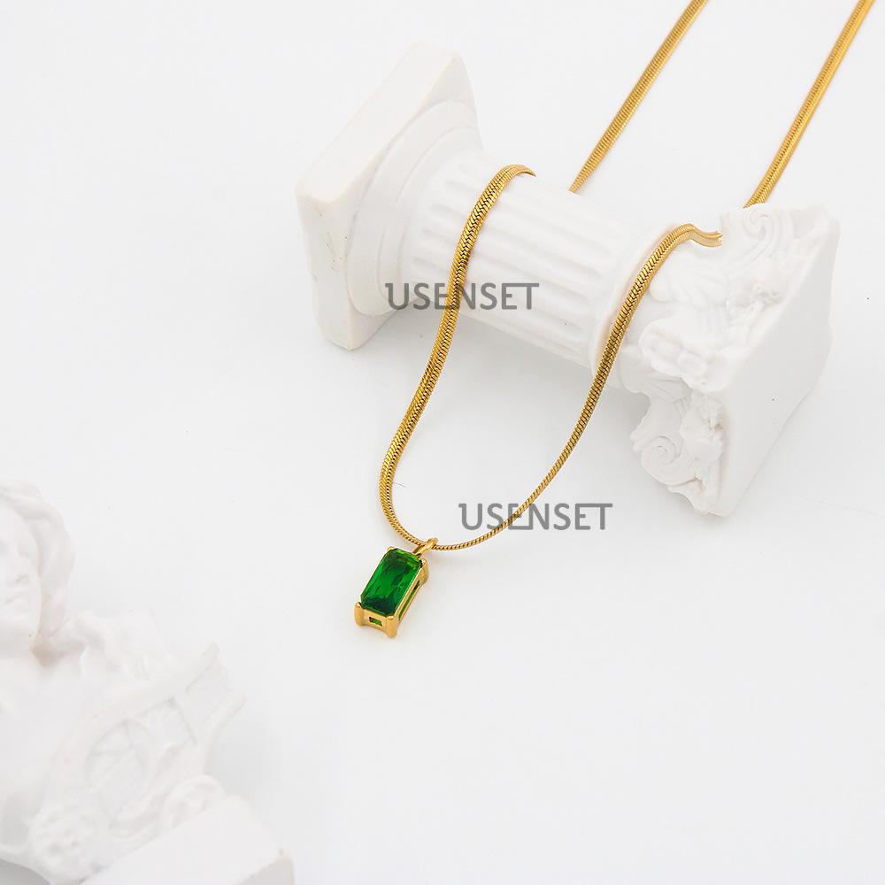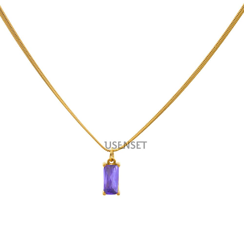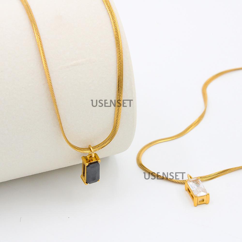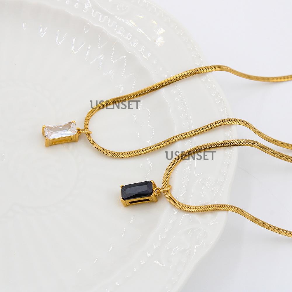 Collar con colgante cuadrado de circón colorido, Cadena de clavícula de acero titanio de color diamante de lujo ligero de nicho, Collar exquisito para mujer