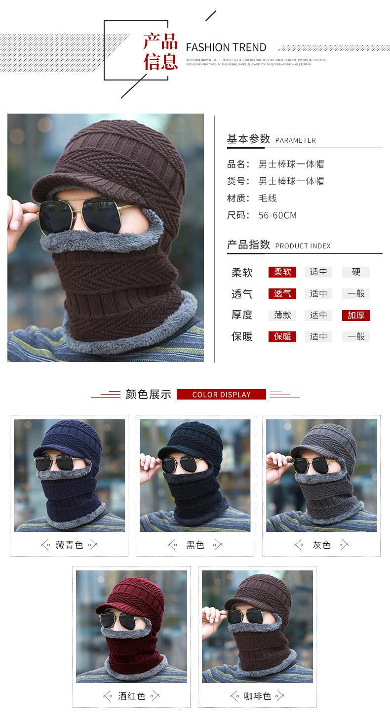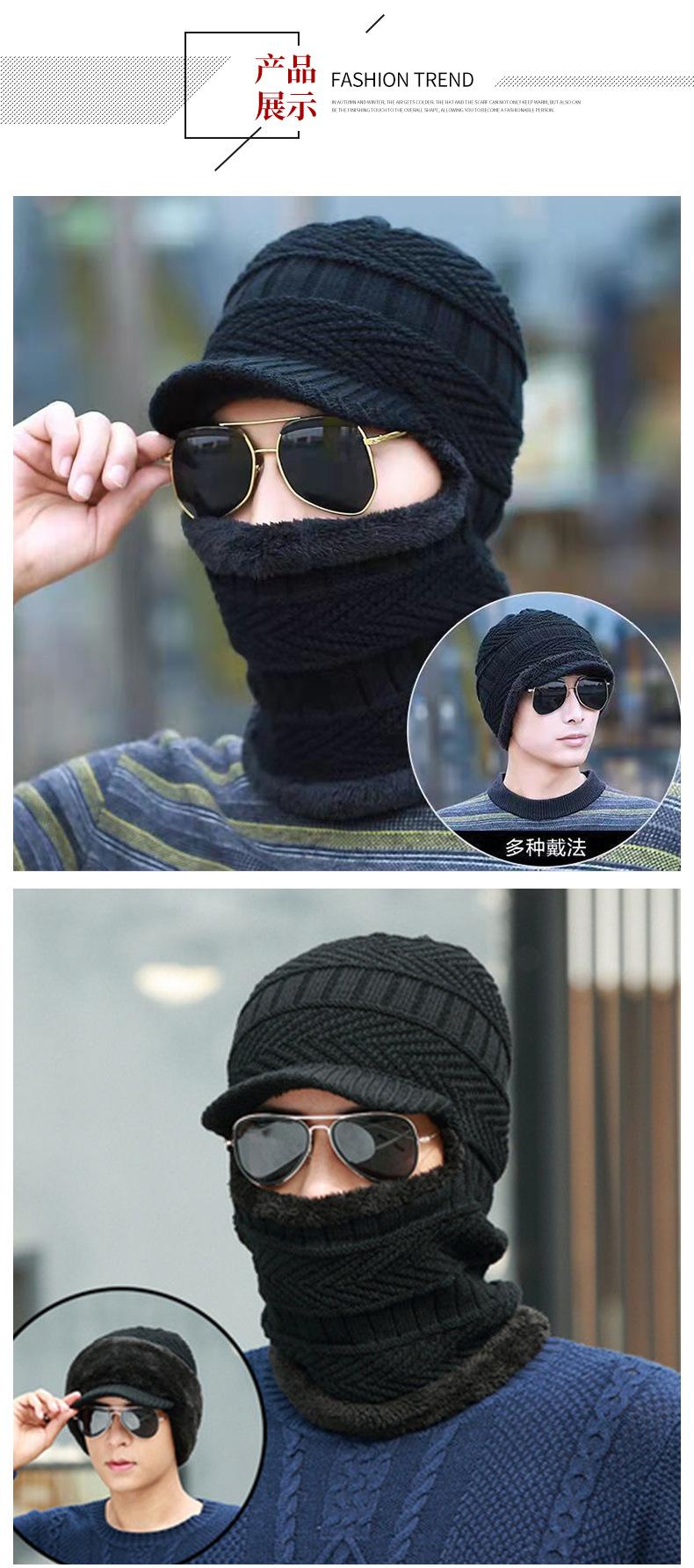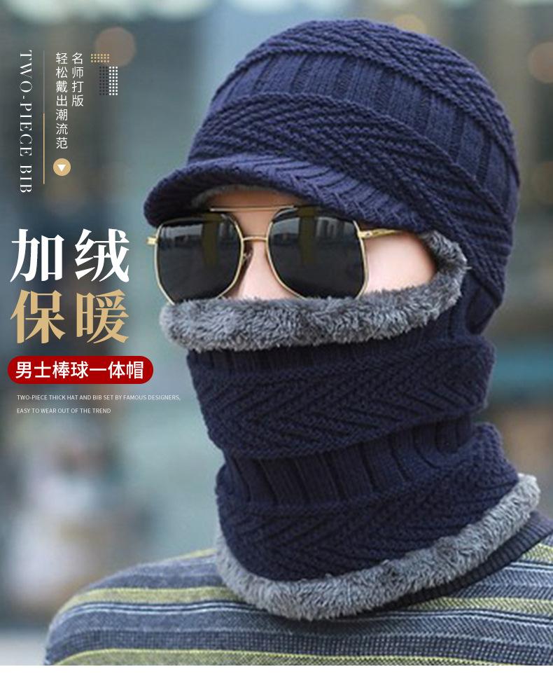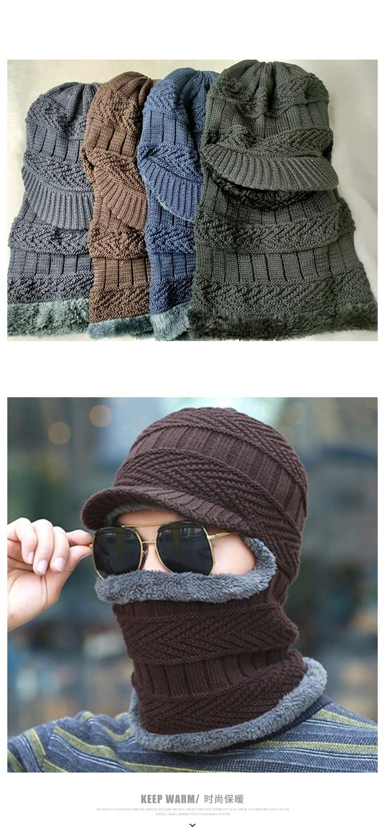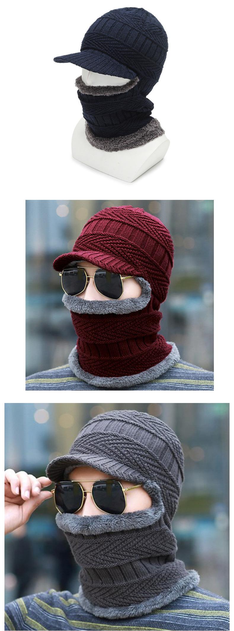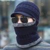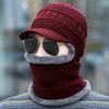 Gorro de punto informal para hombre, además de protección para los oídos y la cara de terciopelo, gorro de una pieza, color sólido, para otoño e invierno, gorro de lana fría para exteriores, venta al por mayor