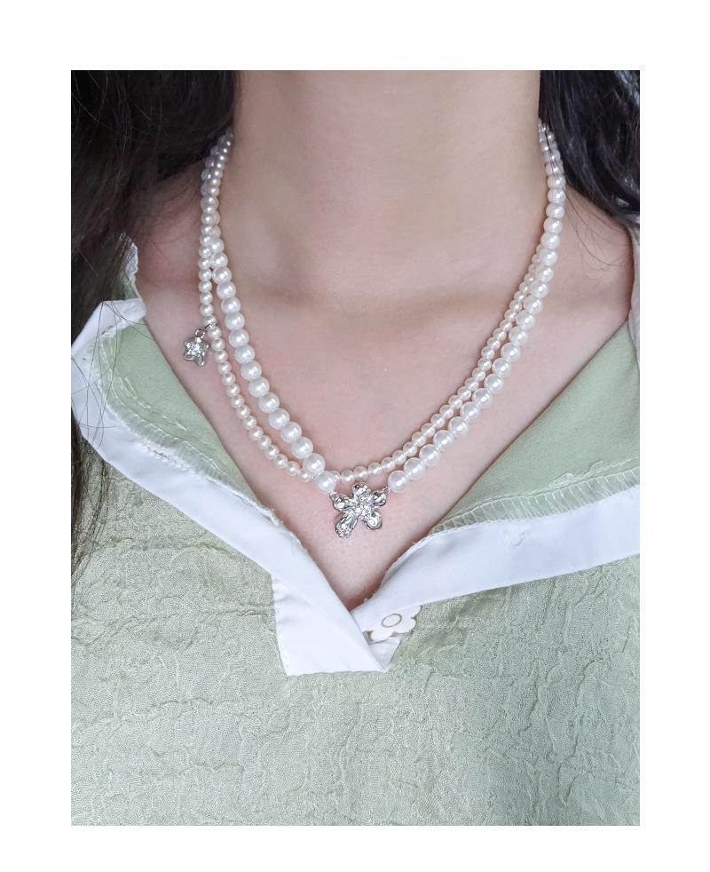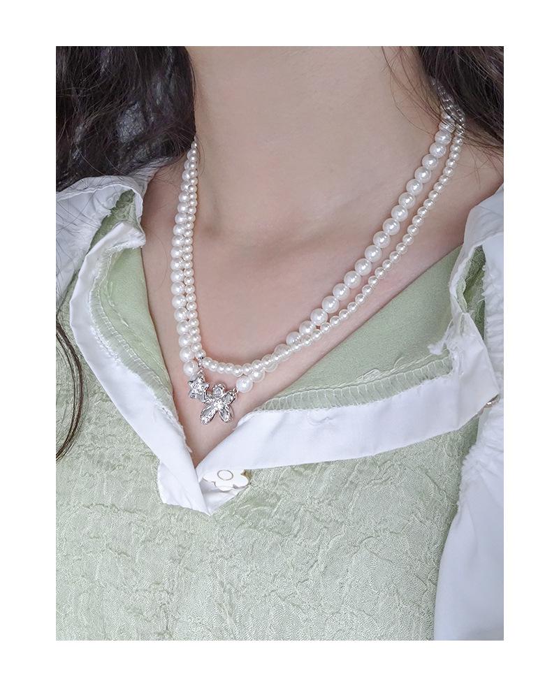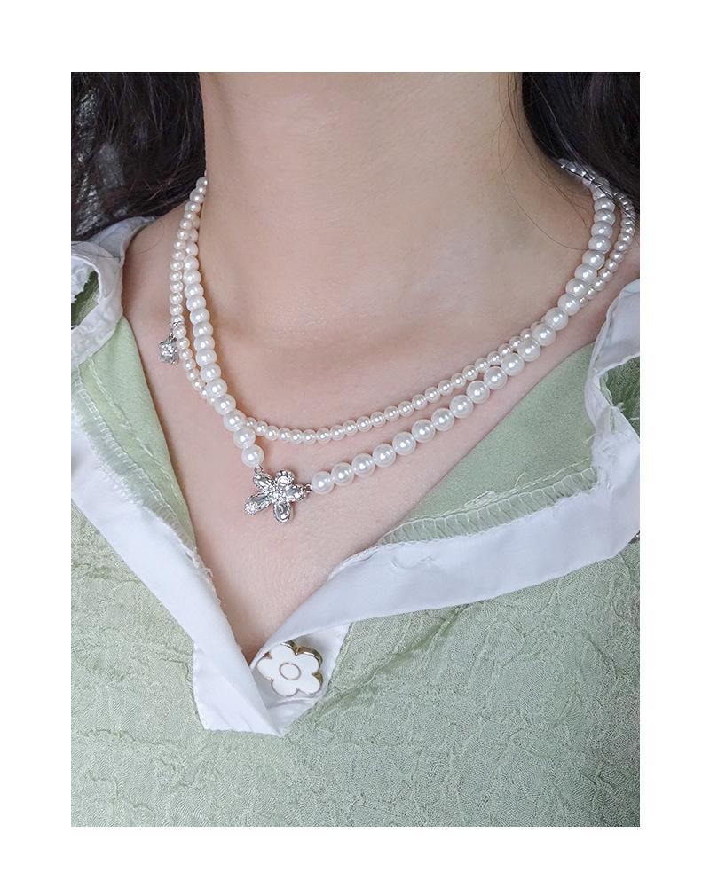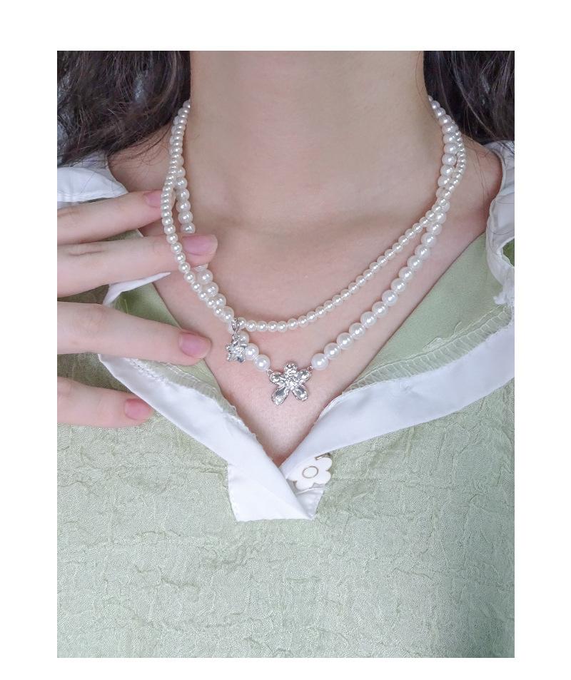 Collar de perlas de doble capa de pétalos versátiles de diseño lujoso y ligero de nicho INS estilo coreano 510 con textura de plata esterlina S925 para mujer