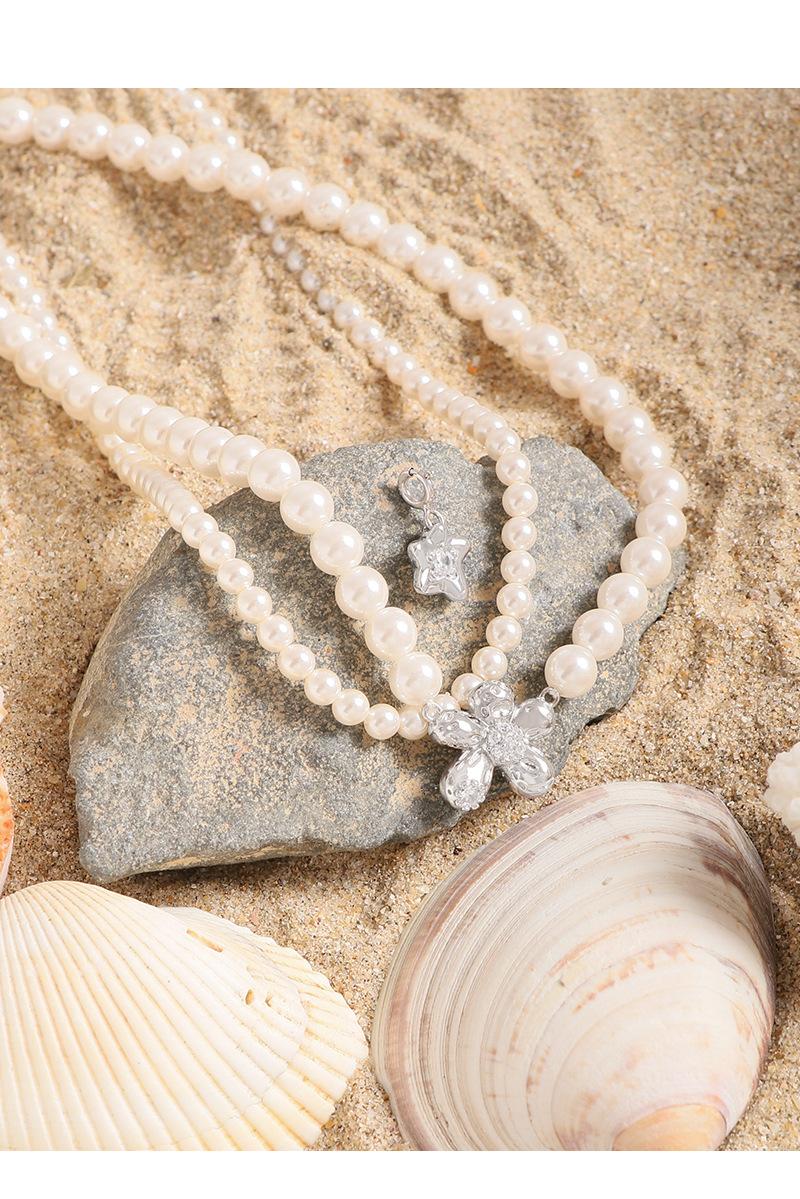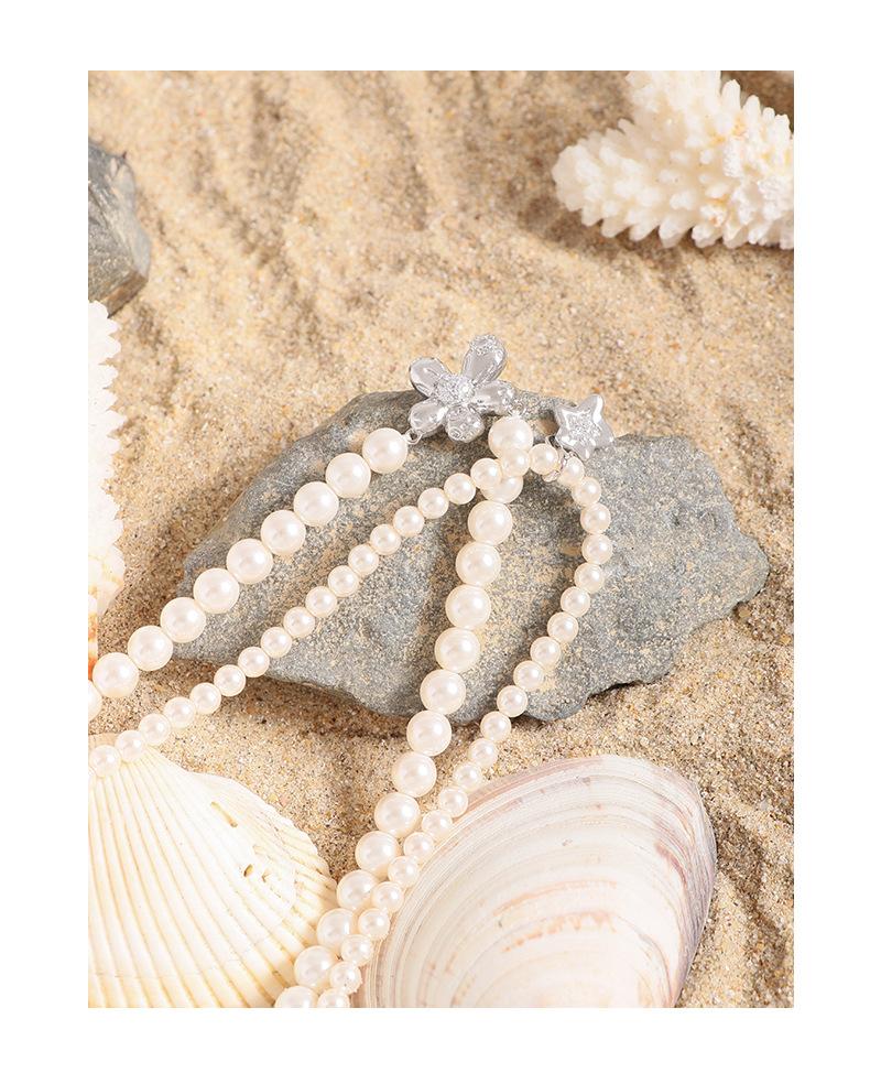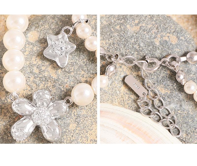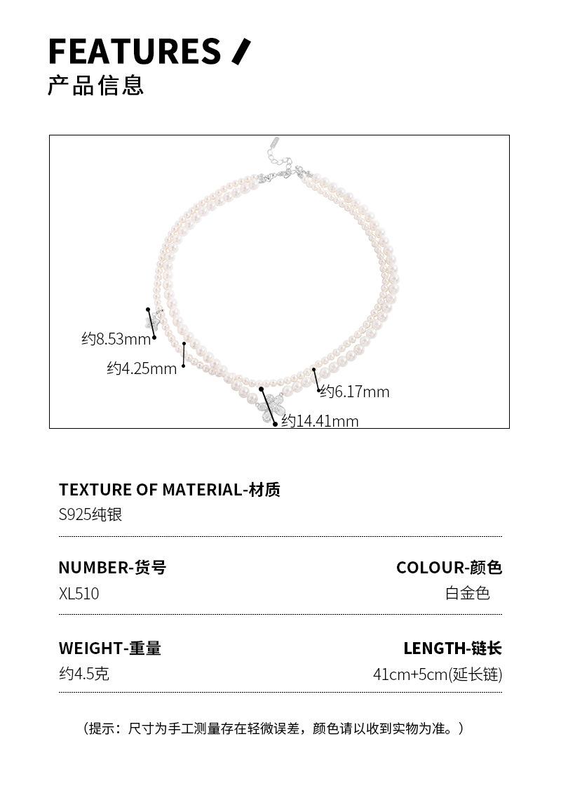 Collar de perlas de doble capa de pétalos versátiles de diseño lujoso y ligero de nicho INS estilo coreano 510 con textura de plata esterlina S925 para mujer