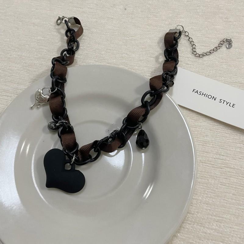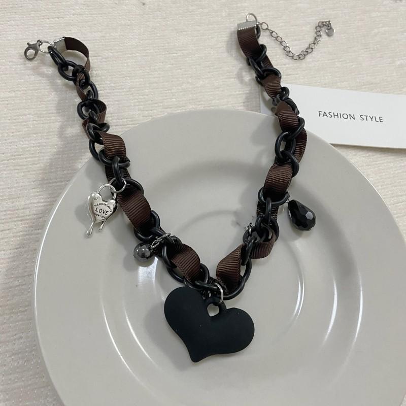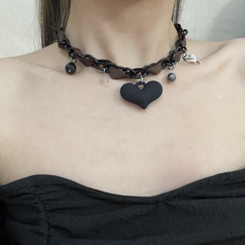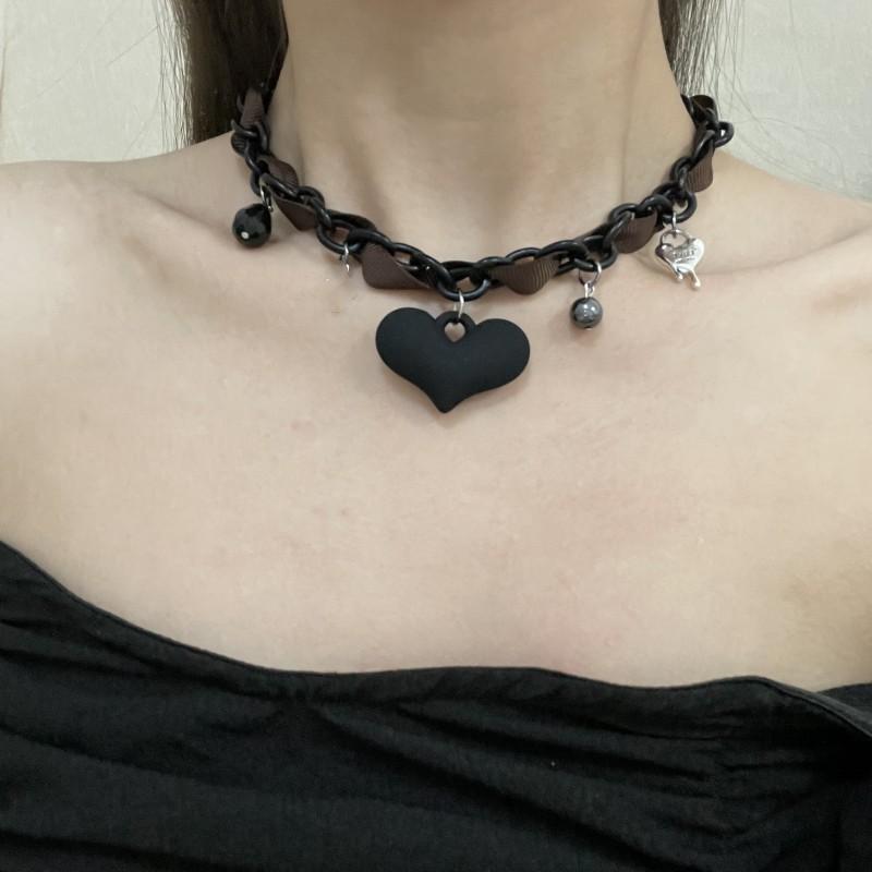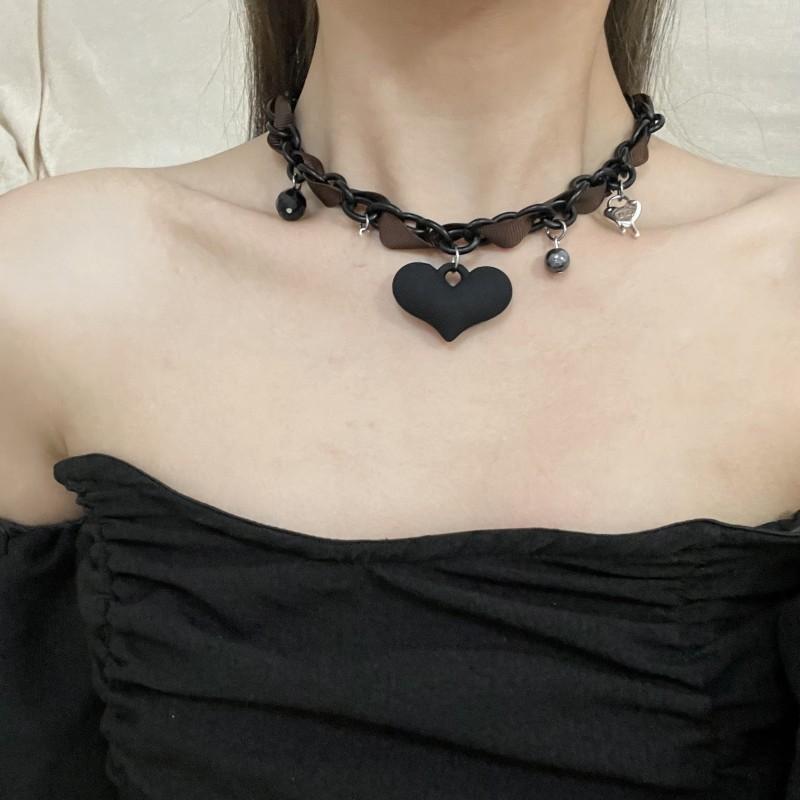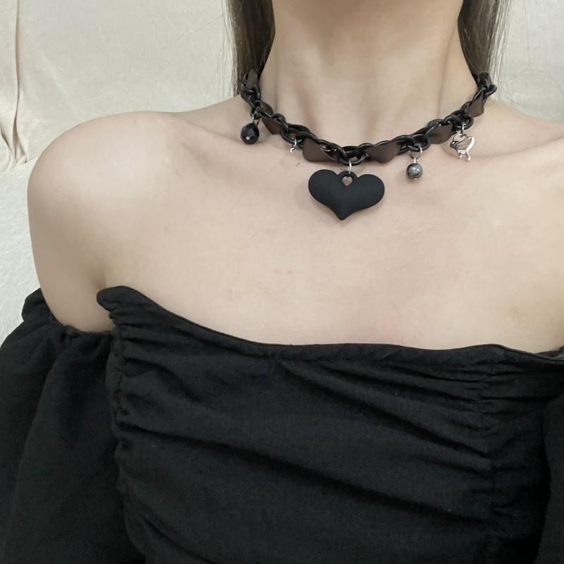 Collar de moda con cadena de clavícula y cuentas redondas de amor negro, elegante y de lujo, de alta calidad, nuevo y moderno.
