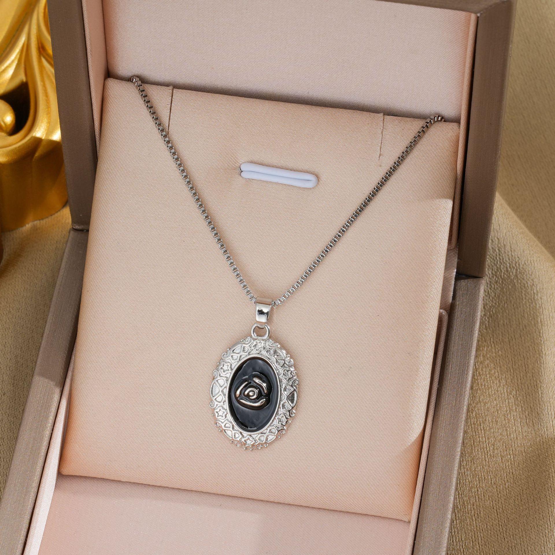 Collar de cadena con forma de caja de rosas elegante de estilo coreano para mujer, cadena de lana de nicho de alta gama, longitud media, combina con todo, retro, moderno.