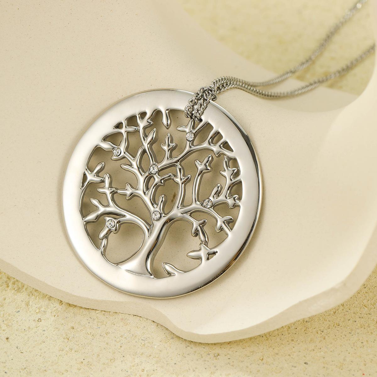 Collar de acero de titanio con diseño de árbol de la vida de diamantes de moda europea y americana para mujer, colgante personalizado de alta calidad con diseño de nicho que combina con todo.