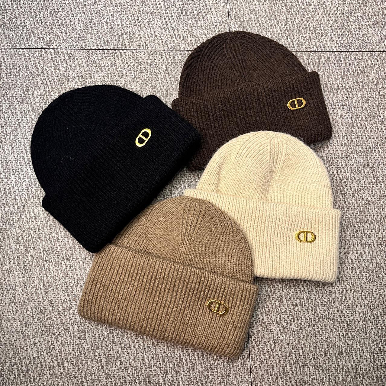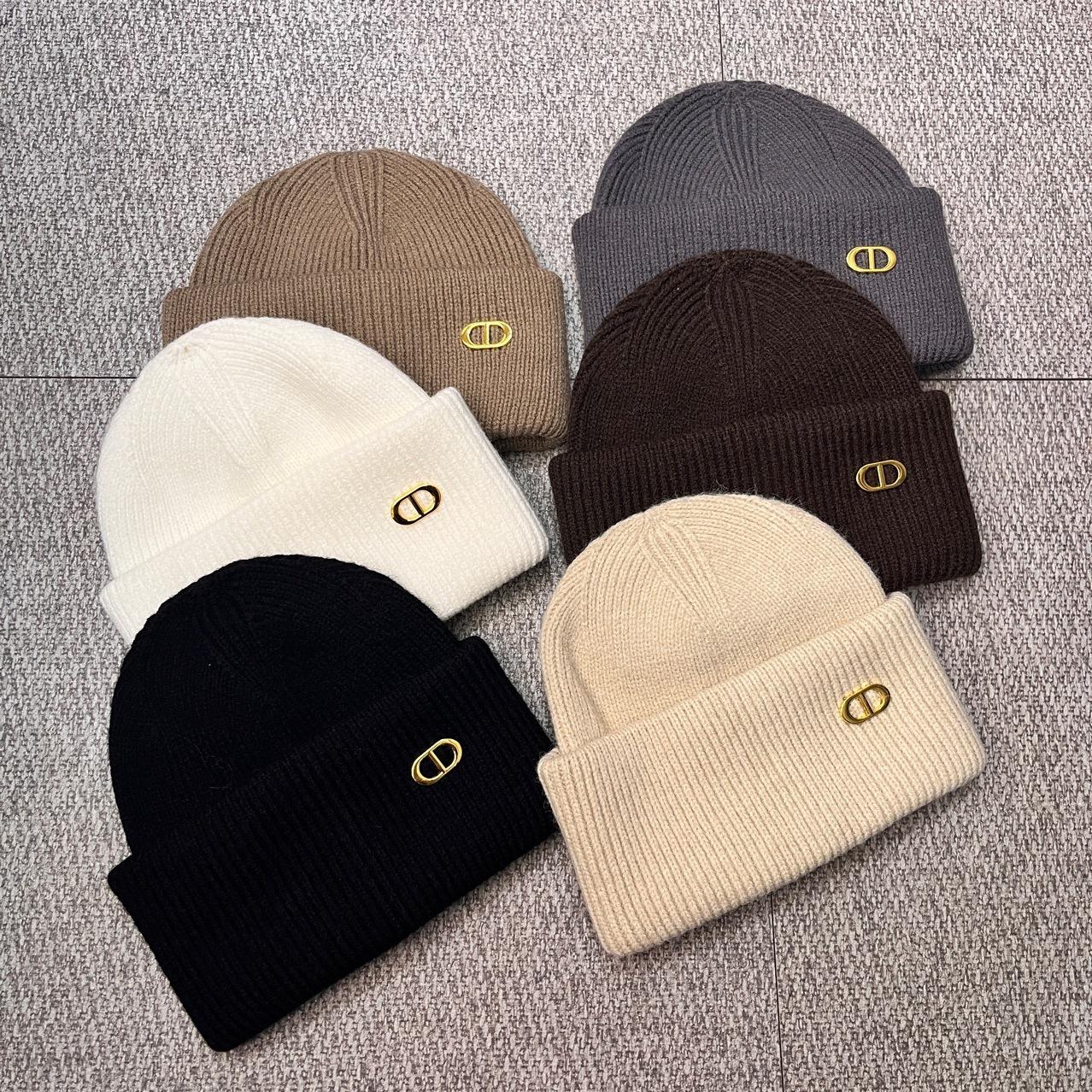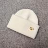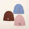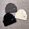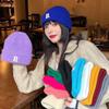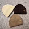 Otoño e invierno hombres y mujeres color sólido etiqueta D combinable cálido gorro de lana estilo japonés cálido color retro gorro tejido