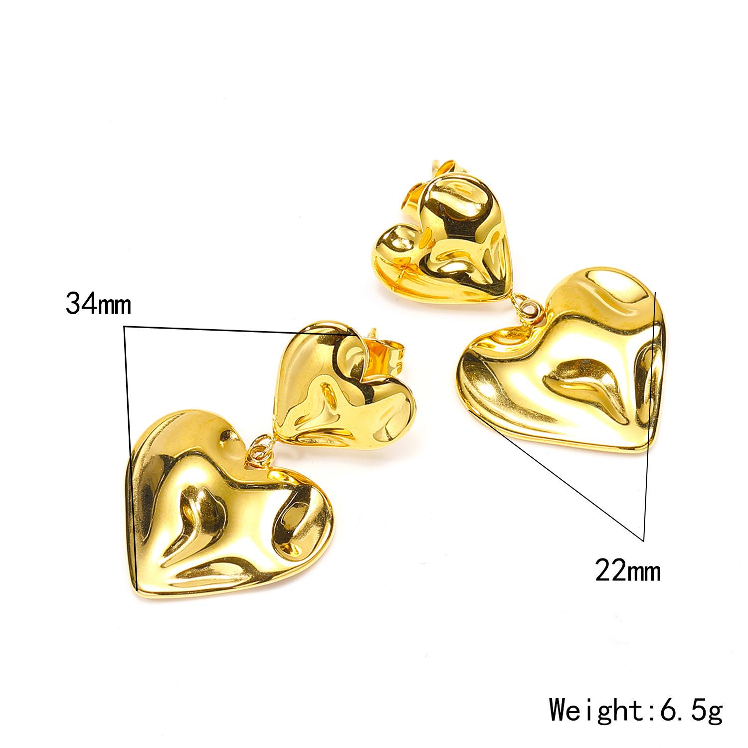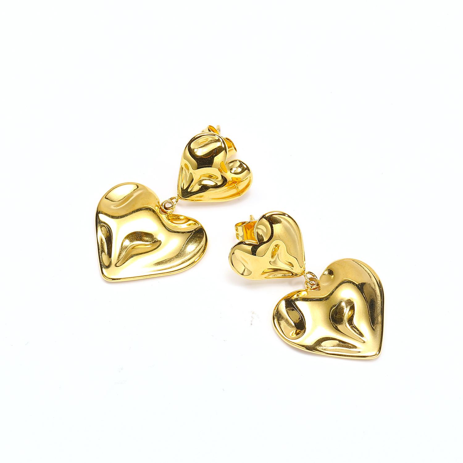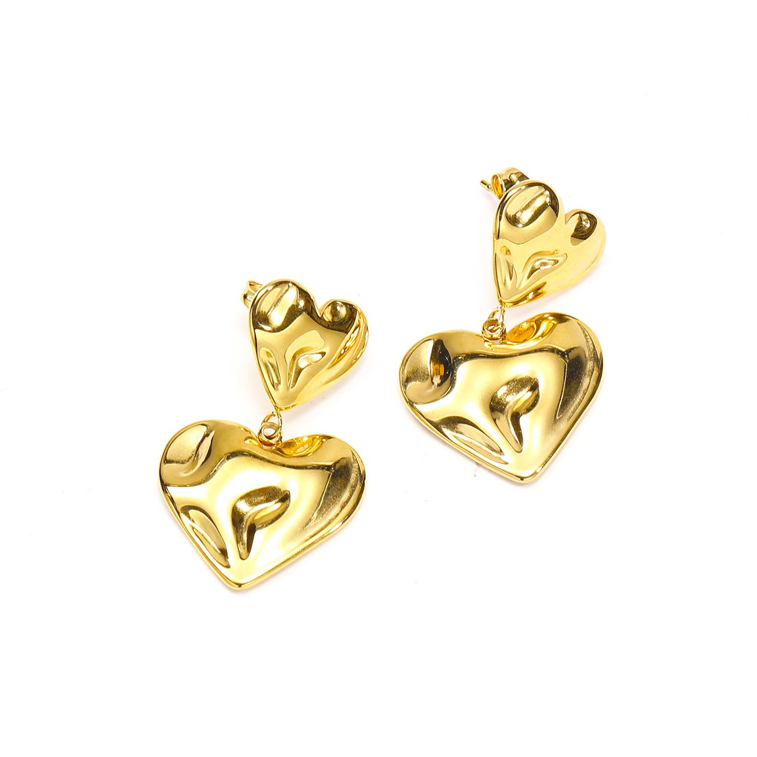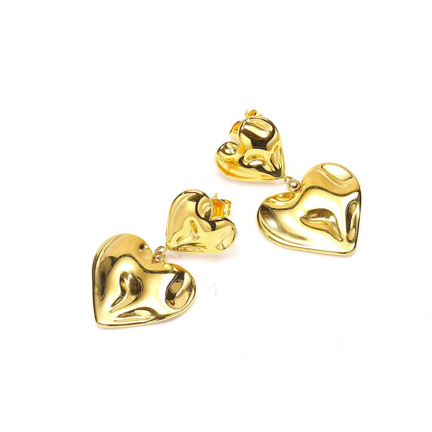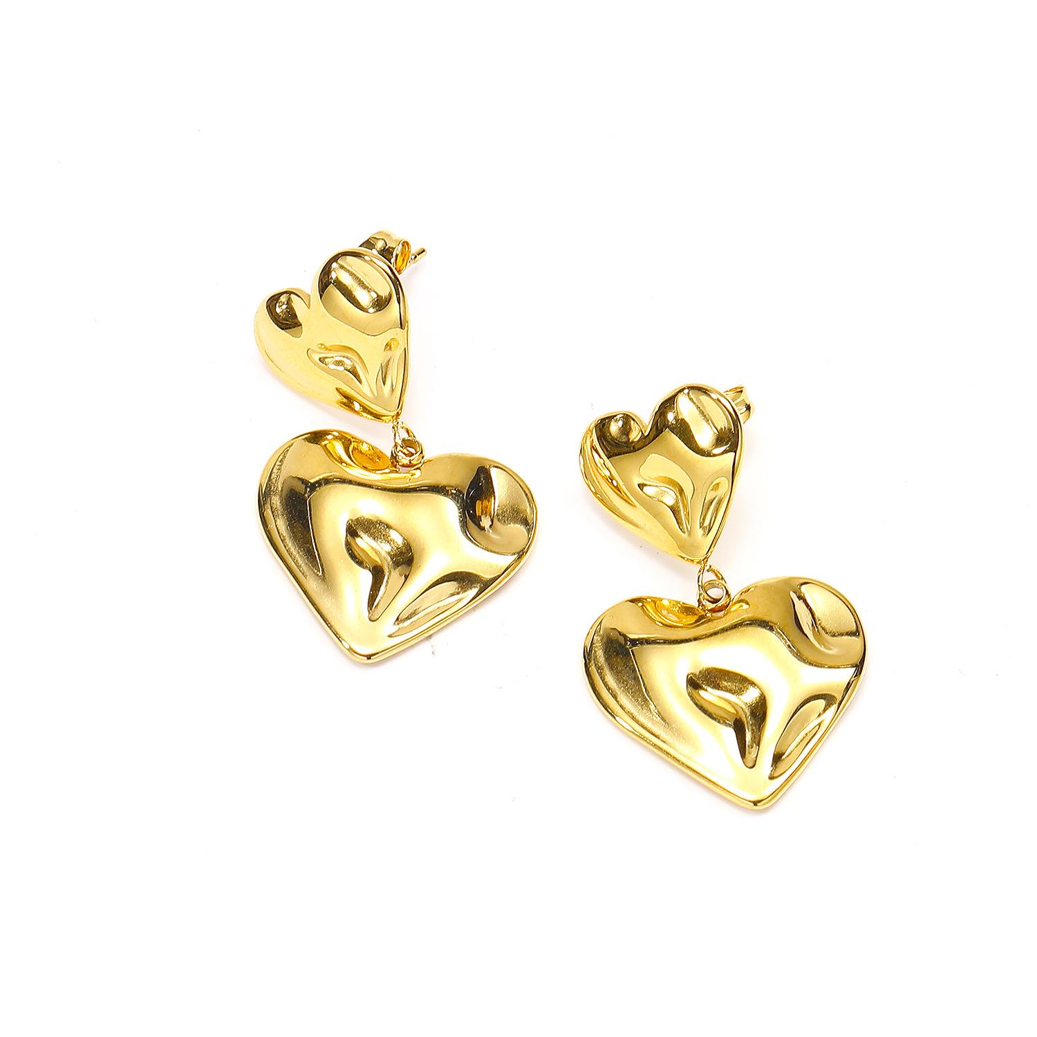 Aretes de doble amor con textura plisada personalizada ins europea y americana aretes mujer exagerados de acero de titanio de alta calidad chapado en oro joyería para la oreja