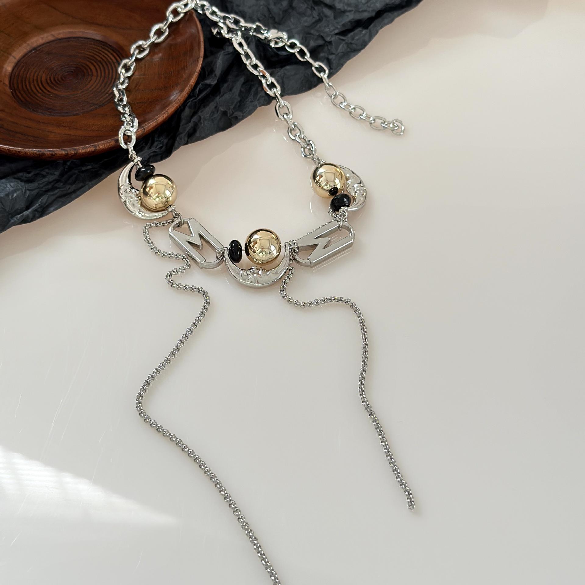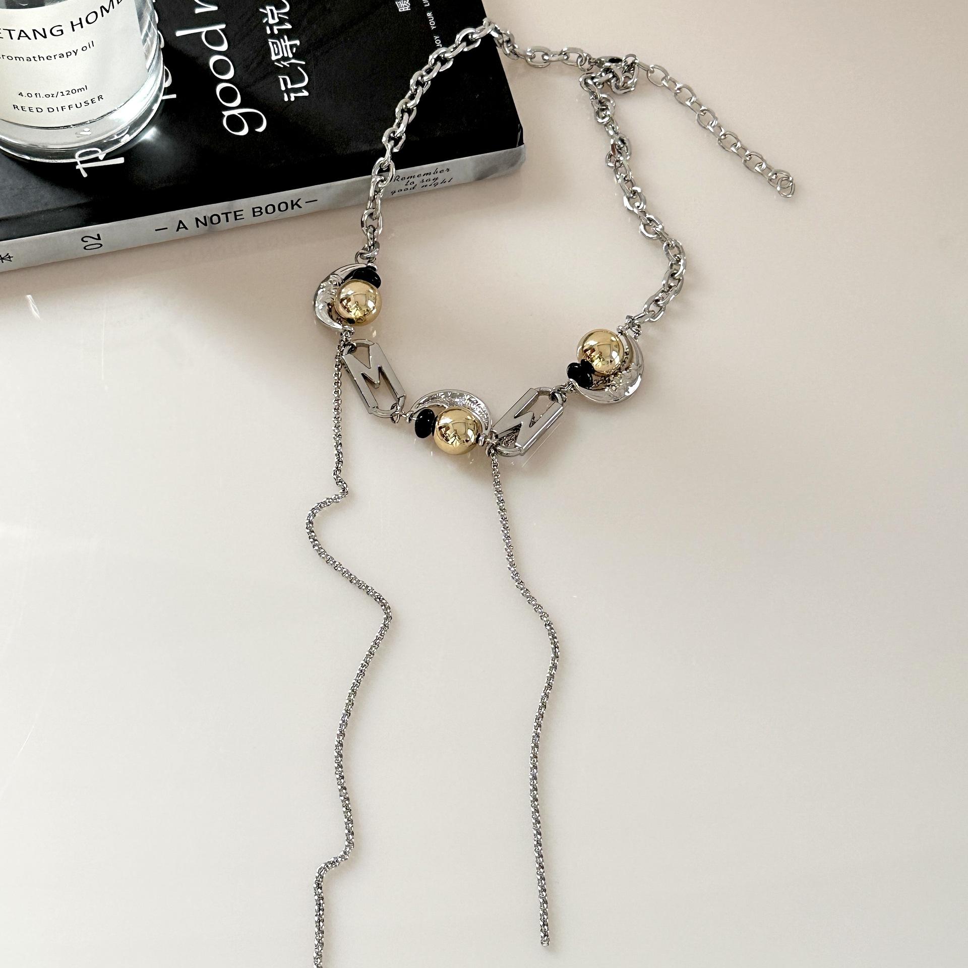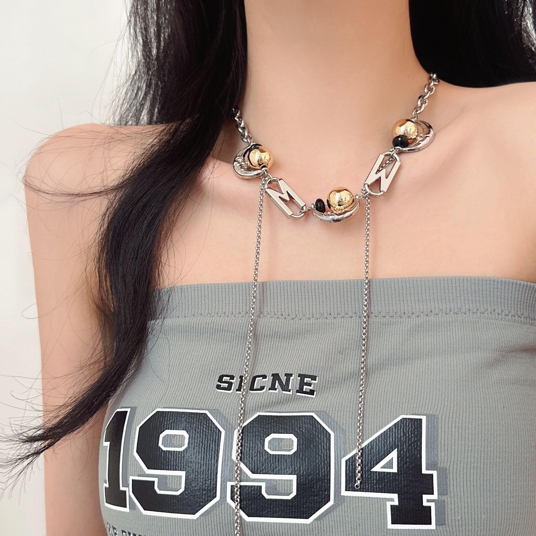 Collar con cadena y letras de estilo Harajuku estilo chino, estilo retro, marca de moda, bola, bola, temperamento, diseño de nicho para mujer, exquisito nuevo estilo