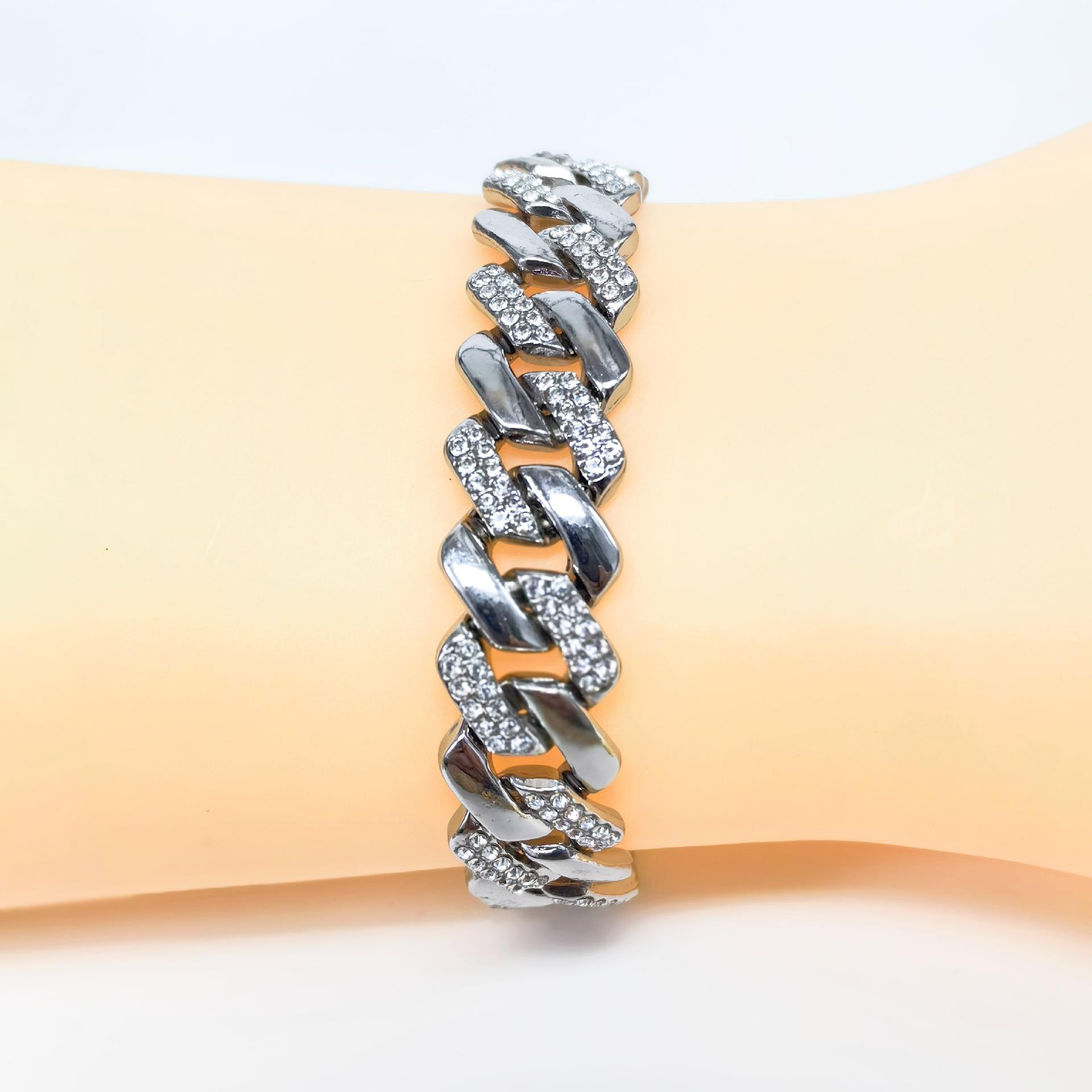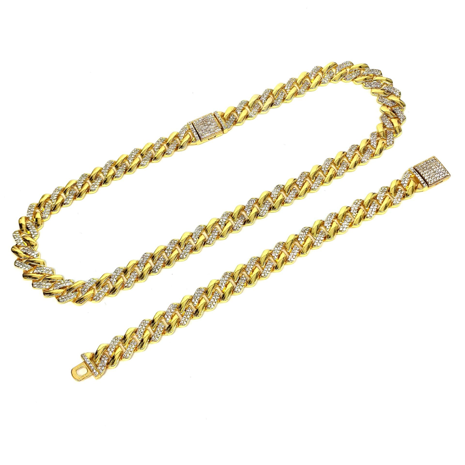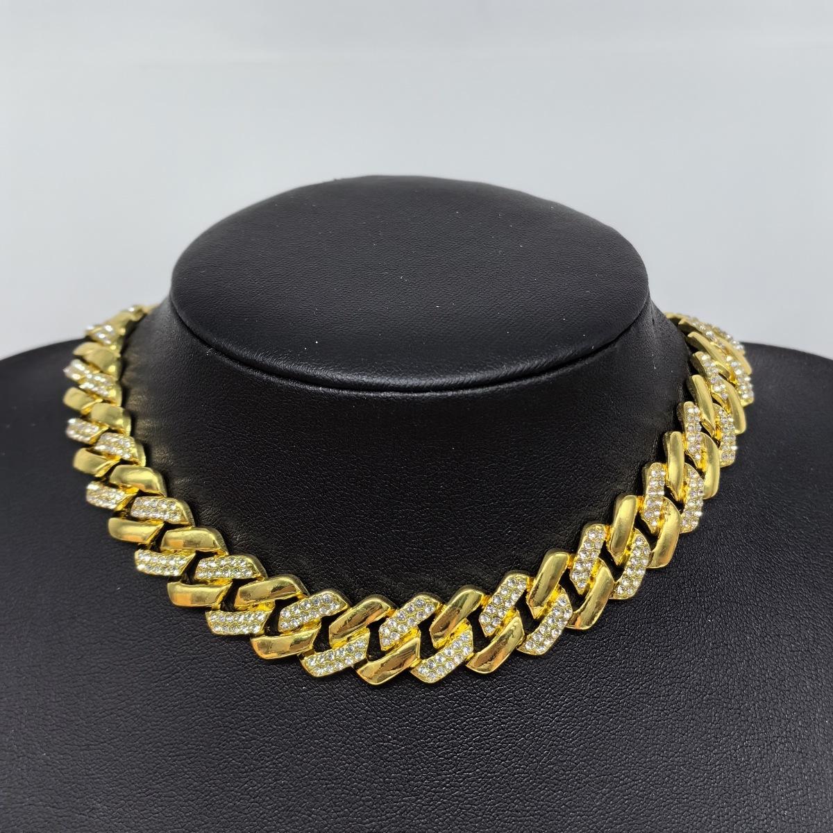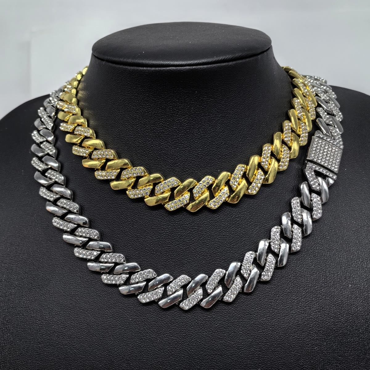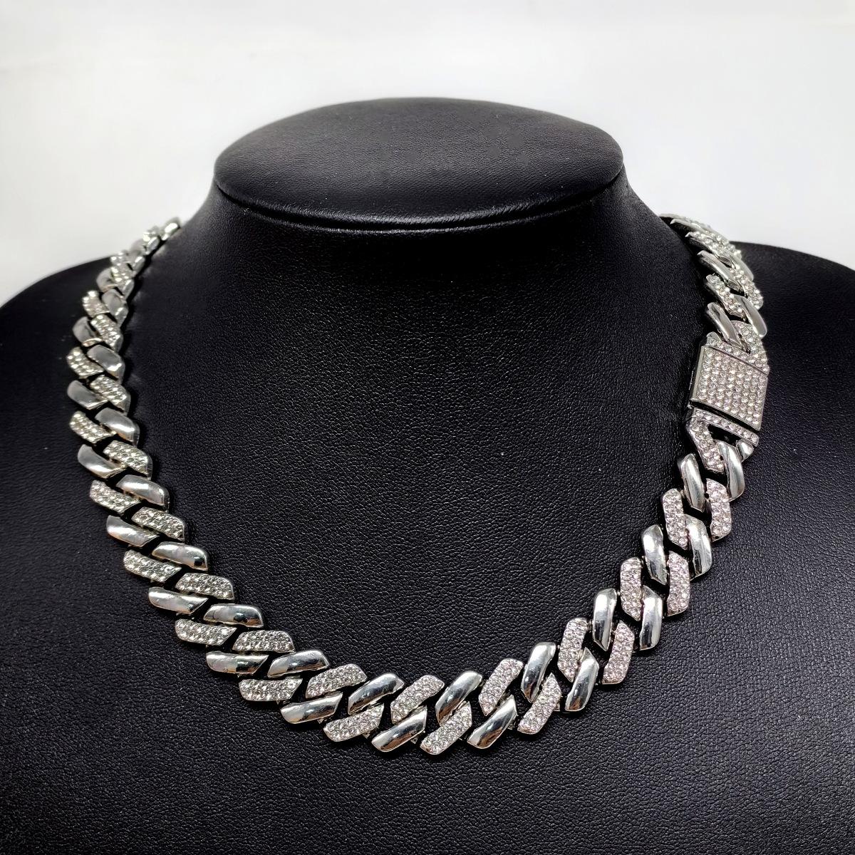 Collar para hombre de cadena cubana de estilo hip-hop europeo y americano transfronterizo de aleación con cabeza abatible y espaciador rómbico de 14 mm con diamantes