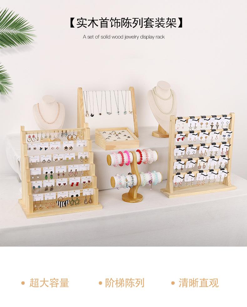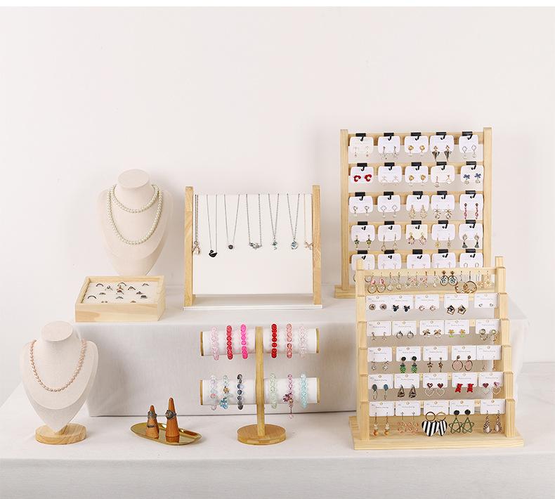 Estante de madera maciza para joyas, estante para colgar pendientes, estante para collares, soporte de escritorio para exhibir pulseras, anillos y joyas.