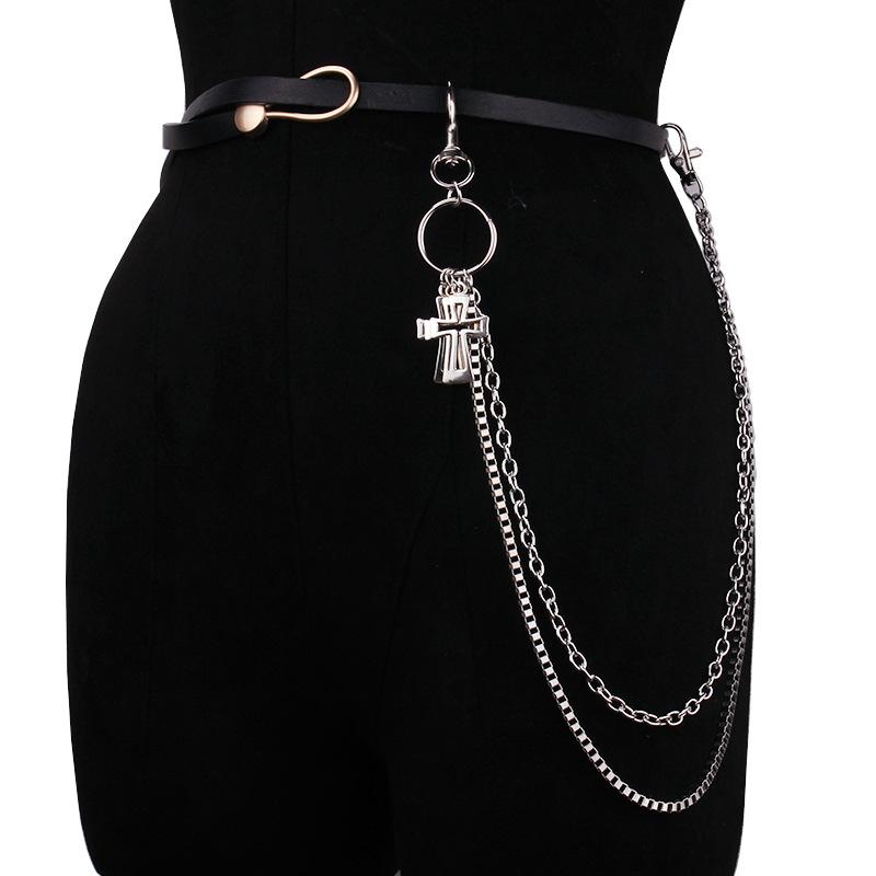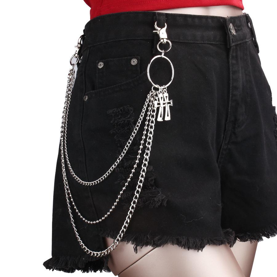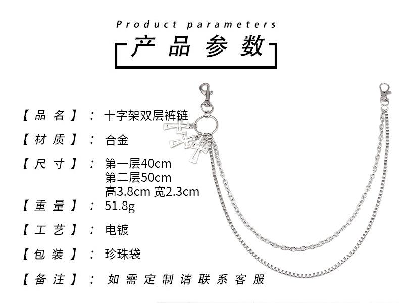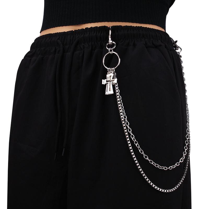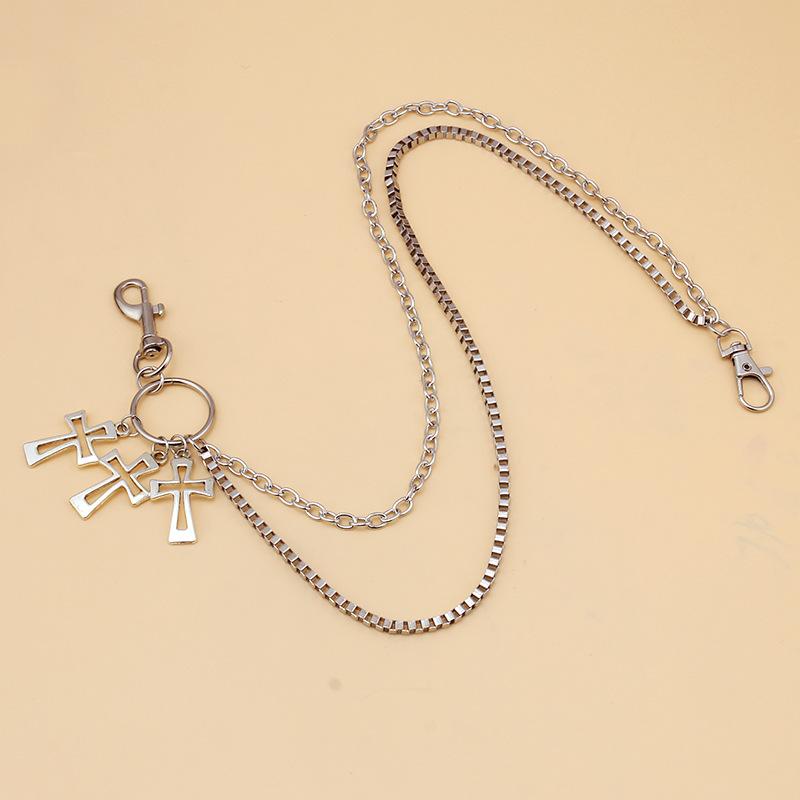 Cadena de cintura con doble capa para pantalones, joyería europea y americana, estilo punk, hip-hop, personalizada, estilo callejero, accesorios con cruz hueca.