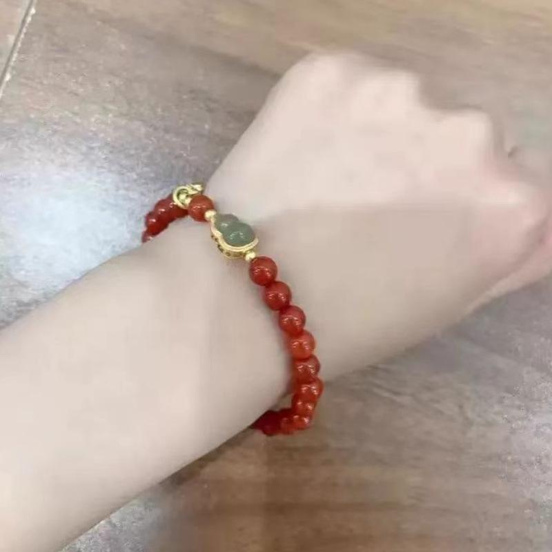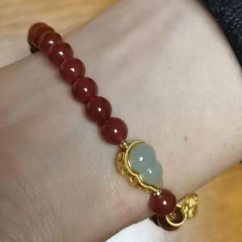 Pulsera de cristal de ágata roja estilo chino nuevo anillo individual para damas cuentas de ábaco de jade pulsera de calabaza joyería al por mayor